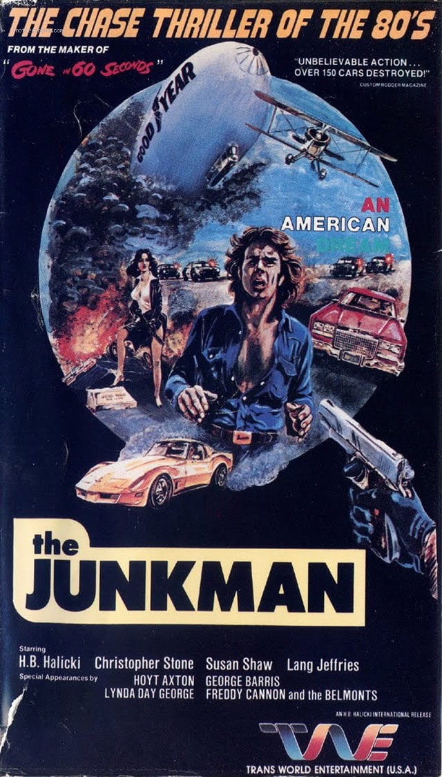A l’aube des années ’80, H.B.Halicki entreprit une nouvelle réalisation intitulée The Junkman tourné dans les mêmes conditions, avec sa propre collection de voitures, et sur une période de deux ans (ce qui explique le changement physique de certains personnages et le nombre d’erreurs de divers raccords). L’affaire fut un peu moins rentable mais les millions affluèrent encore au point qu’il se lança quelques années plus tard sur un The Junkman 2 qui était le Gone in 60 Seconds 3 et devait sortir en 1989. Mais Halicki se tua dans une cascade ! C’est sa veuve Denice Halicki qui a alors repris les rênes de l’Empire Halicki pour pouvoir continuer d’amasser un max de $ sous prétexte que ce film serait l’ultime hommage à son défunt mari (double sens écrit avec deux “R”).