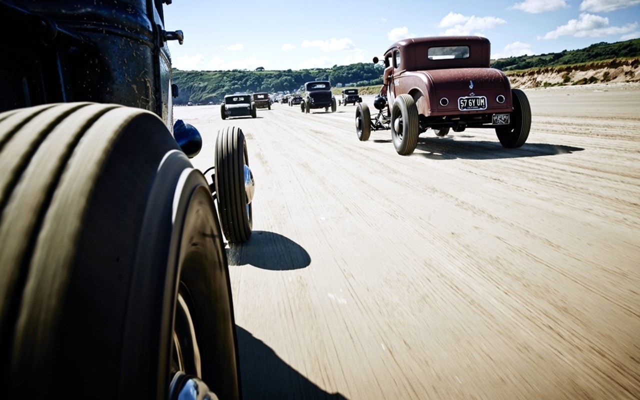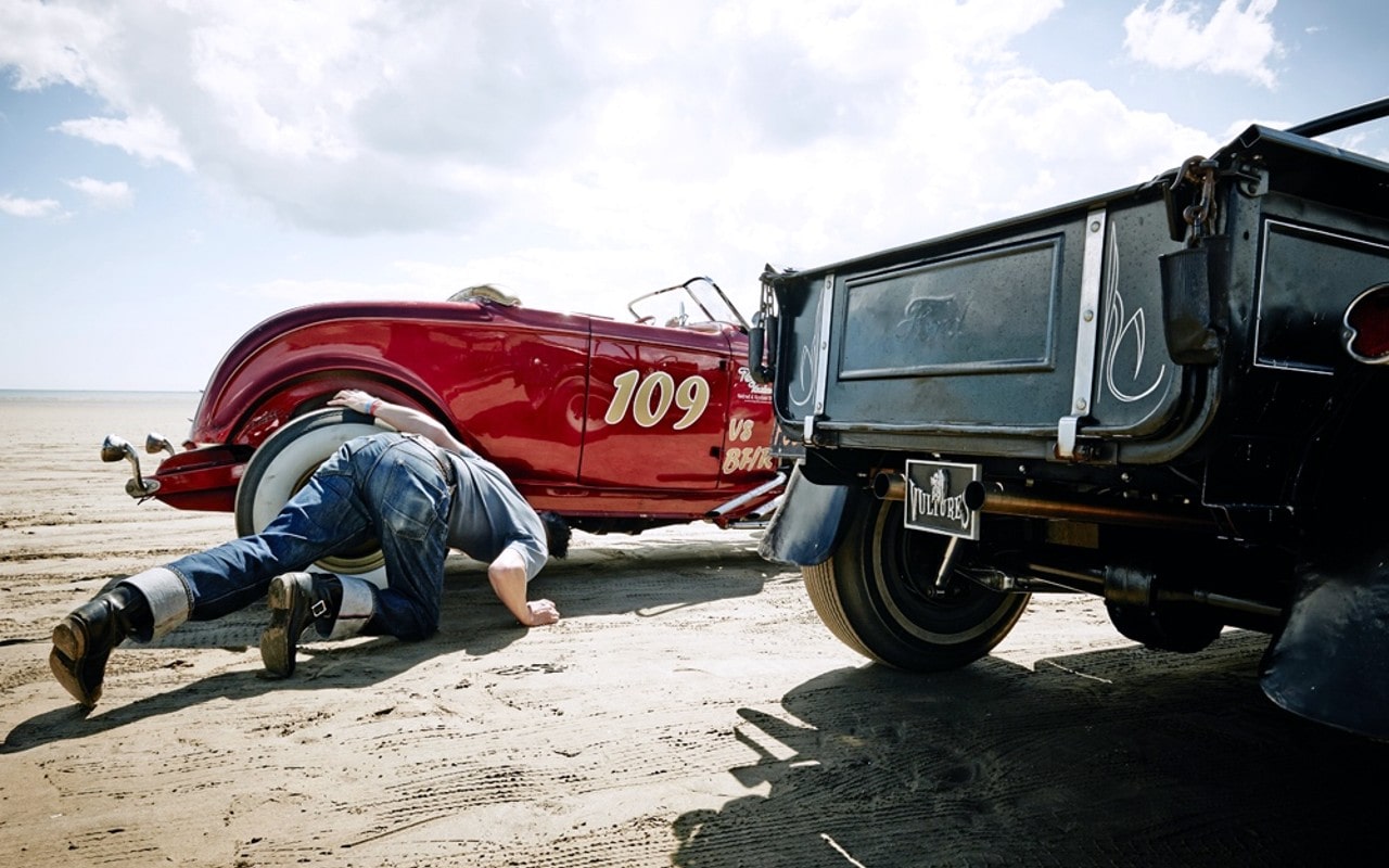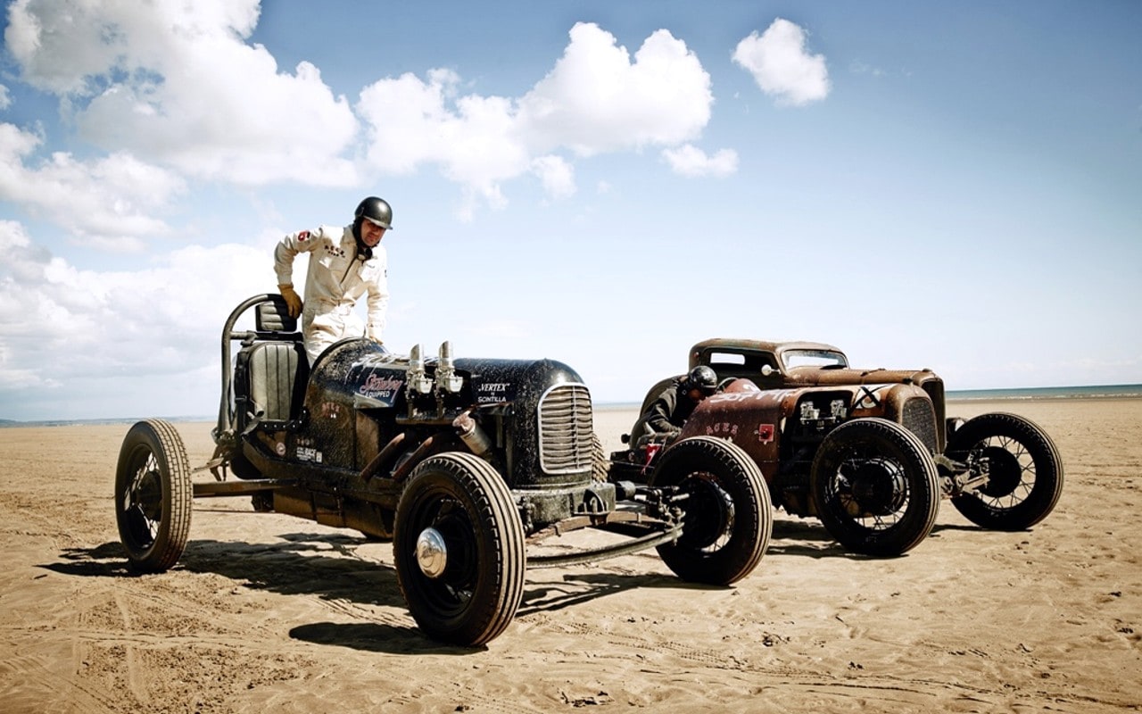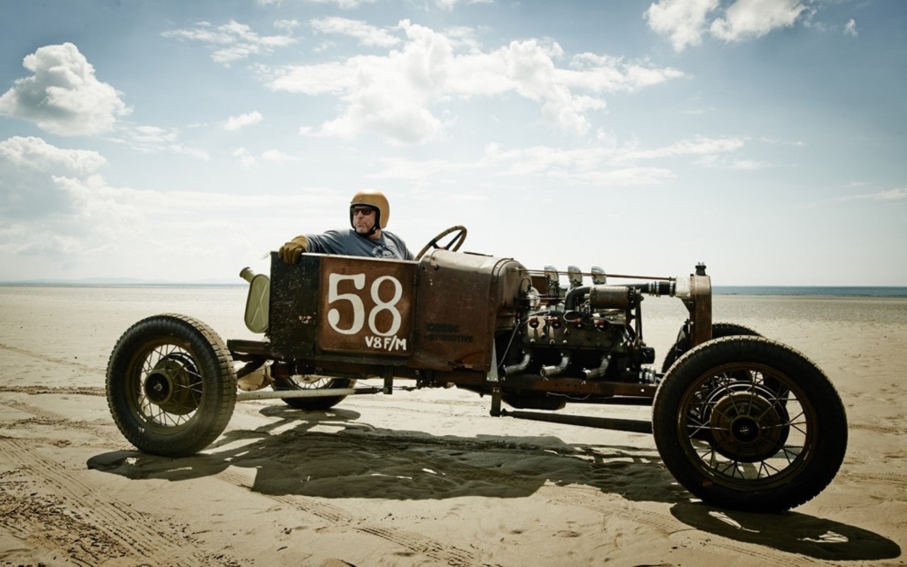 C’est ça qui va devenir un style : d’un détournement nécessaire de choses récupérées, histoire d’avancer, avec le folklore que cela génère… et au travers de formes qui s’inventent dans la course, créant une sorte d’expression populaire par la négative, le bolide “home-made”… et cette façon d’instrumentaliser l’automobile va rapidement intégrer le sens de la liberté débridée, de la vitesse, du souffle et de l’image… le Hot-Rodding !