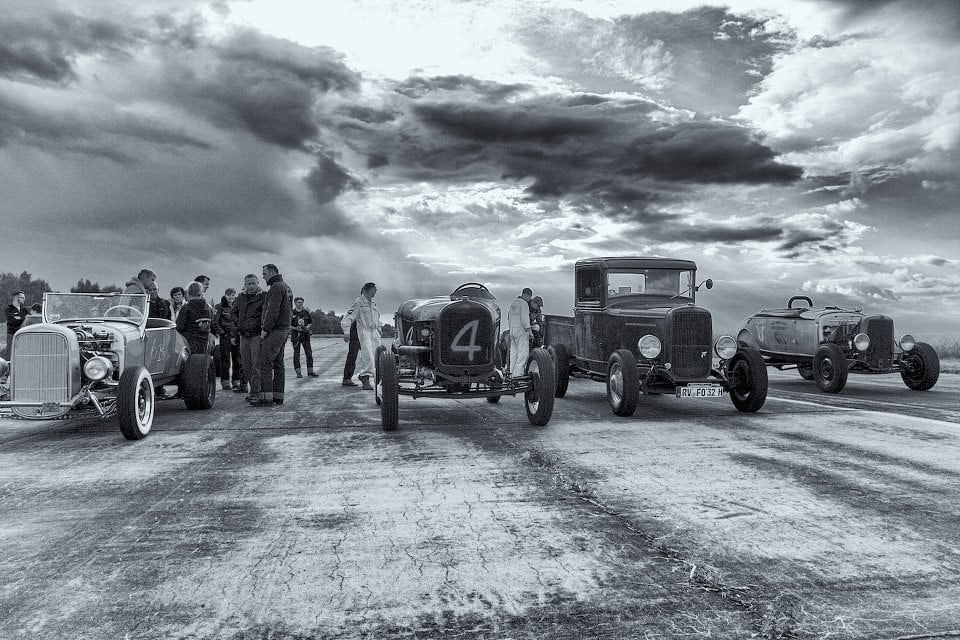 Là, sur un principe basique de survie : le vainqueur d’une course brève sur 1/4 de miles (400 mètres pour le public de gens simples et stupides puissent tout voir) gagne la voiture perdante, source de pièces de rechange et donc de profits… des courses d’accélération ont commencé à s’organiser générant également des paris.