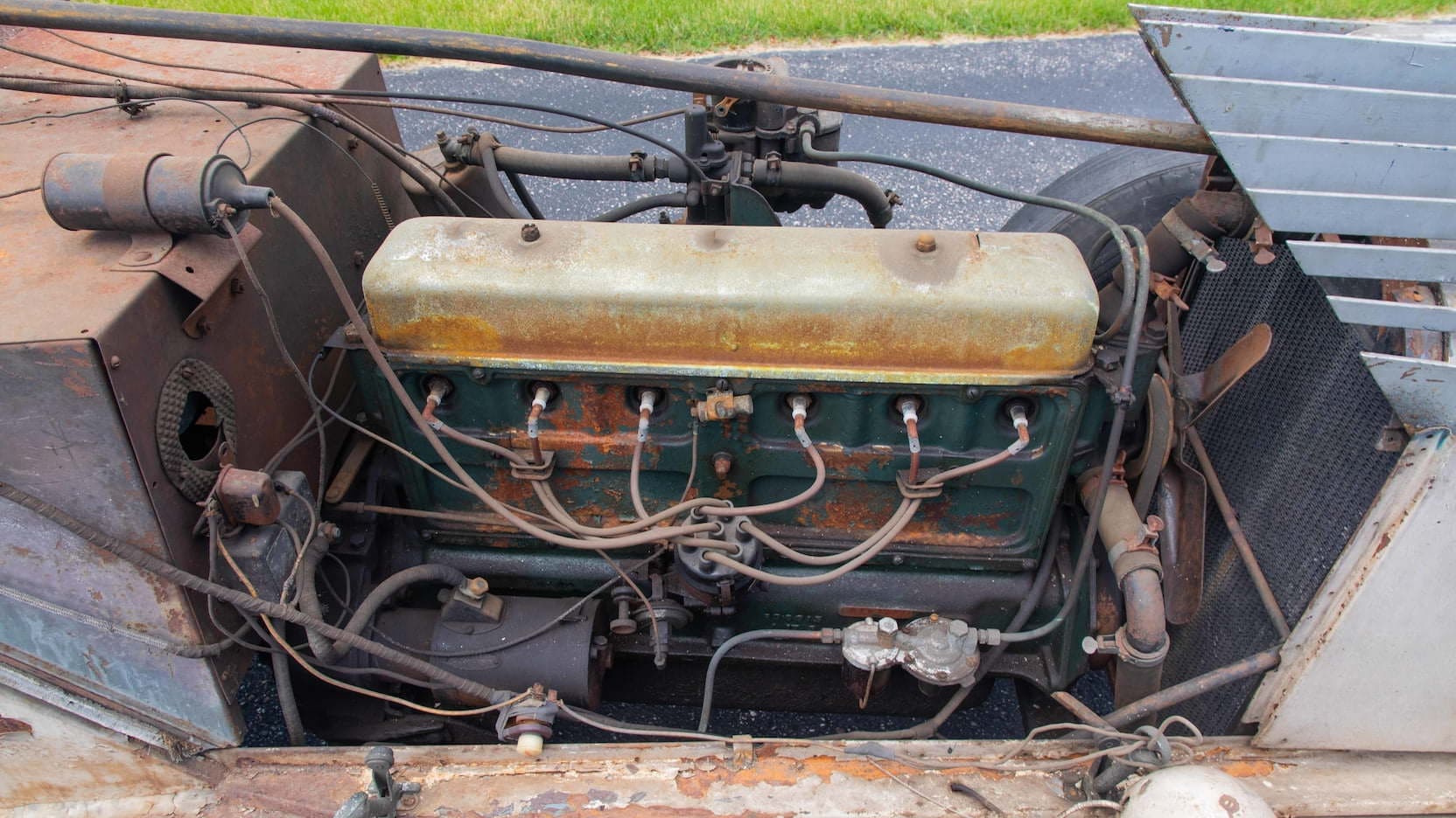La base de cette construction est une 1933 Chevrolet sedan 4 portes 6 cylindres à transmission manuelle, train arrière rigide avec ressorts à lames et freins à tambour aux 4 roues qui était tombée de son camion de transport en effectuant une pirouette… c’est-à-dire que la voiture a chuté latéralement en se retournant sur le toit…, le châssis et le moteur étaient intacts !