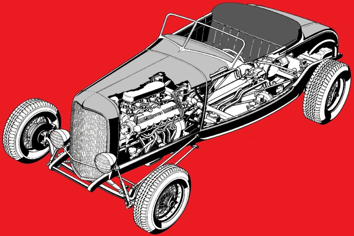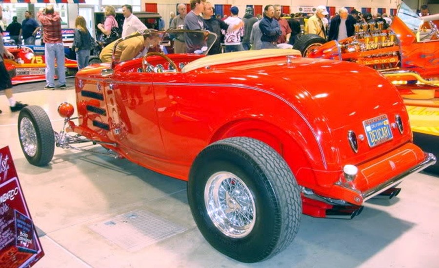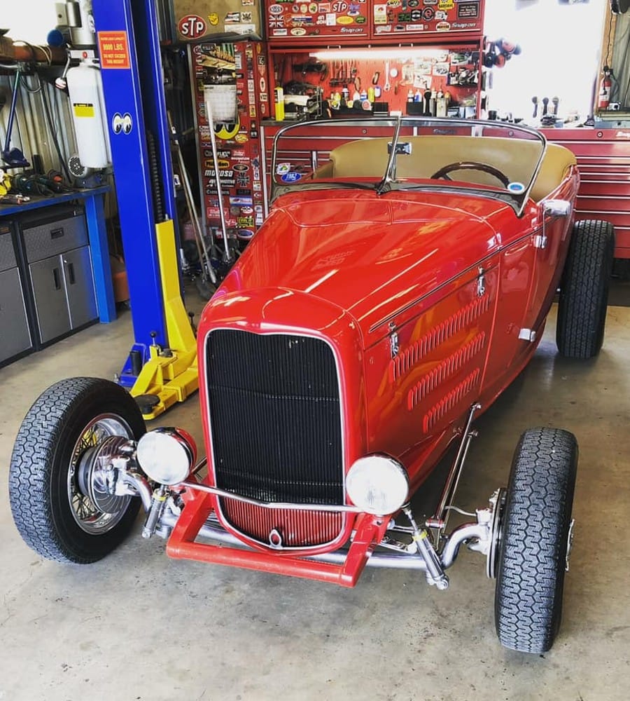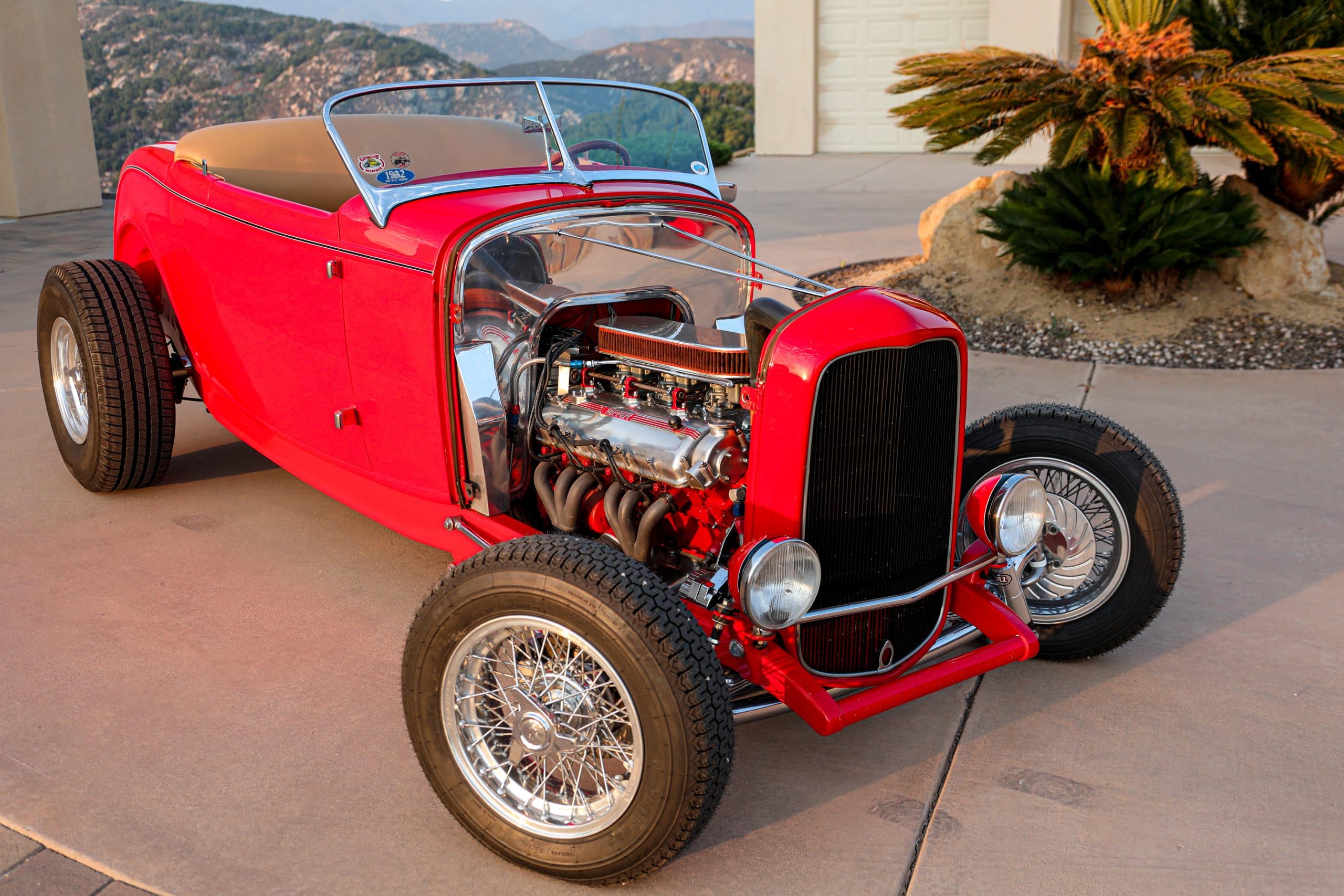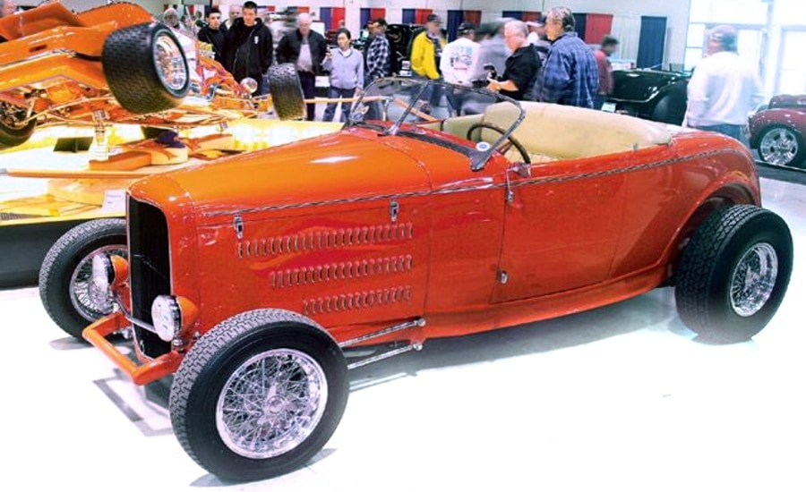 Malgré le moteur Ferrari V12 plus long, les lignes du roadster ’32 n’ont guère été perturbées. C’est une carrosserie en fibre de verre de Wescott’s Auto Restyling, Magoo qui a été utilisée avec un nouveau capot. Le résultat est subtil ! Le propriétaire actuel de la voiture, Rich Hubbard de Murietta, en Californie, m’a dit que même si la voiture ressemblait à un Hot-Rod typique, les têtes tournaient lorsqu’il démarrait le V12. “Vous vous attendez à entendre un grondement de Hors-Bord et vous entendez la musique d’un V12 Ferrari, le son semble un peu déplacé, mais la note du moteur est fantastique”...