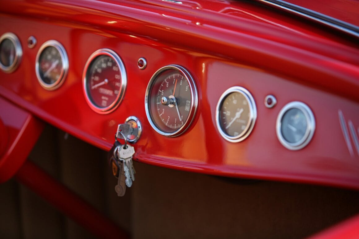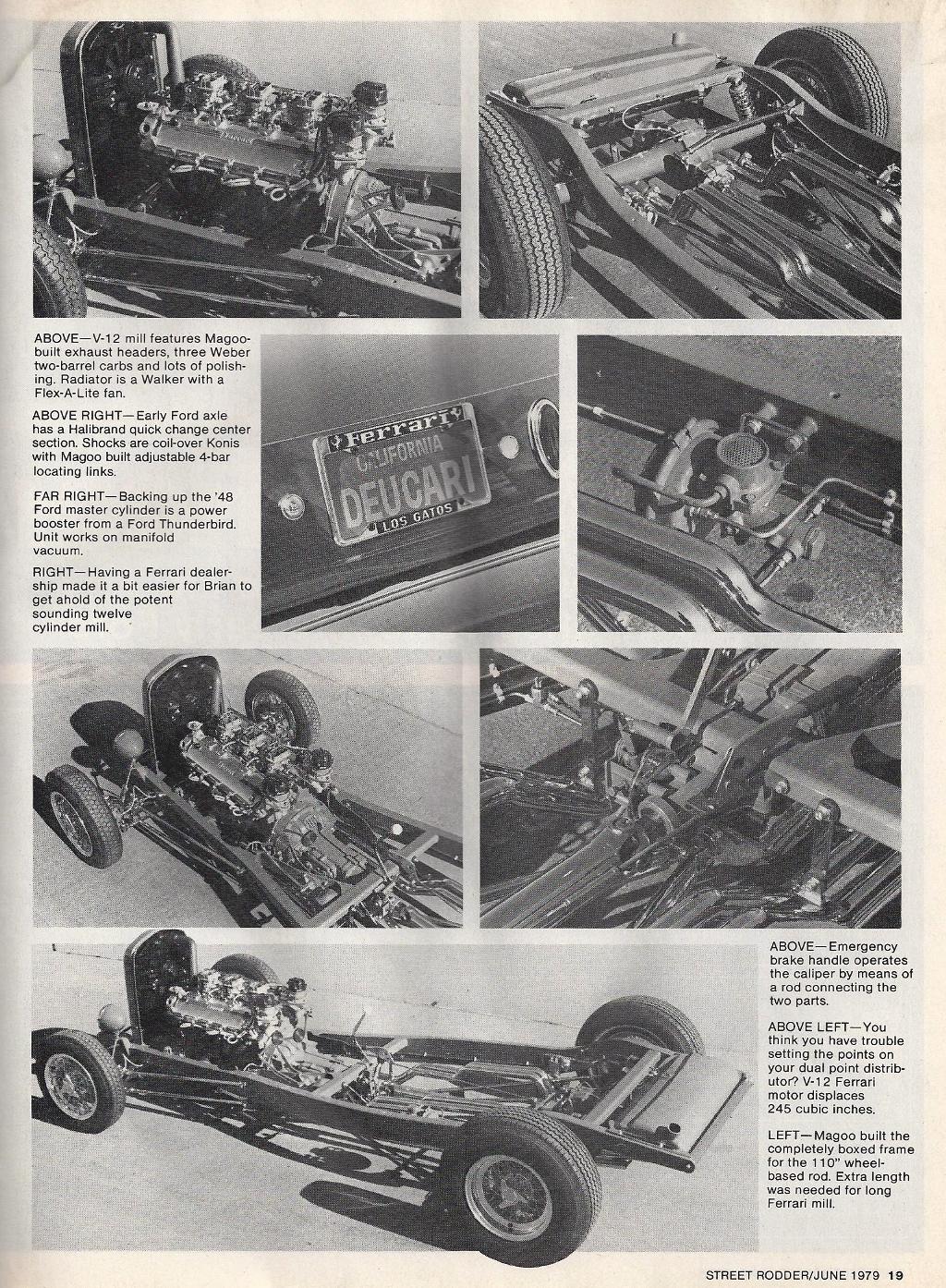 Je suis tombé sur le Deucari par accident et hasard, Hubbard le faisait régler par Jay Dean au Nostalgia Ranch, le seul mécano capable de régler assez correctement le V12 Ferrari. Hubbard m’a dit que la voiture avait toujours un peu de “trébuchement” au ralenti ! Lorsque ce Hot-Rod a été construit, il était équipé d’une boîte manuelle à quatre vitesses GM Muncie, mais Hubbard a décidé qu’une boîte à cinq vitesses Doug Nash serait mieux adaptée et ajouterait une certaine maniabilité, permettant de tirer pleinement parti du V-12 à haut régime.