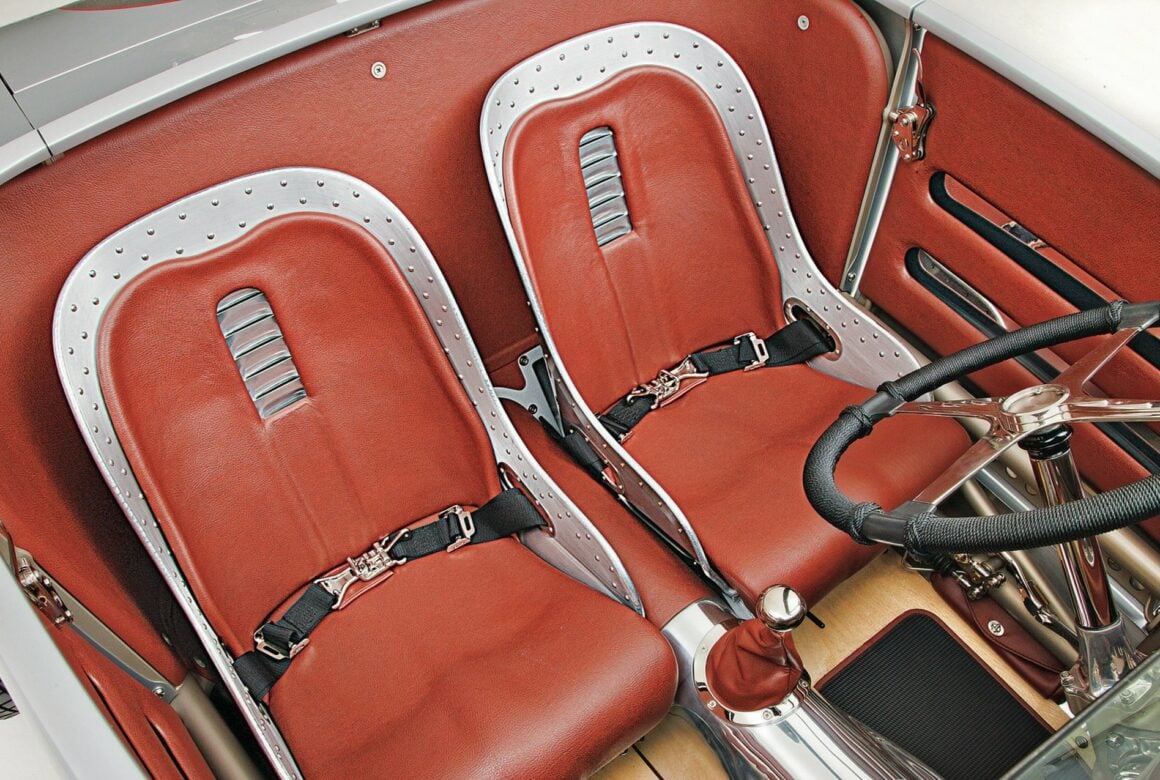 L’intérieur de la voiture a été modelé de manière minimaliste comme les Midgets de course des années 1950, l’utilisation du cuir, de l’aluminium et du chrome donnant une sensation “Punk à vapeur” obligeant presque à conduire le Hot-Rod avec un chapeau haut de forme et un monocle ! Quand j’ai eu enfin la présence d’esprit de demander à Bill quels étaient ses plans pour l’avenir, il m’a très sobrement répondu : “Après les quelques événements SoCal, j’ai l’intention de retourner à ma maison de campagne située à Kerrville au cœur du “Texas Hill Country”. C’était bref et émouvant !
