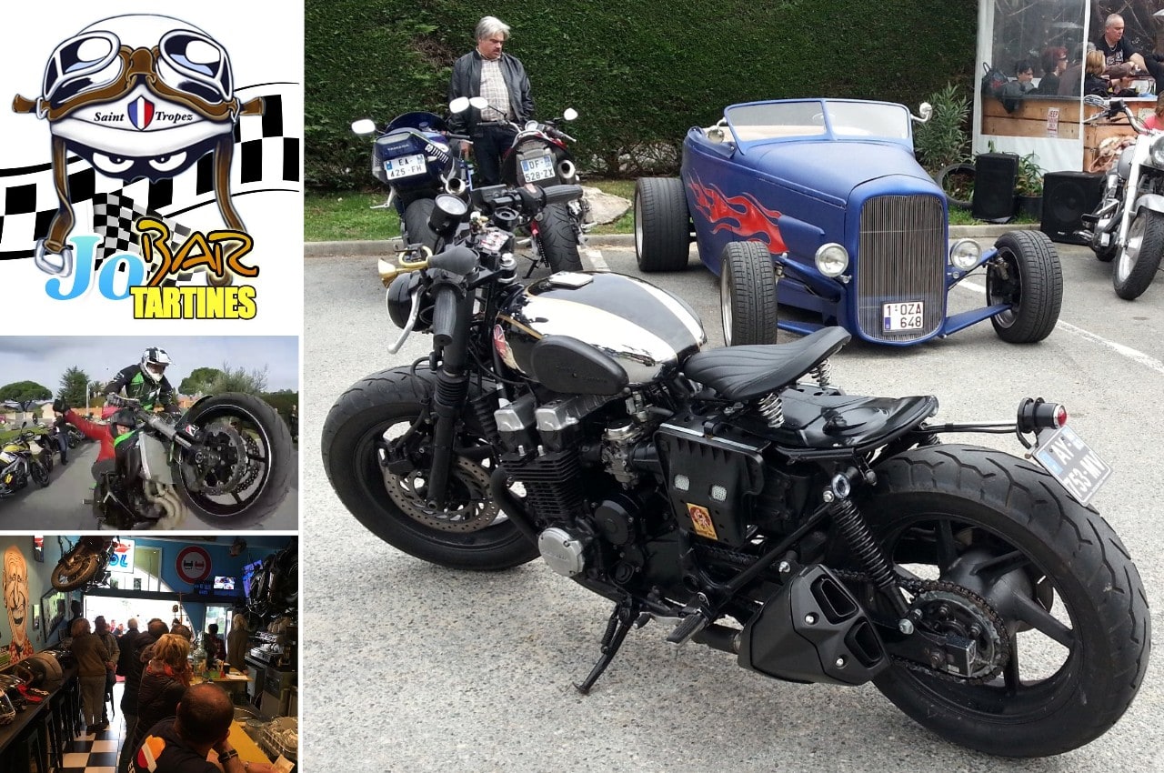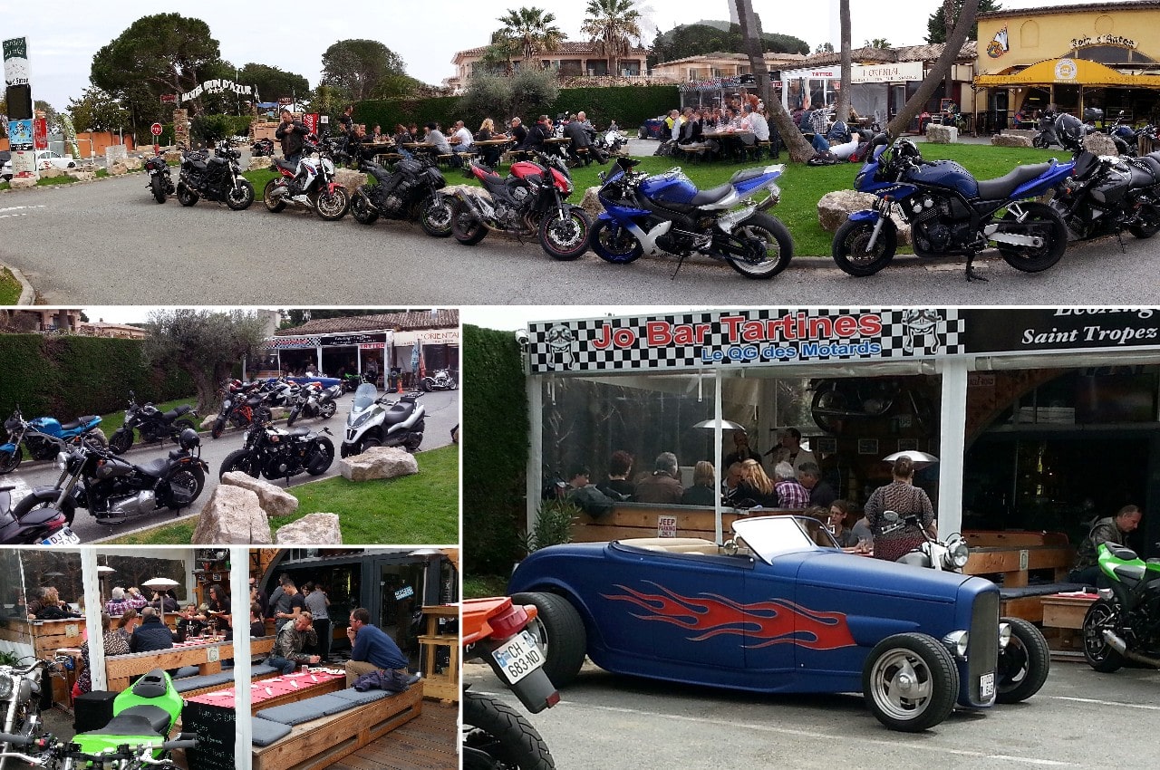Le dimanche 3 avril 2016, c’était l’anniversaire du Café “Jo-Bar-Tartines” situé à l’entrée de St-Tropez (maintenant fermé), le Boss avait juré/craché qu’il n’y aurait pas d’averses de pluie et le dieu des motard(e)s l’a exauçé dans ses prières…, j’y suis passé vers 14h00…