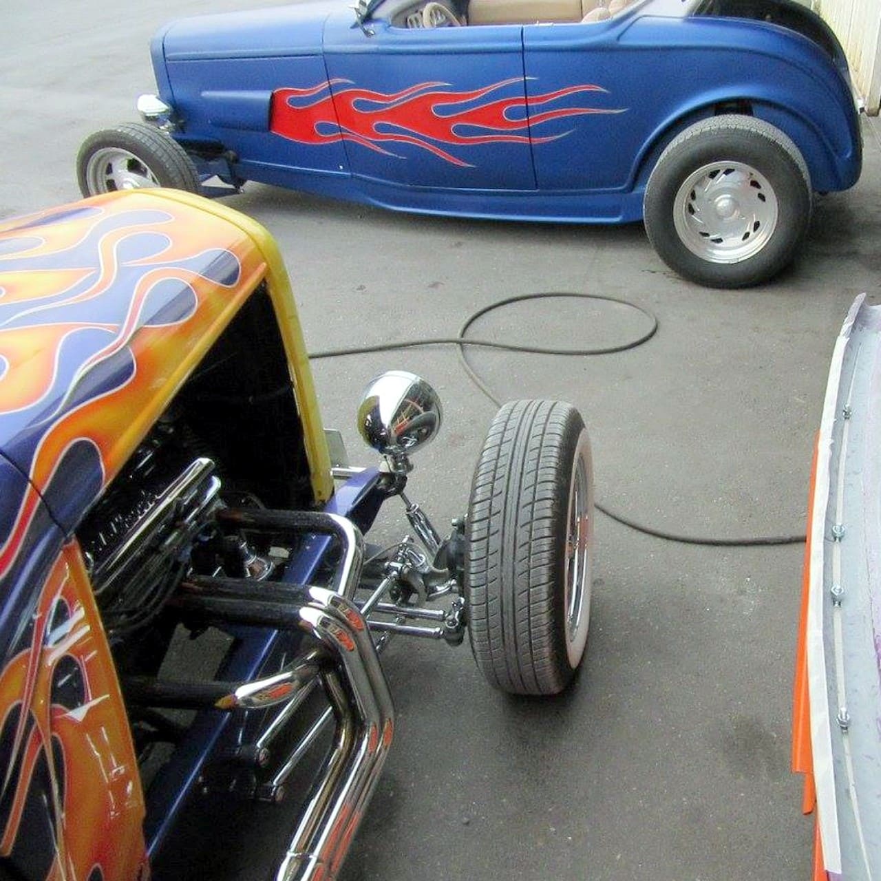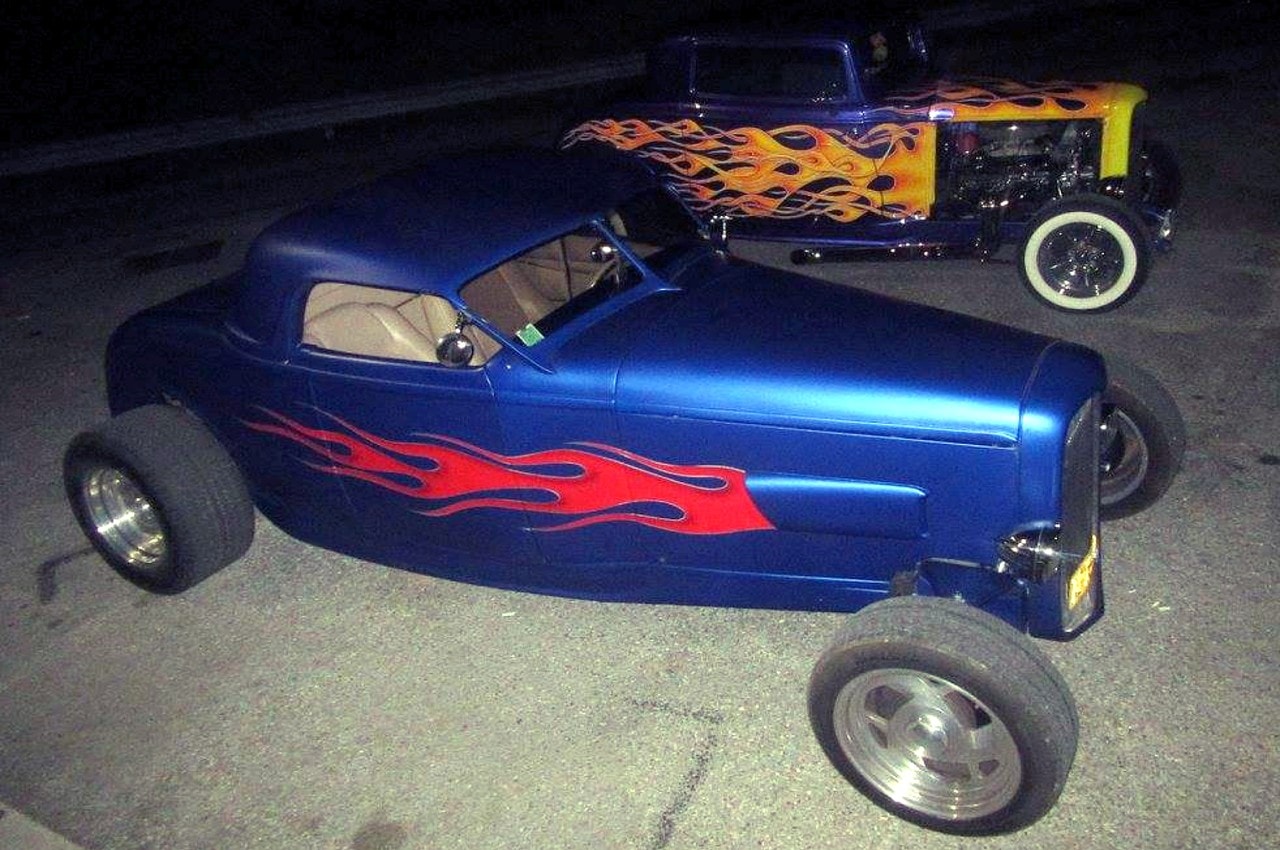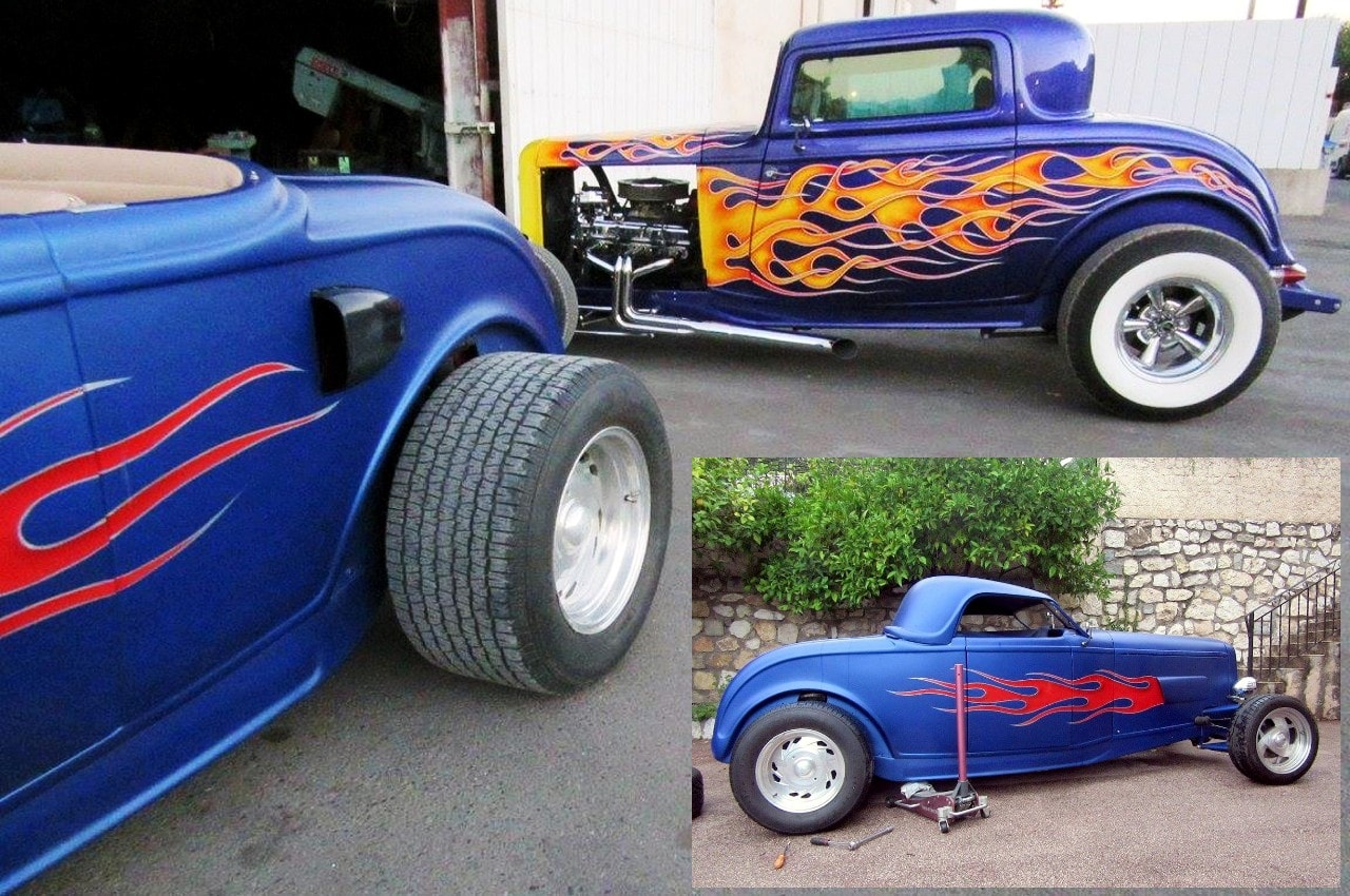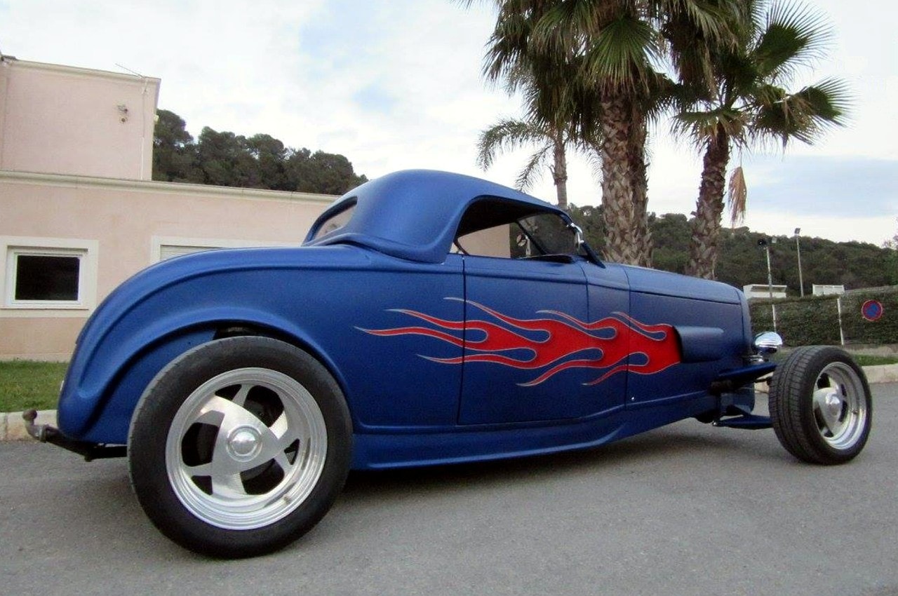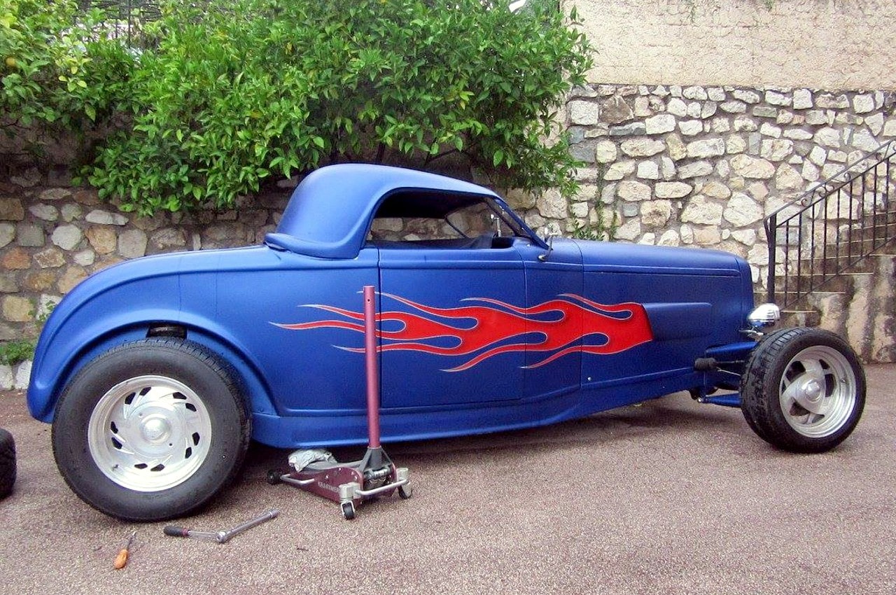 Puis, après m’être ainsi fait vider les coucougnettes, une vidange salutaire…, après qu’elle eut enfin accouché de ses idées morbides, sa voix s’est apaisée…, on a rigolé histoire de descendre un peu sur terre… et je lui ai donné une clé USB contenant un millier de photos du Hot-Rod bleu mat avec flammes… dont une partie illustre ce texticule assez couillu…