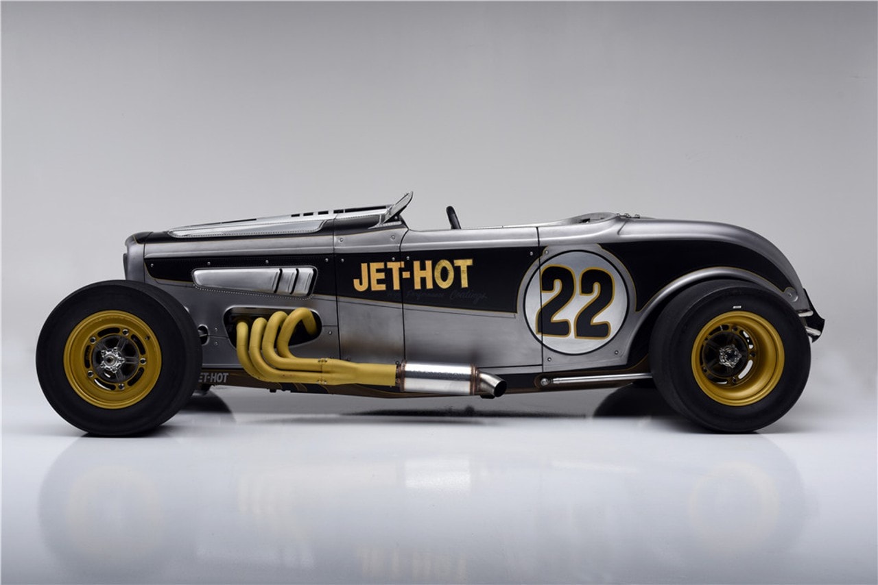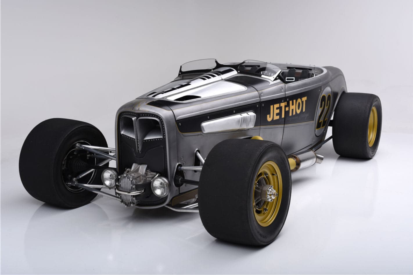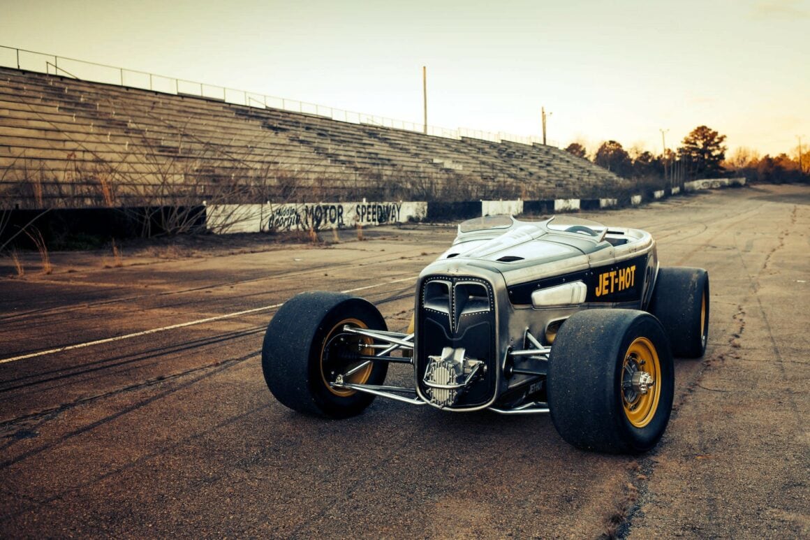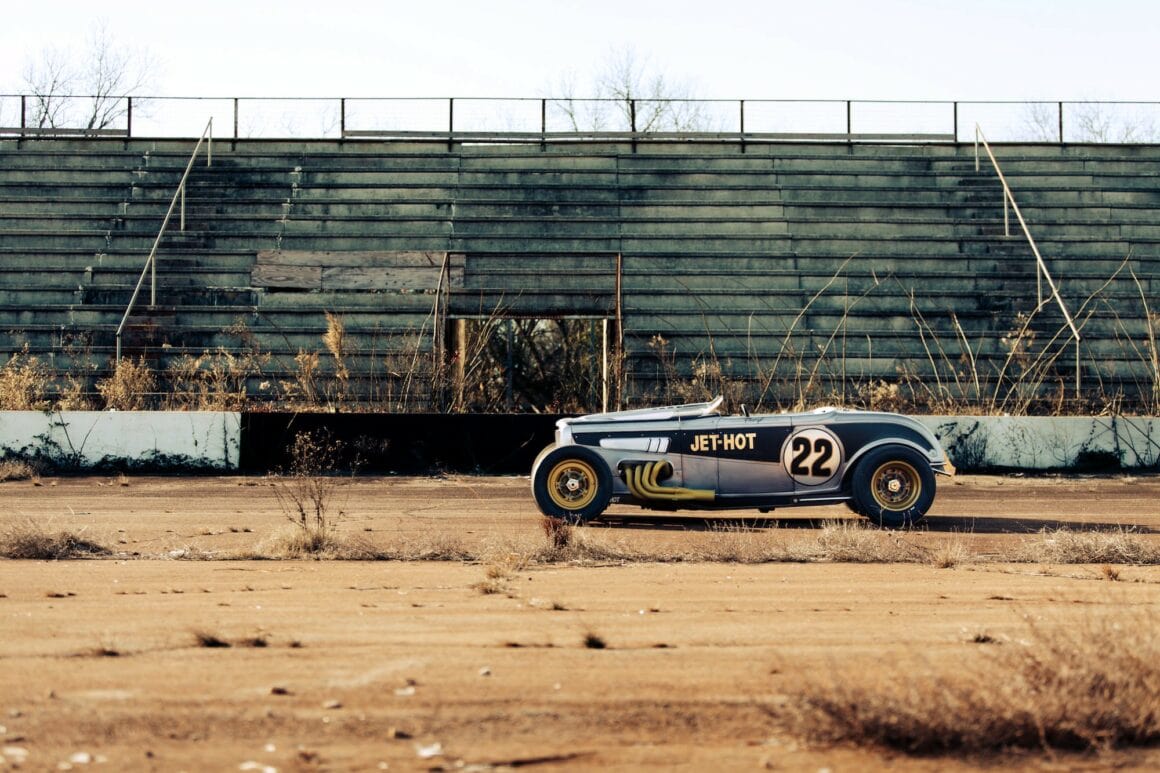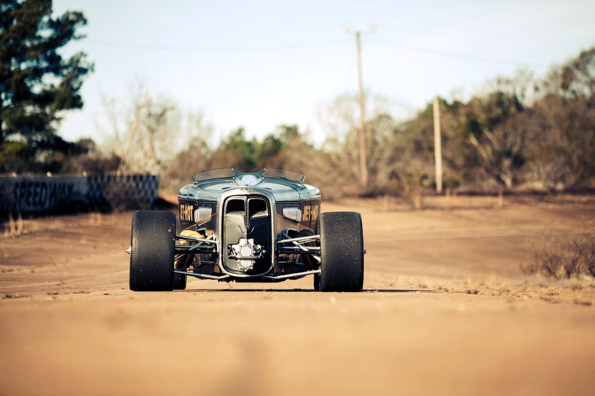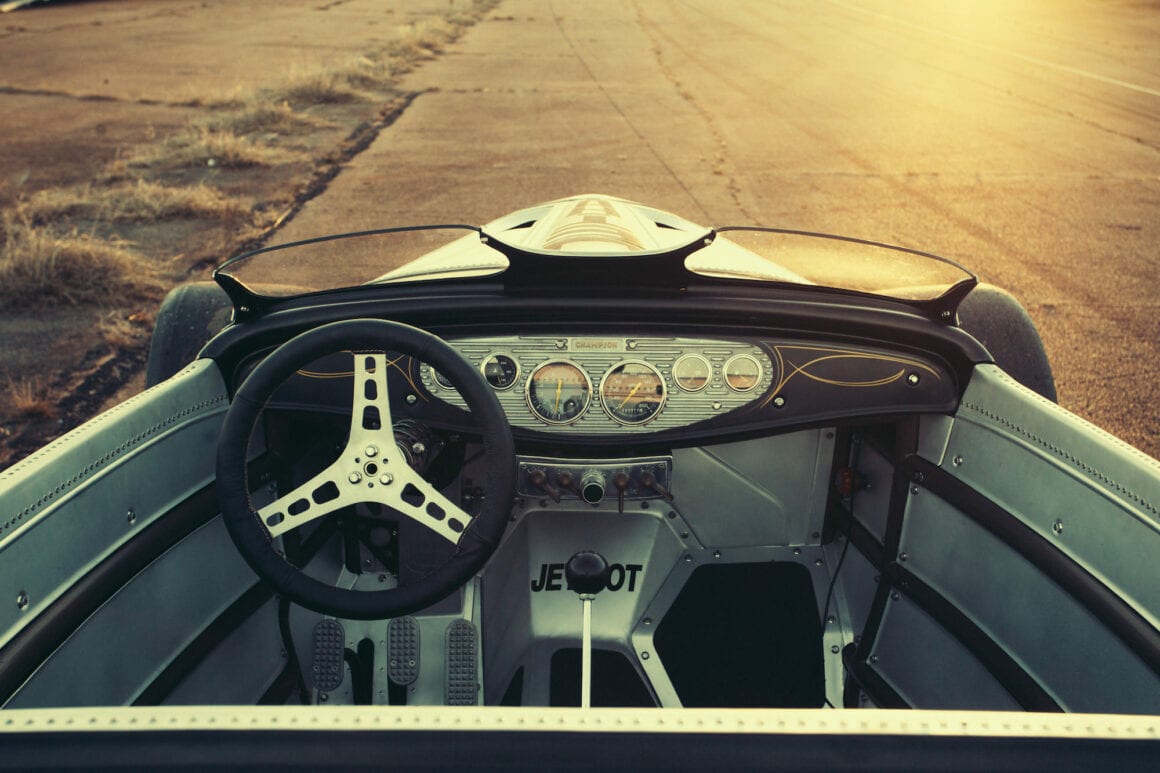 Il est temps d’en venir au Hot-Rod dont les photos (plus d’une trentaine) illustrent cet article. Bryan Fuller et son équipe ont développé un châssis qui s’adapte parfaitement à l’intérieur d’une carrosserie Ford ’32, ils l’ont ensuite motorisé d’un V8 John-Kaase-Boss de 576ci (9.400cc) préparé par Kurt Urban, développé une transmission AWD personnalisée et l’ont associée à une suspension dérivée de la course.