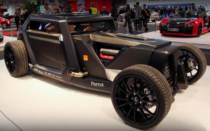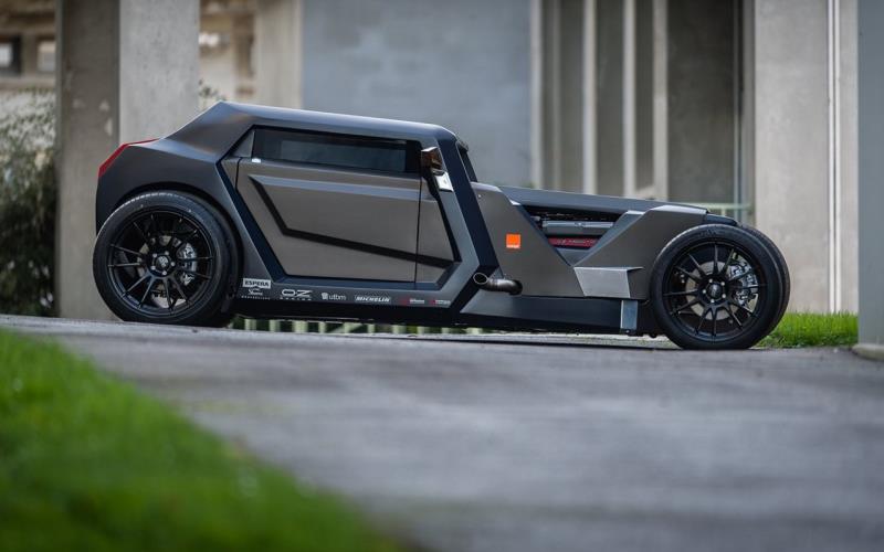 Huit cylindres, huit semaines de travail et presque huit jours par semaine (gag !)…, ce projet récupératif ne pouvait s’appeler autrement ! Les étudiants de l’école ESPERA Sbarro Montbéliard sont à l’origine de ce concept réalisé en partenariat avec la société Orange France, le Hot-Rod Sbarro Eight, récupère le design de Pawel Wisniewski et Jans Shlapins en y intégrant bon nombre de nouvelles technologies à l’instar de la Sbarro Speed’RS réalisée en 2010. Ce “concept” est également le fruit d’une collaboration avec le département Ergonomie Design et Ingénierie Mécanique de l’UTBM qui a su offrir son savoir faire en matière d’ergonomie mais également de matériaux bio sourcés pour la réalisation des rétroviseurs en fibres naturelles. Les échappements latéraux personnalisés sont directement reliés aux turbos (sic!) dixit la farde de présentation…, l’intérieur de son coté, propose de nombreuses variations de bois et de cuir avec des sièges fabriqués sur mesure (les mesures de qui ?) en fibre de verre avec divers morceaux de cuir tous re-cousus main…, un autoradio intelligent Parrot Asteroid avec un écran 6,2 pouces venant agrémenter le tout pour donner un aspect techno à l’ensemble…
