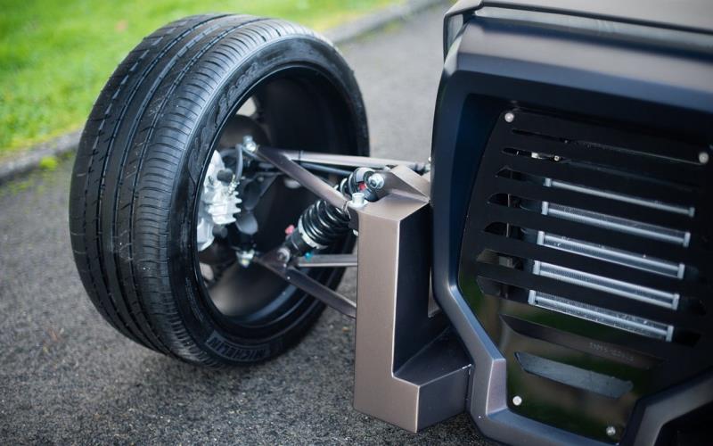 Le fondateur de l’école de design et légendaire designer automobile Franco Sbarro voulait vraiment que Michelin sur la voiture à l’approche du prochain Salon de l’auto de Genève, mais Michelin n’a pas été en mesure de fournir les pneus qui s’adapteraient aux roues arrière dans un délai aussi court, de sorte que la voiture a conservé les arrières Bridgestone. Ce sont les mêmes pneus que ceux qui équipent normalement une Ferrari 599 GTB Fiorano. Comme tous les autres concepts Sbarro, sous l’EIGHT se trouve un châssis tubulaire auquel est fixée une peau en fibre de verre, le châssis et la peau étant fabriqués en interne. Il y a ensuite des sections d’acier supplémentaires attachées au cadre tubulaire comme ce renfort à l’avant où les composants de suspension sont montés, ce qui agit comme une armure pour le châssis et prête également à l’aspect agressif de la voiture. Les concept-cars n’ont généralement pas besoin de rouler, mais les étudiants voulaient qu’il s’agisse d’un prototype fonctionnel. Au cours de la phase de développement, ils ont envoyé leurs plans pour la voiture à AVO Performance – une société spécialisée dans les unités de suspension personnalisées – qui a fabriqué une unité personnalisée pour l’EIGHT.