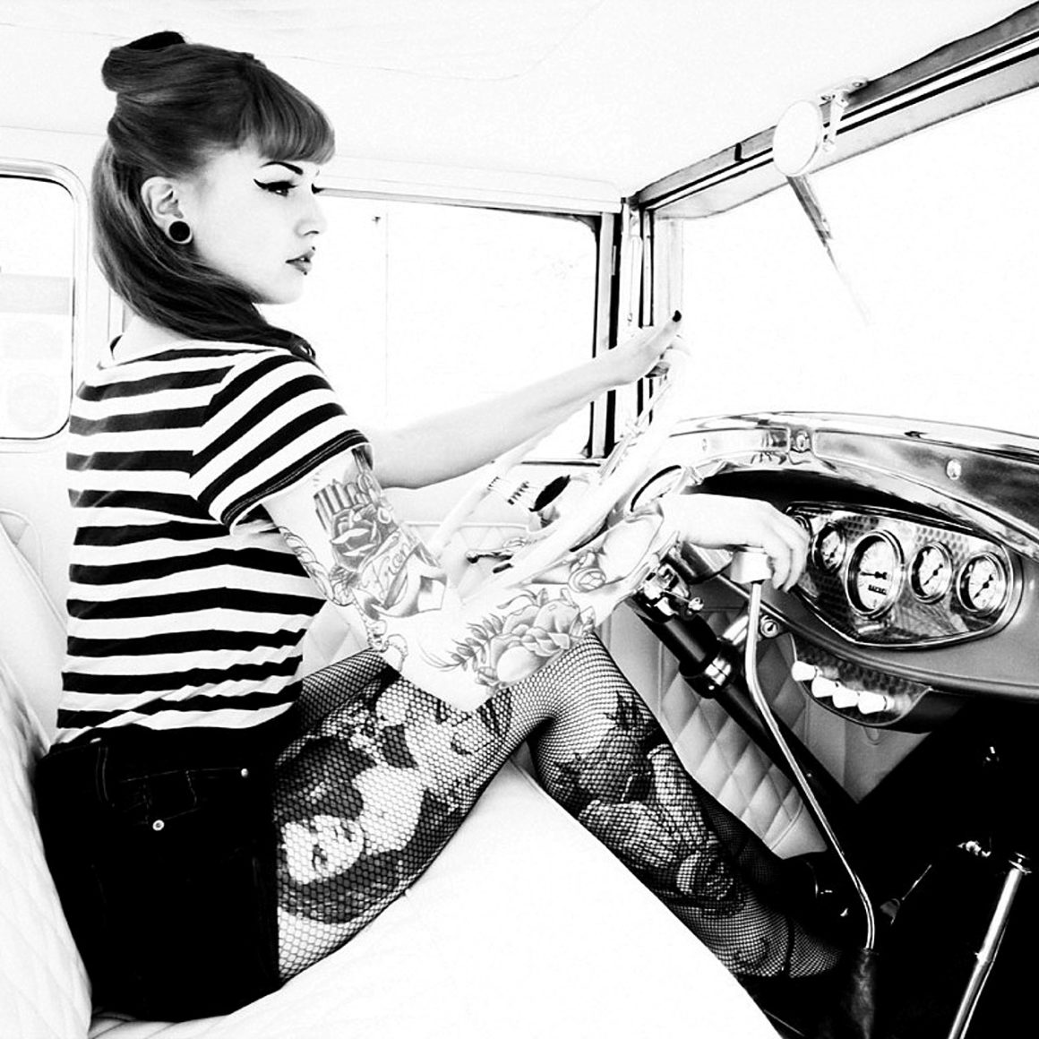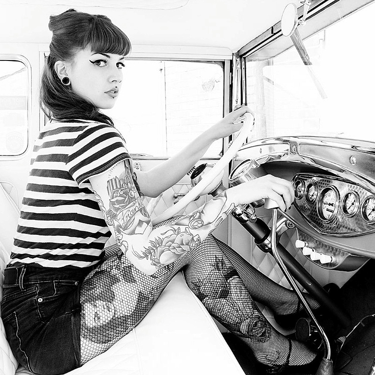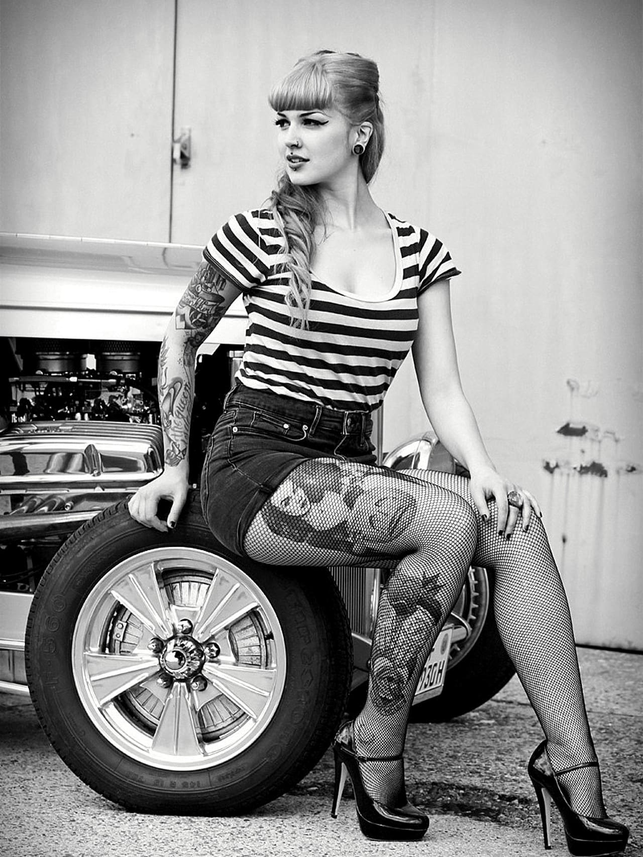 – De mon point de vue, je pense que c’est vraiment cool de voir des filles qui se construisent un Hot-Rod. Ce n’est pas si difficile pour elles d’ailleurs, les filles peuvent parfois être meilleures, plus motivées pour montrer leurs talents. Et évidemment, ça peut les aider si elles sont mignonnes, dans le sens qu’il y aura toujours des mecs qui vont finalement construire leur Hot-Rod totalement en contrepartie de quelques baises bien crades. Pour le succès d’être présentées avec leur Rod dans des Mag’s spécialisés, ça dépendra si elles sont assez bitchy…et si elles sont vraiment bonnes. Ca peut être simple à cause d’un joli minois, mais si elles ont vraiment du talent alors là c’est le pied intégral… (rires)…