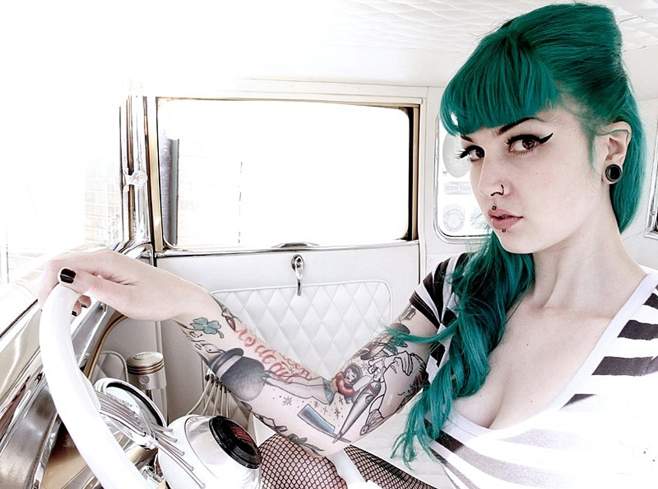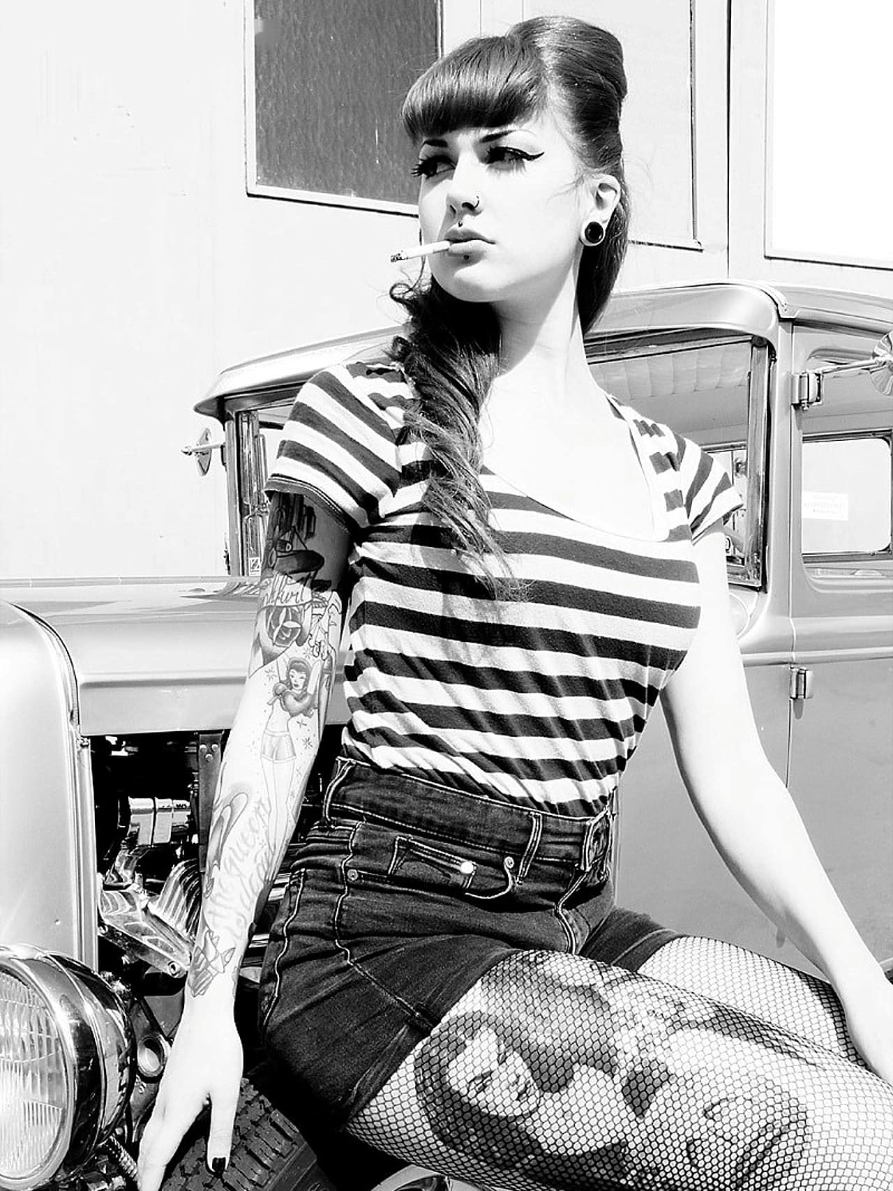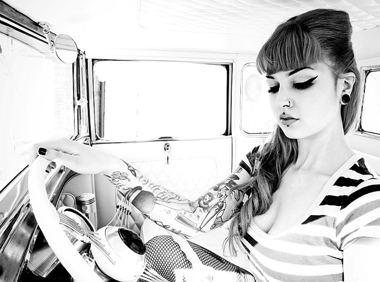 – De mon point de vue, je pense que c’est vraiment cool de voir des filles qui se construisent un Hot-Rod. Ce n’est pas si difficile pour elles d’ailleurs, les filles peuvent parfois être meilleures, plus motivées pour montrer leurs talents. Et évidemment, ça peut les aider si elles sont mignonnes, dans le sens qu’il y aura toujours des mecs qui vont finalement construire leur Hot-Rod totalement en contrepartie de quelques baises bien crades. Pour le succès d’être présentées avec leur Rod dans des Mag’s spécialisés, ça dépendra si elles sont assez bitchy…et si elles sont vraiment bonnes. Ca peut être simple à cause d’un joli minois, mais si elles ont vraiment du talent alors là c’est le pied intégral… (rires)…