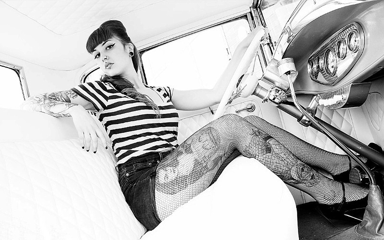 – Sauf qu’ici, personne n’en parle, c’est un sujet inexistant dans les médias. D’ailleurs, il y a quelques années, avec mon gang, on a participé à des réunions officielles, des meetings pour Hot-Rods. Dedans, tu pouvais y trouver des flics, des députés, des politiques… et toutes les organisations criminelles du coin. C’était excellent, ça permettait de faire un maximum de connections avec les politiciens (rires). D’ailleurs, on a même baisé devant eux en soirée… et les mecs nous applaudissaient, même que ça balançait bien hardcore. Ah, d’ailleurs, je connais un politicien assez connu qui se construit un Hot-Rod style Kalifornia-Kid avec des flammes, dans son garage ! (S’ensuit un discours un peu éclaté sur les liens entre certains politiques et elle, difficile à comprendre). Tu sais, j’ai monté pas mal de dossiers sur des mecs qui trempaient dans des affaires louches et qui sont devenus soudainement connus en politique, ce genre de trucs.. et… euh… c’était quoi la question à la base ? Désolé, je suis complètement défoncée là ! (rires)…