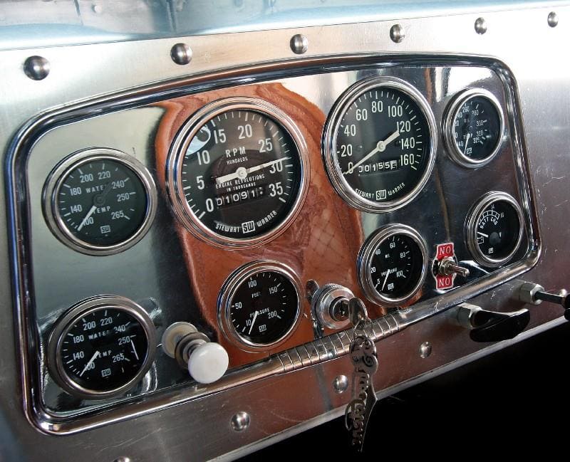 Le seul autre “ornement” dans la cabine est un ensemble complet de jauges Warner-Stewart.