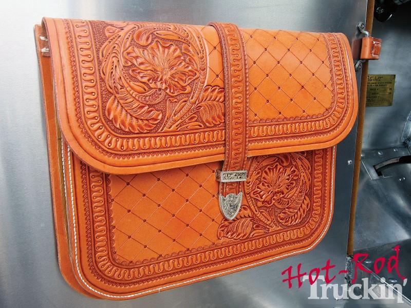 L’intérieur est spartiate avec les panneaux d’aluminium, mais les sièges sont fait-main, en cuir de Rogue-River / Oregon, de même que les sacoches “de selle” montées sur chaque intérieur de porte.