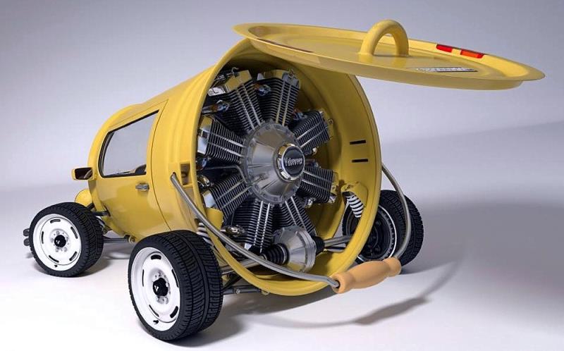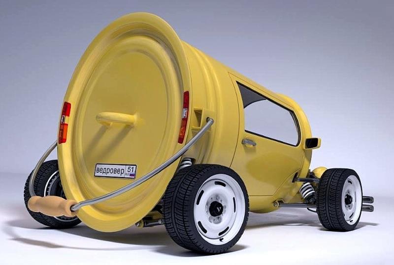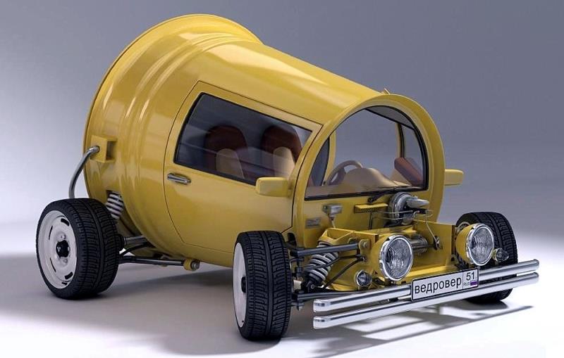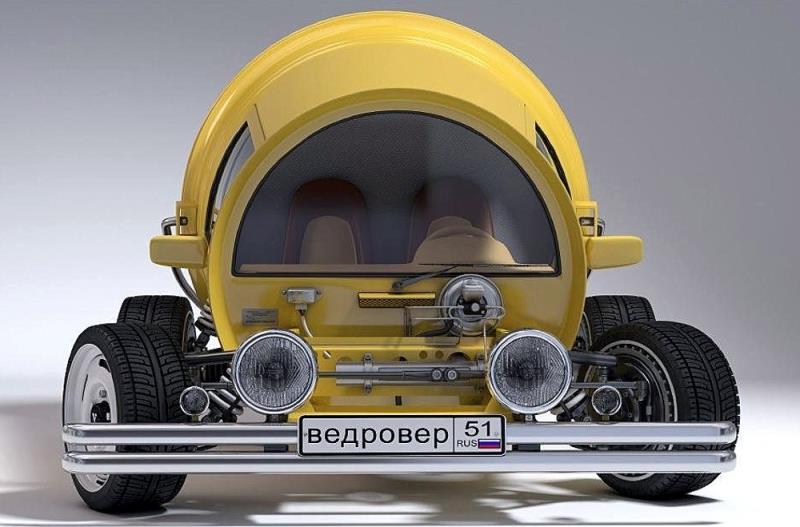 Une bien belle auto qui est éminemment sympathique et décalée au point de faire passer la Fiat 500 ou la Mini pour des voitures archi conservatrices…, quoique, peut être, qu’un Hot-Rod Lapin rose ferait oublier ce seau de course sur roulettes… et quand vous saurez que ce BucketRover made in Russia est propulsé par un moteur en étoile à 8 cylindres de Polikarpov, vous vous direz que pas grand chose ne pourra résister à cette poubelle jaune sur-motorisée…, il y a des engins roulables qui font le ménage instantanément…, dès les 10 premières secondes qu’on les voit, c’est la folie, un viol du crâne avec les oreilles qui croient entendre des sirènes putassières !