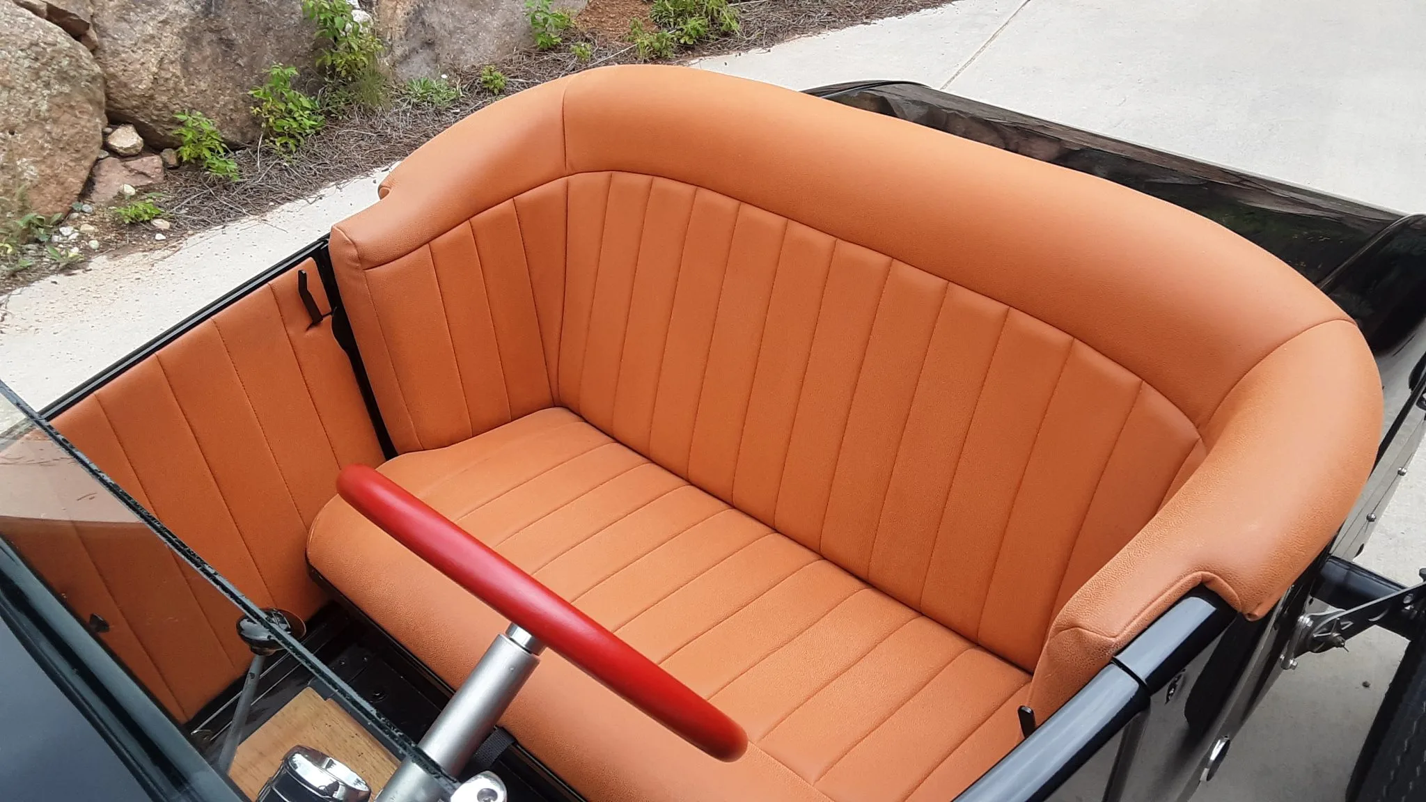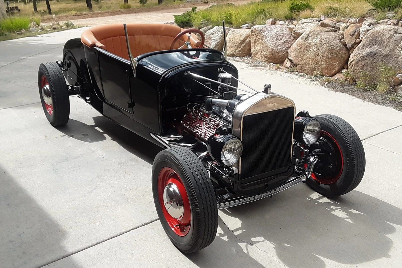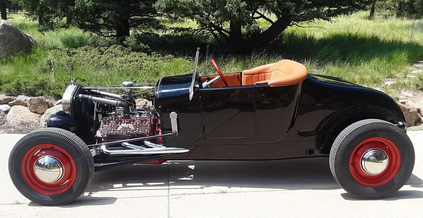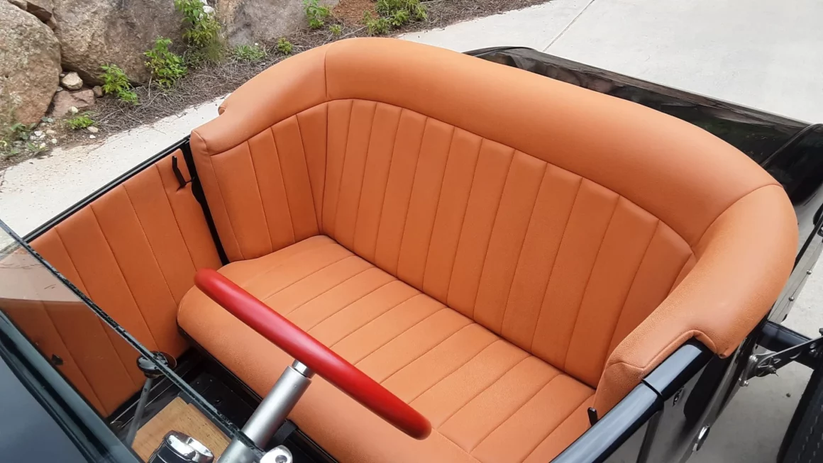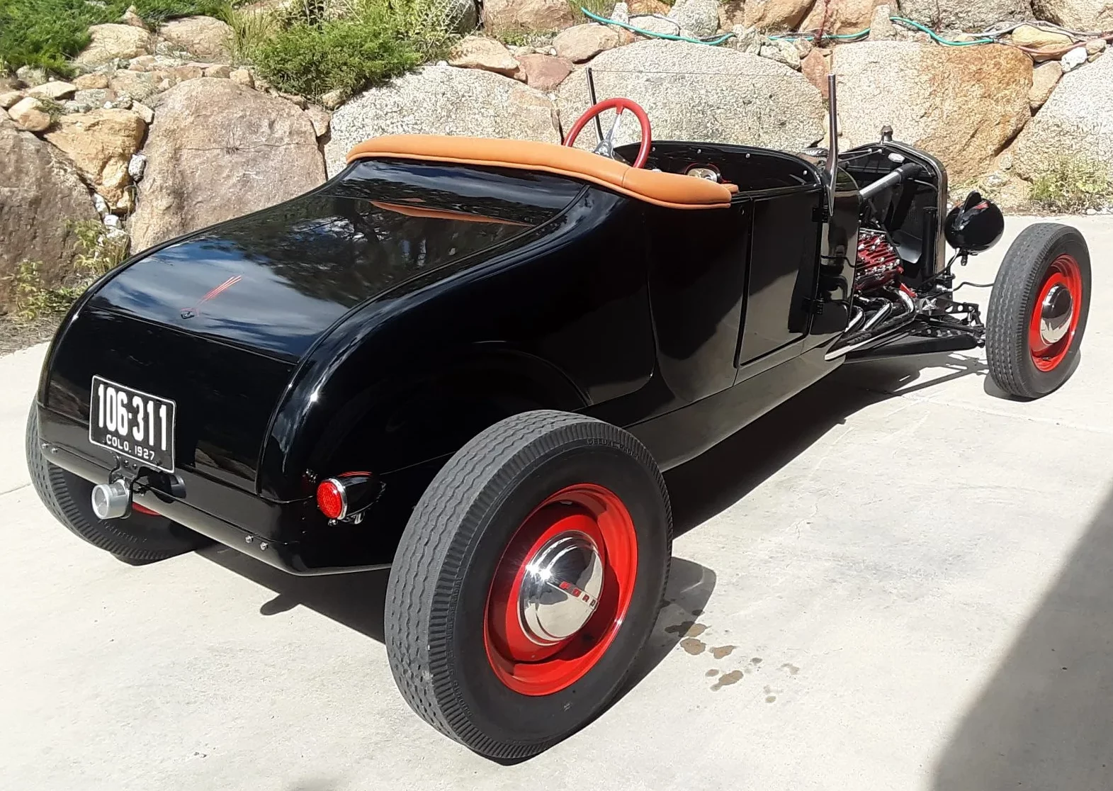 Ce Hot-Rod Tudor’27 n’est pas un Misfit mais simple et beau. Le V8 est équipé de culasses Edelbrock et la puissance passe par une transmission manuelle à trois vitesses. La voiture est finie en noir sur une sellerie beige et dispose d’un essieu avant Super Bell à poutre en I, et de planchers en chêne.