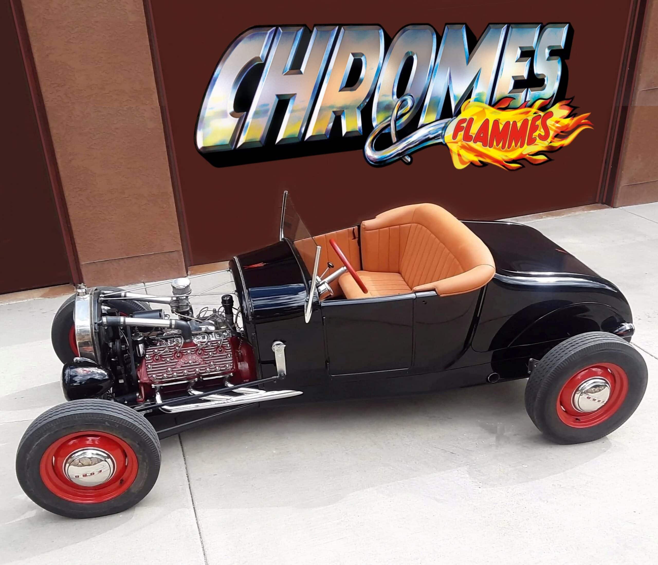 1° – La vision Chromes&Flammes avec le Novel’T (C-Cab), le B’32 (Sedan), la Traction Citroën (Hi-Boy), l’Olds’48 (Viking) et le Trike V12…