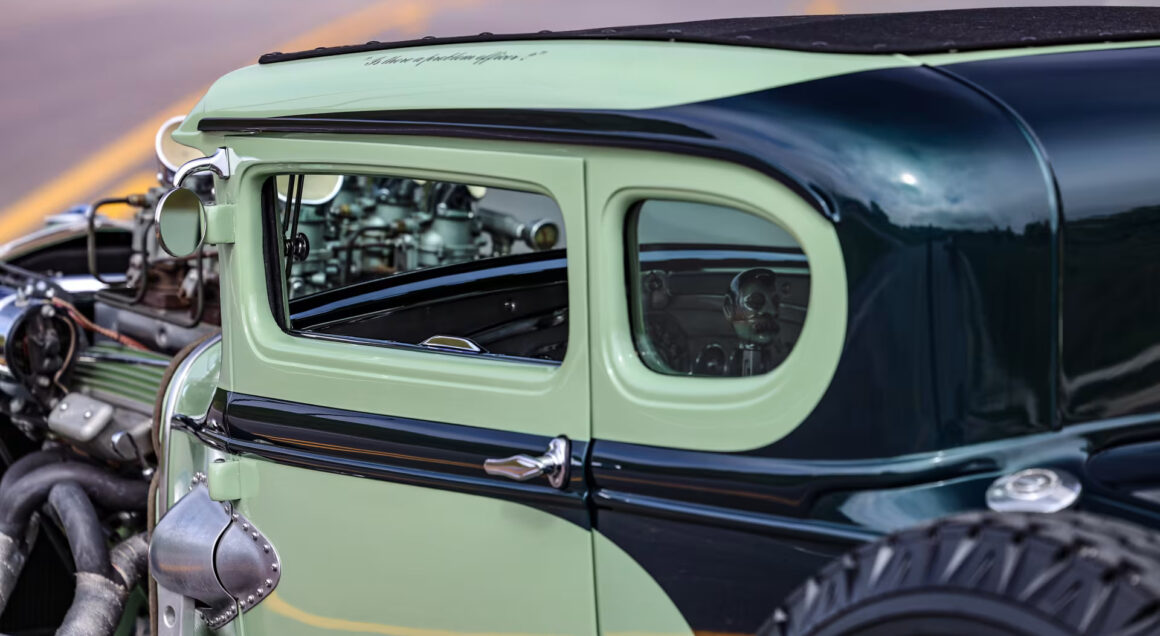 Ce Hot Rod Ford Model A Coupe nommé “Voodoo Psychosis”, Lot S111 de la vente Mecum à Indianapolis, du samedi 18 mai 2024, a été vendu 77.000 $, une misère ! C’était le Fétiche auto-perso de “Voodoo Larry Grobe”, qui a fait la couverture du magazine Street Rodder et a été présenté dans de nombreux autres magazines et articles. Ce Hot Rod a en cette suite, remporté de très (certains disent “trop”) nombreux prix lors de shows Kustom’s.