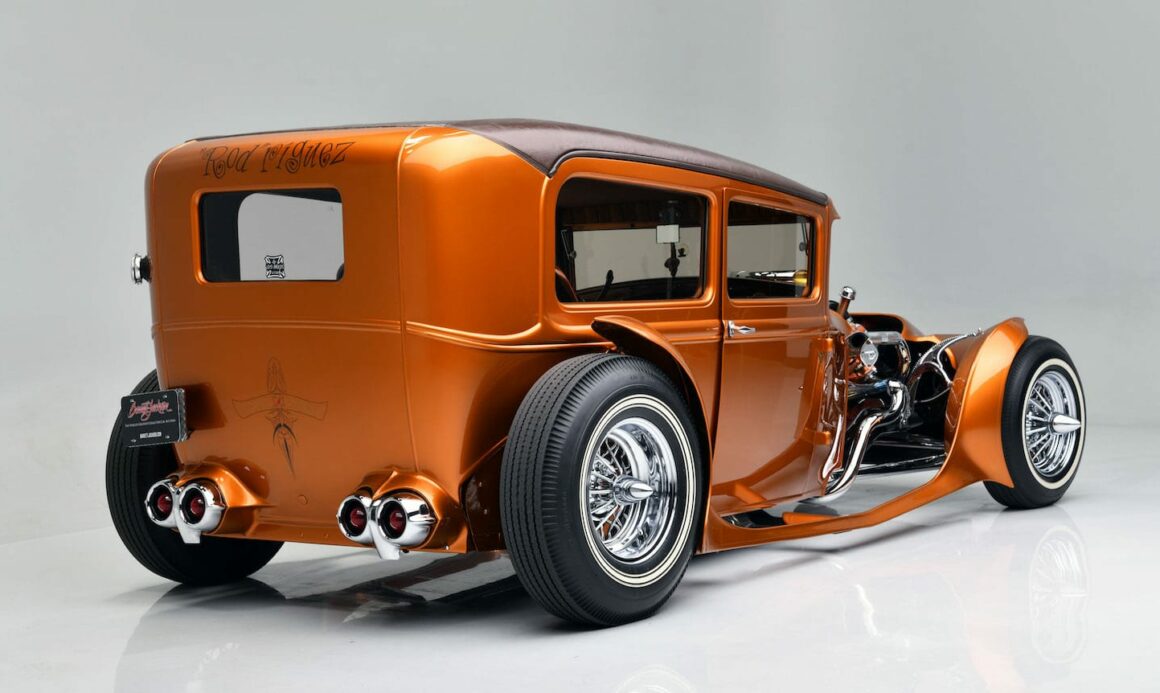 Ils s’envoient des SMS chaque semaine et dialoguant fréquemment sur Messenger et Internet. De plus ils se voient chaque année que Shimodaira vient en pélerinage aux États-Unis….”Junichi et sa femme viennent chaque année voir leur enfant”, m’a dit Schauwecker. “C’était déchirant, quand il me l’a vendu, il m’assure que sa femme a pleuré. Mais maintenant je sais que c’est de bonheur de me l’avoir vendu. Je désespère. J’ai essayé plusieurs maisons de ventes aux enchères, mais ça ne donne rien. Et vous ? N’avez-vous pas envie de m’en débarrasser ? Je suis prêt à tout ! Faites-moi une offre ! Vous n’avez que 73 ans, vous avez un super web-site et des moyens financiers, de plus à 73 ans, vous êtes encore jeune alors que moi à 82 ans, je suis presque mort. Faites un geste, Dieu vous le rendra. Savez-vous que la voiture a remporté plusieurs trophées George Barris, et je suis reconnaissant à Dieu d’avoir eu la chance de connaître Barris personnellement avant son décès en 2015. Pour les funérailles de Barris, sa famille m’avait demandé d’amener le “Rod-Riguez”, pour le convoi funèbre et j’ai été honoré de cette obligation. J’ai également des photos de moi avec des célébrités comme Jay Leno et Dick Van Dyke et Georges Barris. Cette voiture a changé ma vie à travers les gens que j’ai rencontrés et les endroits où j’ai été invité… C’était incroyable, cela m’a ouvert des portes que je n’aurais jamais cru ouvertes et m’en a fermé d’autres qui auparavant m’avaient toujours été ouvertes, je suis maudit”… Le “Rod-Riguez” a traversé le bloc de la vente aux enchères de Barrett-Jackson à Las Vegas. Schauwecker et son vieil ami Junichi Shimodaira regardaient via internet, chacun chez lui, espérant un miracle : que le Hot-Rod finisse dans un musée… Il n’a pas été vendu…