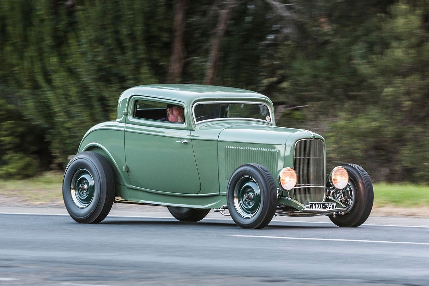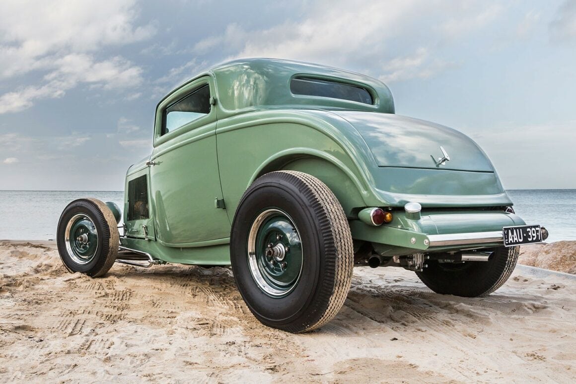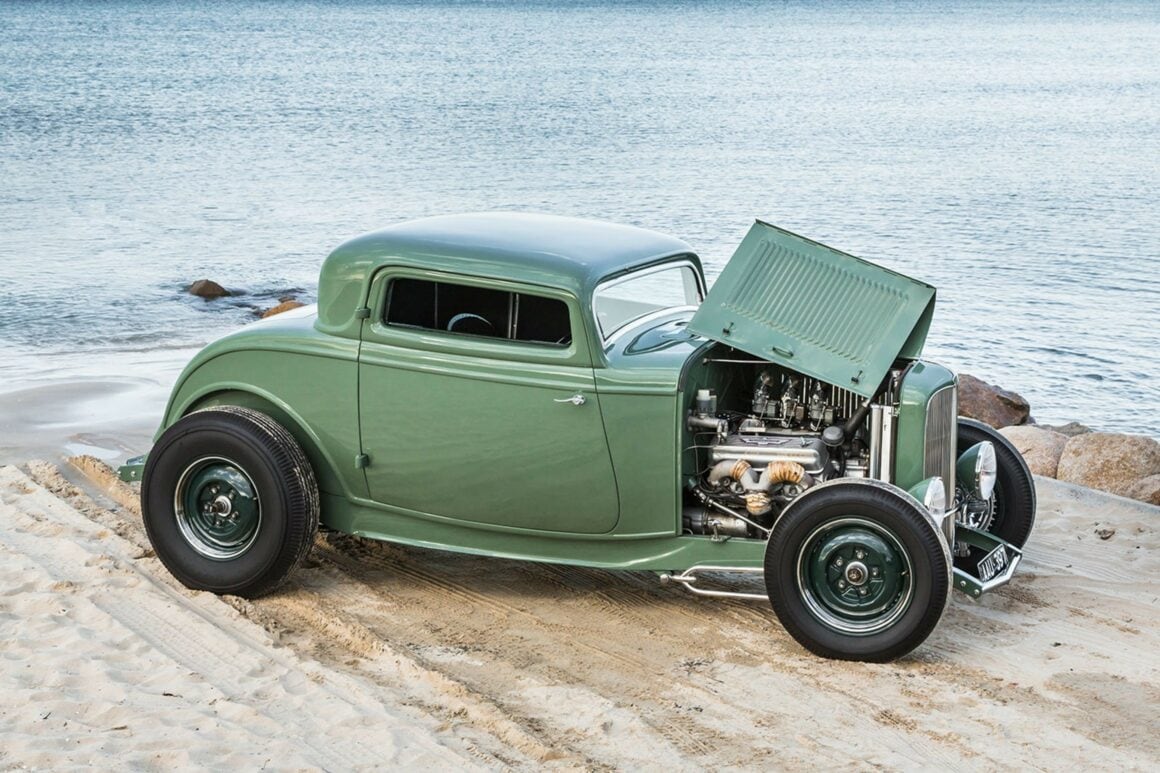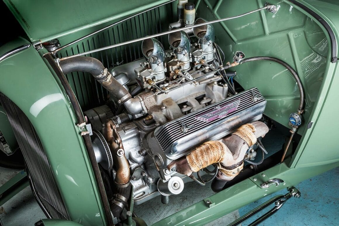 PETER QUAIFE 1932 FORD Three Window’s – V8 Ford Y-block 272ci – Triple Stromberg 97s Manifold – OffenhauserExhaust –