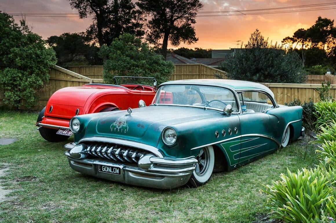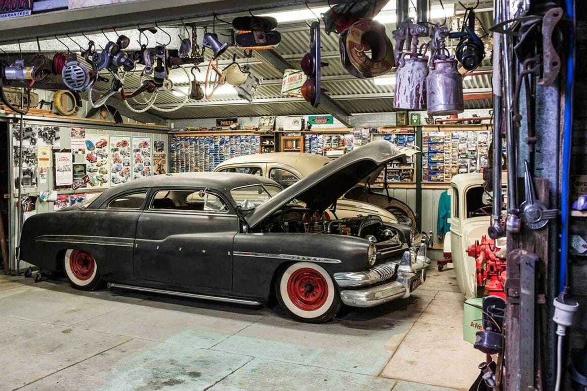 C’est donc rafraîchissant de tomber sur une autre vraie réalité du Hot-Rodding, comme je l’ai vécu lorsque j’ai découvert la propriété interdite et maison de Peter Quaife à Rye, Victoria, Australie. C’est un Hot-Rodder survivaliste. Le hangar de Pete est un pur paradis du Hot-Rodding. Il possède 20 voitures qu’il considère comme des pépites d’or dans sa mine d’or. De plus il a un second hangar de pièces et un troisième servant d’atelier de construction/récupération. Pete m’a dit que l’ensemble atteignant occasionnellement une masse critique, et quand c’est le cas, il commence simplement une nouvelle construction de Hot-Rod. En fait, à 73 ans comme moi, il est censé être à la retraite maintenant et se balader autour de sa propriété que lui et sa femme Denise ont achetée comme il y a 40 ans. En ce qui concerne le devenir de l’humanité, Pete et Denise s’en moquent, elle ne s’intéresse qu’à lui qui ne s’intéresse qu’aux Hot-Rods. En regardant ce que Pete a construit au fil des ans, on est estomaqué ! En errant dans sa propriété on découvre des Hot-Rods correspondant à des modes, un par an… Des modes qui entrent et sortent, certaines une fois, d’autres encore et encore. Mais il y a aussi des styles séculaires qui évoquent des époques, le genre de look qui vous fait dire: Ahhhhhhh ! Parce que c’est juste ce qu’on trouve à dire…. Comme la découverte de nourriture simple faite parfaitement.