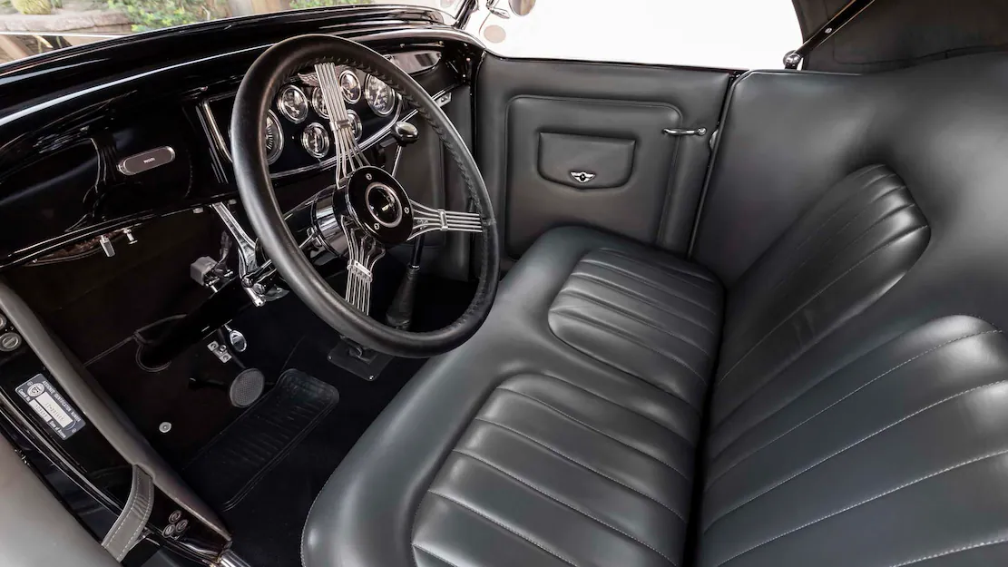 Ce sont des compteurs Stewart-Warner Wings pour le tableau de bord pré-adapté, et pour parfaire, Dick a utilisé une bielle pour fabriquer le support de la colonne de direction… Dick conduit toutes ses Ford Deuce1932 et a commencé à faire de même avec ce Hot Rod … “Mais je n’avais pas 100 miles dessus quand le moteur a explosé, alors après avoir juré comme un charretier de western, c’est à ce moment-là qu’il a recommencé diverses modifications.