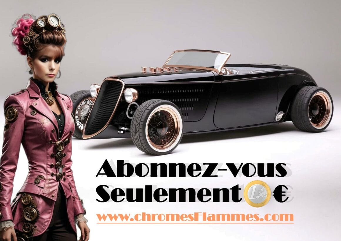Il devrait toutefois être pré-monté et c’est Chris Miranda qui imaginerait et construirait le prototype d’une nouvelle carrosserie full aluminium, et c’est cela qui deviendrait le nouveau “Kit de luxe FFR” (Factory Five Racing) comme nouvelle base pour former de nouveaux panneaux. Et pour marquer les esprits ce serait un “FFR’33 Steampunk” totalement “politiquement acceptable”, pour pouvoir être vendu cher dans une nouvelle tranche “haut niveau” destinée aux riches Hot Rodder’s qui sont 200.000 abonnés mensuels à ChromesFlammes/GatsbyOnline.SecretsInterdits numérique (1 euro ou dollars le 1er mois et 5 euros/dollars par mois pour la suite), pour des sujets situés entre le politiquement correct et le politiquement incorrect… Waouhhhhhhhh !
