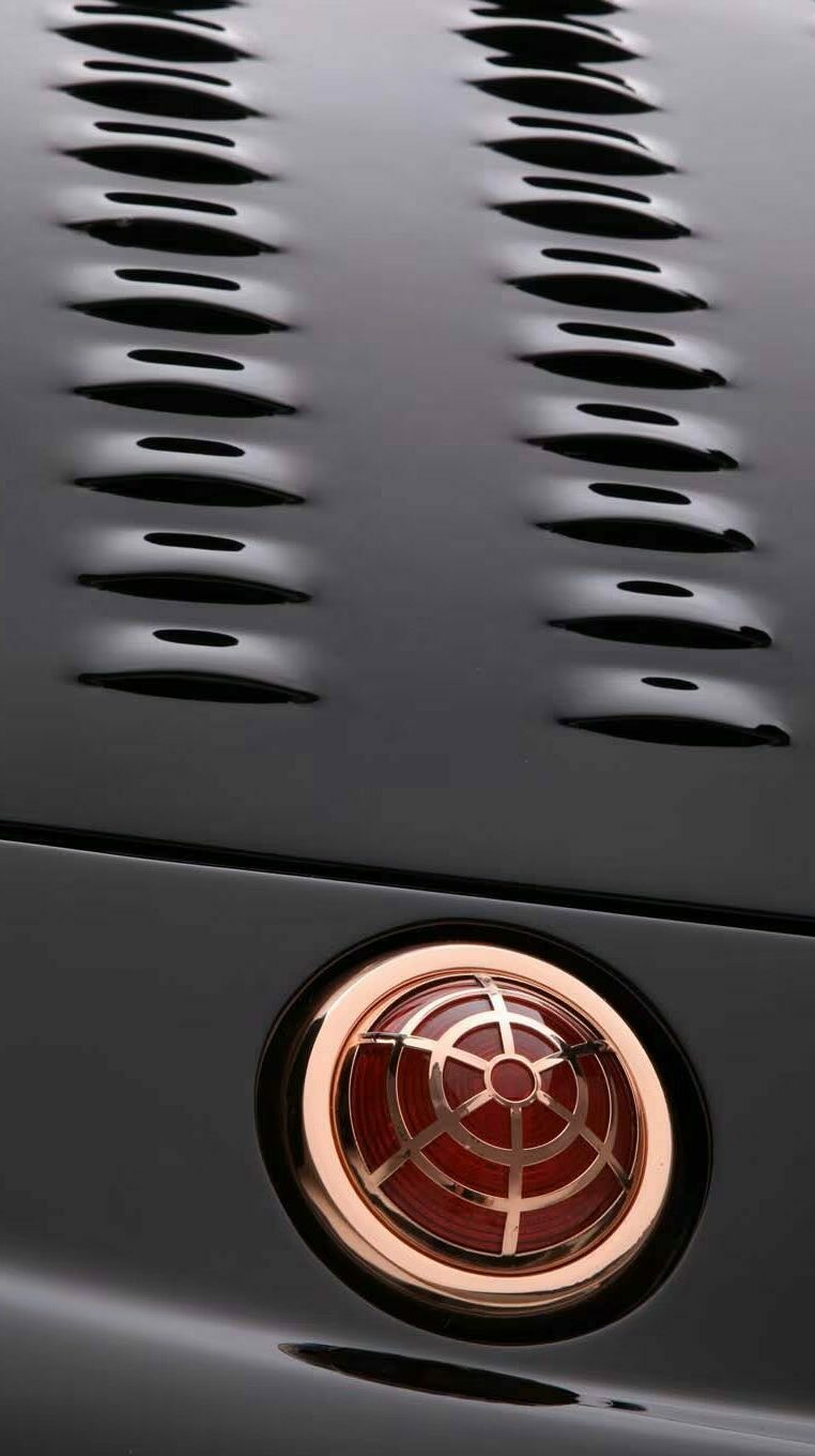 Une ouverture oblongue a été rendue nécessaire pour que les pipes d’injection puissent passer. Les flancs du capot ont été créés avec des “Louvers” incurvés pour que les bras triangulaires “IFS” puissent passer. Le couvercle du coffre est également couvert et rempli rempli de persiennes/louvers, de même que le carter arrière est également rempli de mêmes persiennes/louvers… Et il y a des sorties d’échappement dans chaque panneau de bas de caisse juste en avant des roues arrière (sic !)… “Manny Garcia”, situé sur la côte ouest des USA, a refait la carrosserie aluminium requise en réutilisant celle de “Factory Five” avant que Chris Miranda ne pulvérise personnellement le tout avec la peinture “Spies Hecker Deep Black”.
