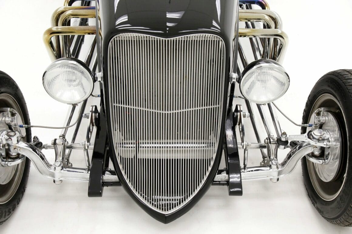 Les voitures de cette époque sont difficiles à distinguer les unes des autres, les styles de carrosserie étaient très similaires. Même d’année en année, les gens qui connaissent les Coupés Deuce confondent un modèle A habillé comme un 1932 avec un vrai ’32. Le fait est que les Ford sont plus importantes que toute autre marque pour cette époque de voitures. À cet égard, la coque de la calandre et l’insert de grille sont un cadeau mort avec son élégante pointe de veuve au sommet et sa forme sculptée en plaque pliée. Les carters de calandre du modèle A (1928-1931) sont plus carrés et la calandre est plate sans pli au milieu. Pour 1932, la carrosserie était toute neuve, les rails du cadre sont plus sculptés et rapprochés pour un look ciselé.