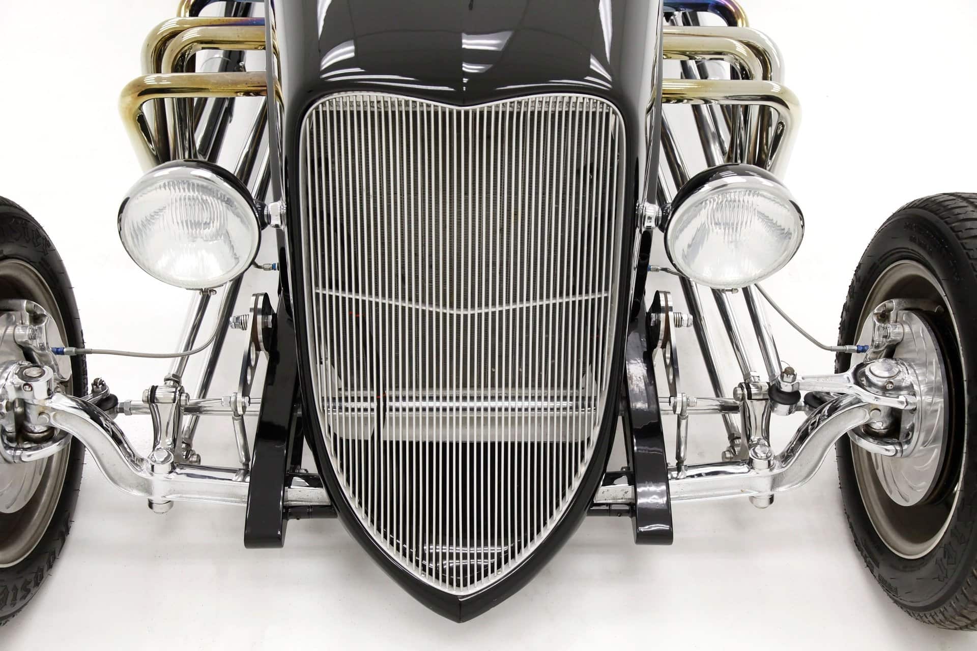 La zone autour du capot et du montant A est unique à cette année. La ligne de carrosserie haute et les crêtes incurvées estampées sous les ouvertures des fenêtres ont une proportion spécifique facile à repérer et commune à toutes les Ford de 1932. Plus tard, les Ford de 1933-34 ont une calandre inclinée vers l’arrière (la calandre ’33 est en outre expulsée dans une légère courbe en bas), des évents diagonaux dans les panneaux latéraux du moteur et une ouverture de porte diagonale assortie, ce qui laissait présager plus d’influences aérodynamiques à venir. Armé de ces détails, il est possible d’aller à un Hot-Rod-Show et d’apprendre des différences plus subtiles afin d’impressionner vos amis !