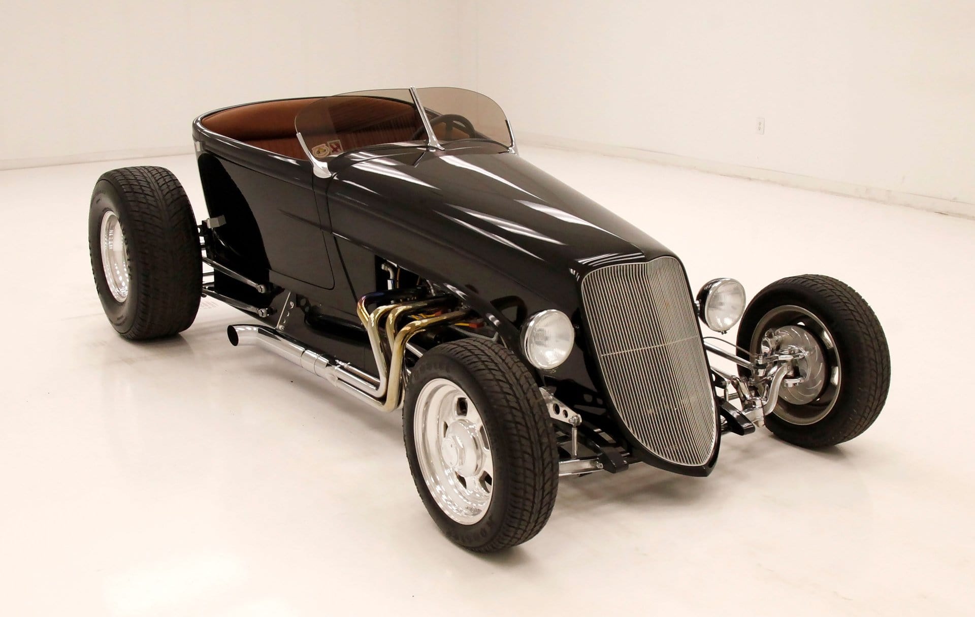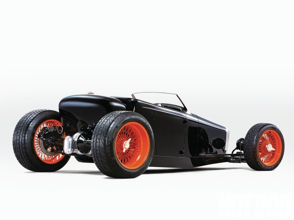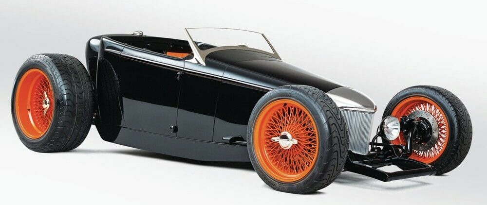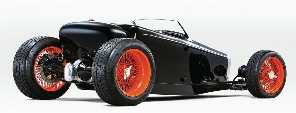 Un mécanicien de week-end compétent avec un budget limité peut se construire un Coupé Deuce “At Home” en utilisant de toutes nouvelles pièces pour environ 30.000 $, mais un Hot-Rod Coupe Deuce clé en main fini peut être acheté pour aussi peu que 40.000 $ ou 50.000 $. Tout ce qui précède doit maintenant vous intriguer car le Hot-Rod illustré est un Roadster… Ben oui… Et alors ? Ce Roadster est de toutes façons en marge, c’est un Zipper Hi-Boy, roues ouvertes, cockpit ouvert. Si vous voulez concevoir des Hot-Rods et que votre talent, votre dynamisme et votre sens de l’humour sont suffisants pour vous faire entrer dans une école de design, les instructeurs vous avertiront que l’occasion de concevoir un Hot-Rod Roadster ne se produira pas.