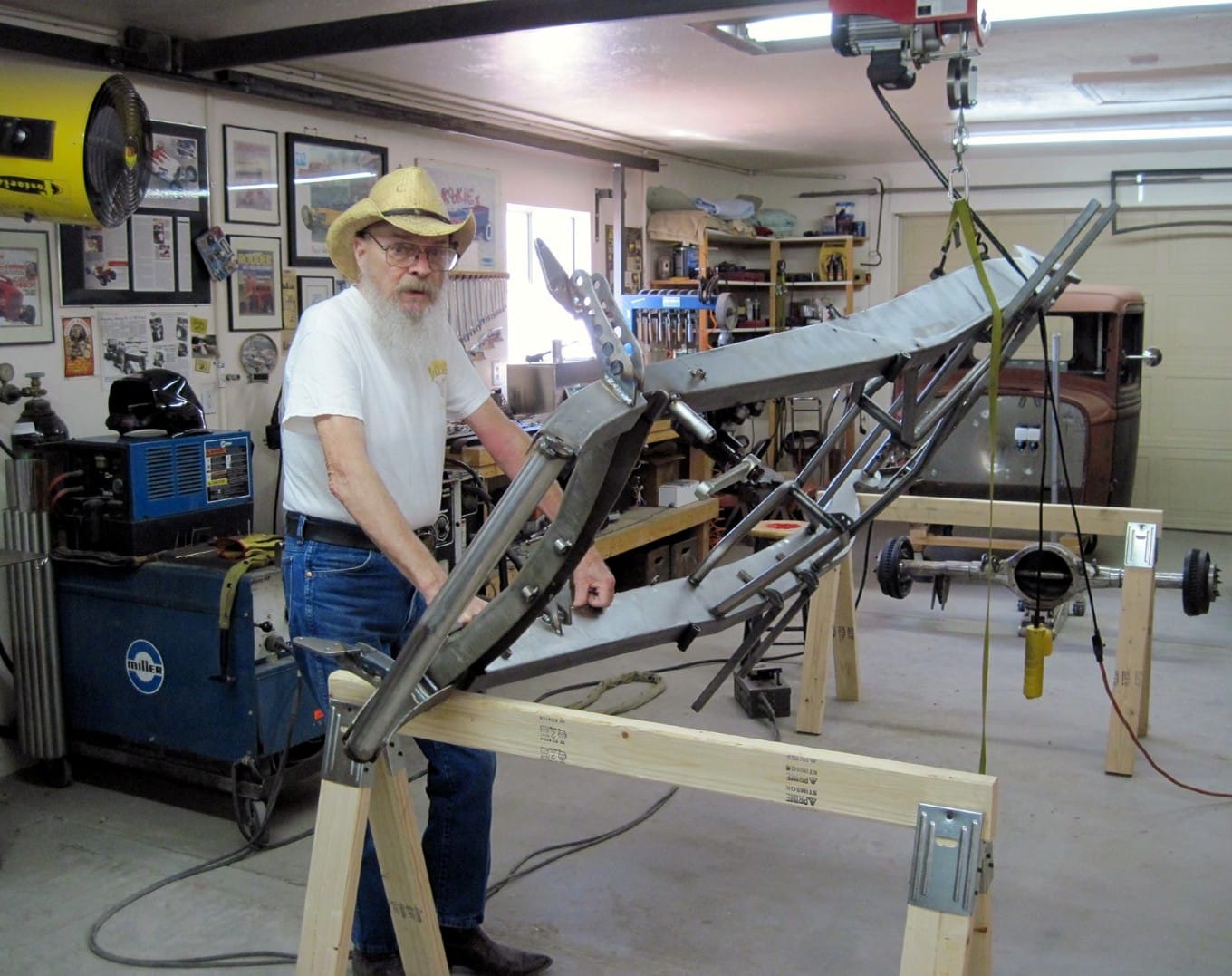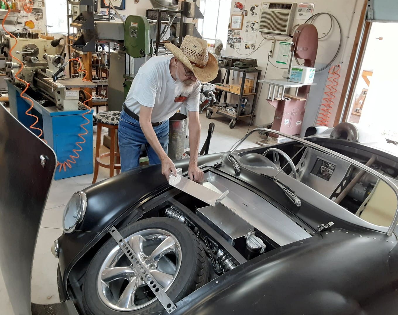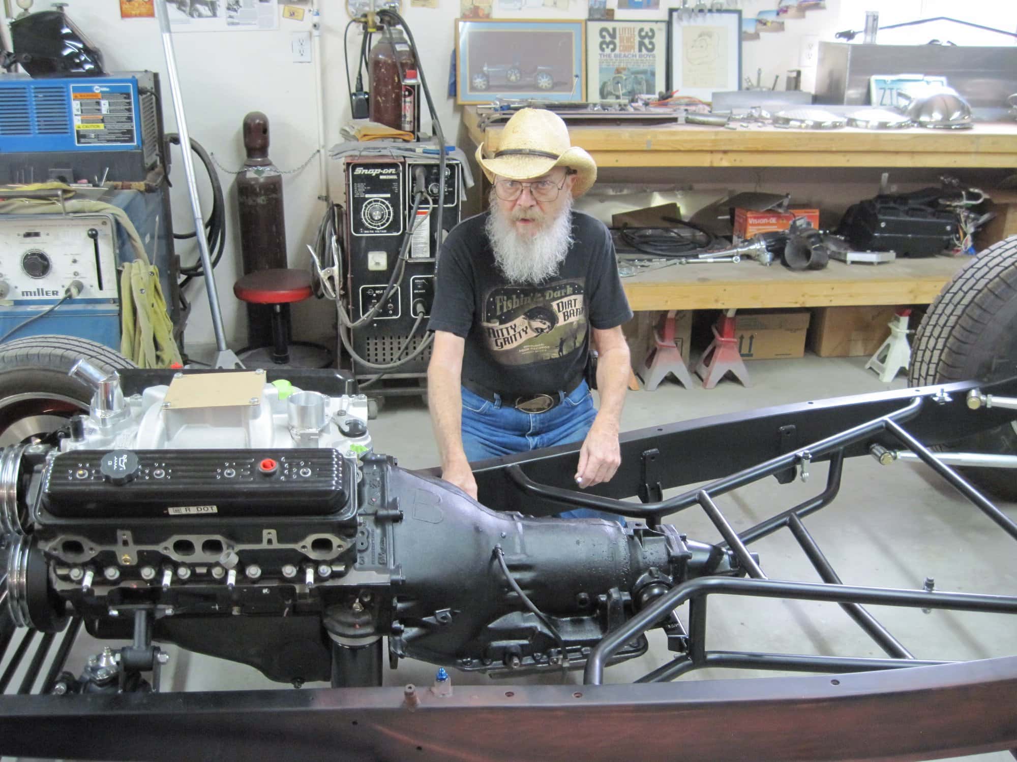 Une fois que Darrell Zipp a été satisfait de la conception, l’équipe a fait exploser les dessins à l’échelle et a commencé à fabriquer le châssis. Avoir d’avance les jantes et les pneus ainsi que le moteur la boite et les trains roulant était un plus nécessitant peu de conjectures pour le produit final. L’étape suivante consistait à marteler la tôle. Avec le numérique, il est plus facile d’obtenir les sections dessinées. Pour ce projet, Dan a commencé à travailler le métal pour former le capot, puis les portes, et finalement le plancher et le tunnel de transmission. Une fois la carrosserie principale créée, elle a été fixée au châssis et confiée à Craig pour le capot, les sièges et le formage de la section arrière que Dan a soudée et finie en raison de contraintes de temps avec le SEMA Show