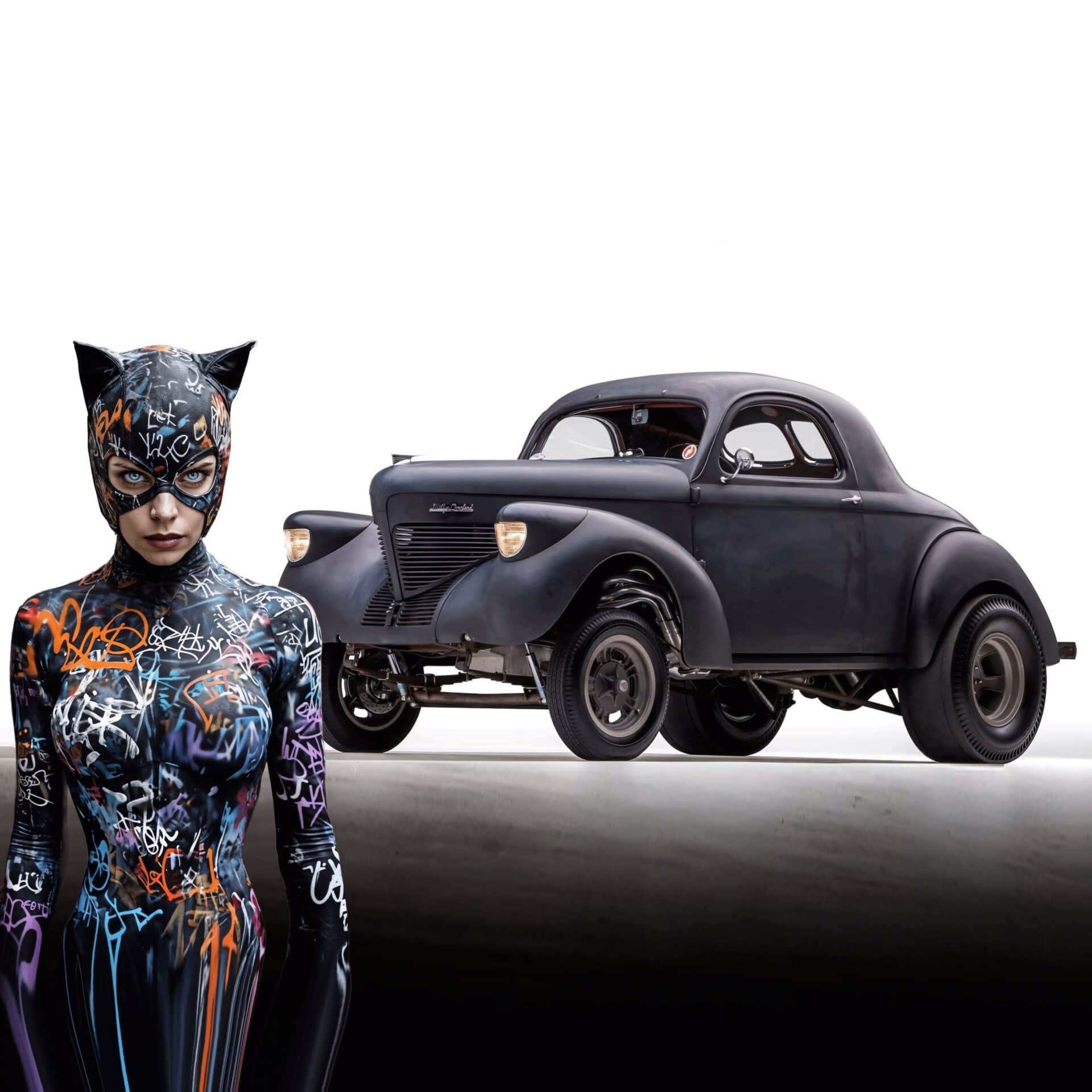 Pour en revenir à la Willys d’Aaron et Margarita, ils m’ont dit qu’elle a été convertie en démone de Gasser à la fin des années’60. “J’avais environ 5 ou 6 ans et j’ai entendu un grondement à côté. J’ai couru à la fenêtre et j’ai vu une Chevrolet’55 recouverte d’apprêt qui tournait au ralenti dans l’allée du voisin. Cela a conduit à de nombreux voyages au magasin de bricolage et à beaucoup de ciment miniature enduit sous forme de kits de maquettes en plastique à l’échelle 1/25 avec des noms comme « Bad Man », « Skipper’s Critter », « Swindler A », et oui, “Big John Mazmanian” est passé de morceaux de la taille d’un pouce sur une grappe en plastique à des rêves plus grands que nature dans les têtes d’Aaron et Margarita.