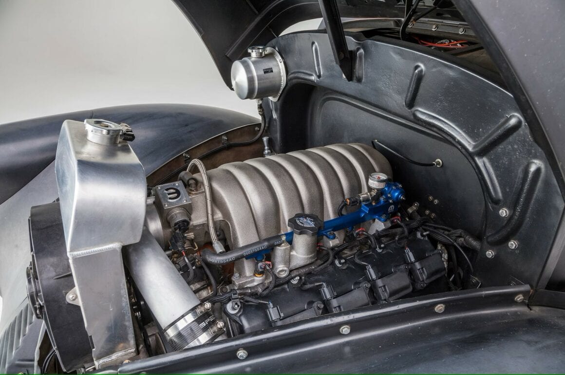 Aaron m’a dit : “J’ai aussi une Willys 1940 entièrement en acier que j’ai construit avec un GMC 528ci Gen II Hemi suralimenté. Bien qu’elle développe 876 chevaux et 840 lb-pi, et que je repousse ses limites de temps en temps, elle était surtout reine de ma remorque. Les reines de remorques sont acceptables pour aller courir sur divers Strip contre des dragsters, mais après un certain temps, le besoin d’y aller sur la route prend le dessus. C’est ce qui s’est passé ici. Avec sa puissance de 425 chevaux nominale en usine et sa boîte automatique moderne à quatre vitesses, le 6L1 Hemi “imprègne le mean gris” avec des temps de quart de mile de 12,34 secondes 112,19 mph et une croisière sans effort sans entretien sur l’autoroute à 1.900 tr/min tout en délivrant 22 mpg”…