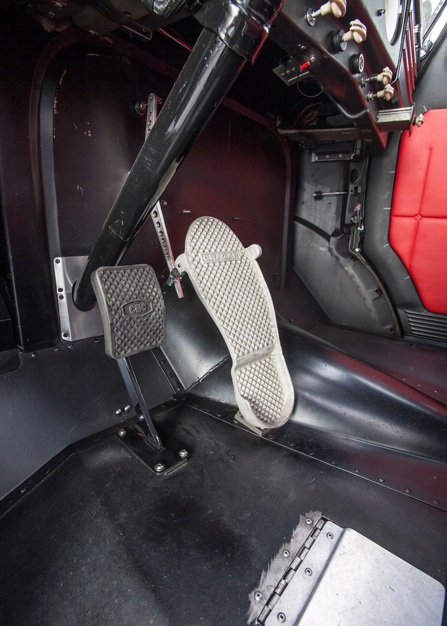 Dans le cas d’Aaron et Margarita, ils sont un adepte d’une carrosserie entièrement en acier (y compris les ailes, les portes et le capot) et il a voyagé jusqu’au Canada pour marquer celui-ci. Pensez-y, sous l’apprêt époxy PPG DP90 qui a été formé à l’usine d’emboutissage de Willys à Toledo, dans l’Ohio, trois ans avant que quiconque n’entende le mot “Jeep” chuchoté. Il en va de même pour le châssis, bien que les rares pièces en C d’origine aient été mis en boîte pour plus de résistance (une mise à niveau classique à l’époque comme aujourd’hui). Le thème du métal Vintage se poursuit avec un tas de goodies rares en magnésium. Les jantes Halibrand sont à ce sujet, de véritables pièces Vintage.