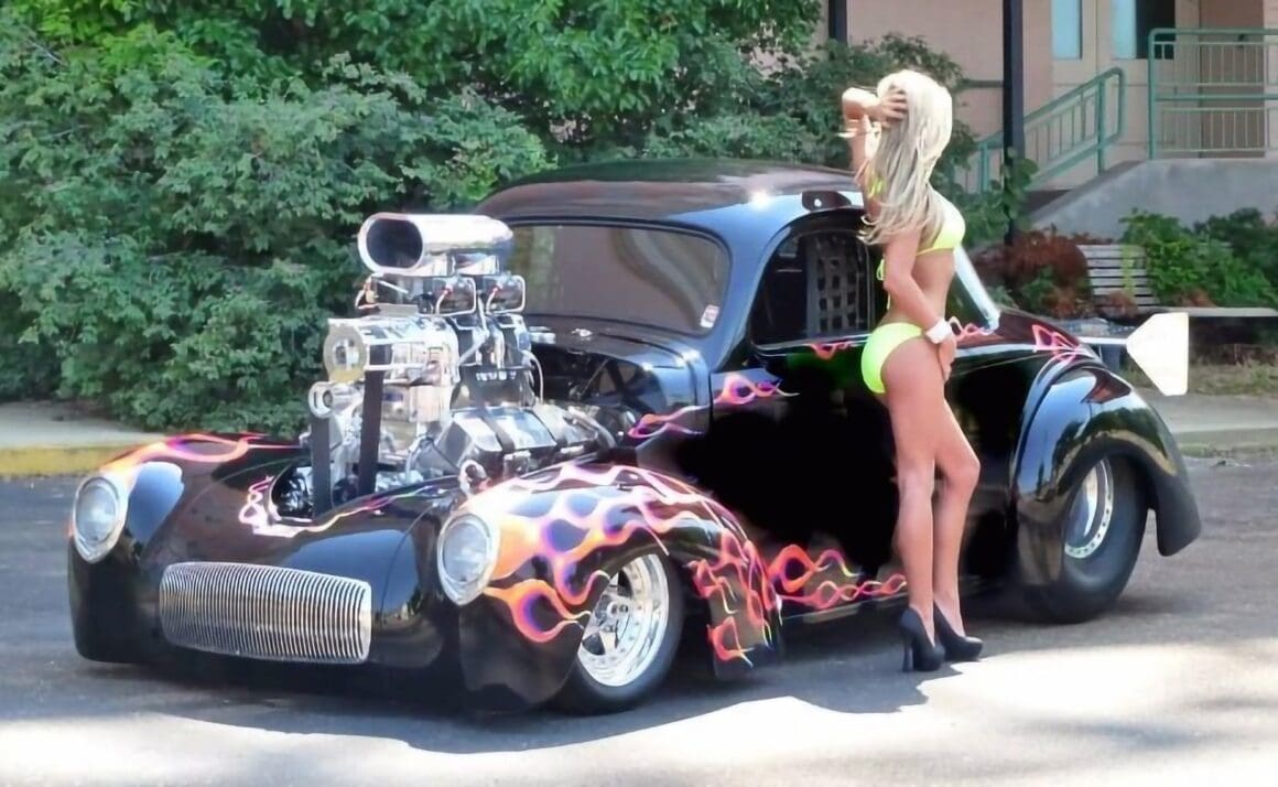 Le composant AMC est peut-être maintenant de l’histoire ancienne, mais la marque Jeep a craché des bénéfices et c’est un atout majeur dans le portefeuille Fiat-Chrysler devenant Stellantis d’aujourd’hui. Au-delà de cela, le choix d’Aaron d’un moteur Chrysler 2008 SRT Hemi de 6L1 avec une boîte automatique A518, a scellé l’affaire. À propos de ce Hot Rod Gasser Willy’s , bien qu’il s’agisse de l’une des plus de trente voitures de passagers Willys Vintage qu’Aaron et Margarita ont possédés au cours de leur charmante vie de 53 ans ensemble, c’est la première avec une Hemi Gen III sous son capot en nez de requin. Margarita a voulu prendre la parole mais Aaron ne lui a pas laissé et a continué son discours autobiographique…