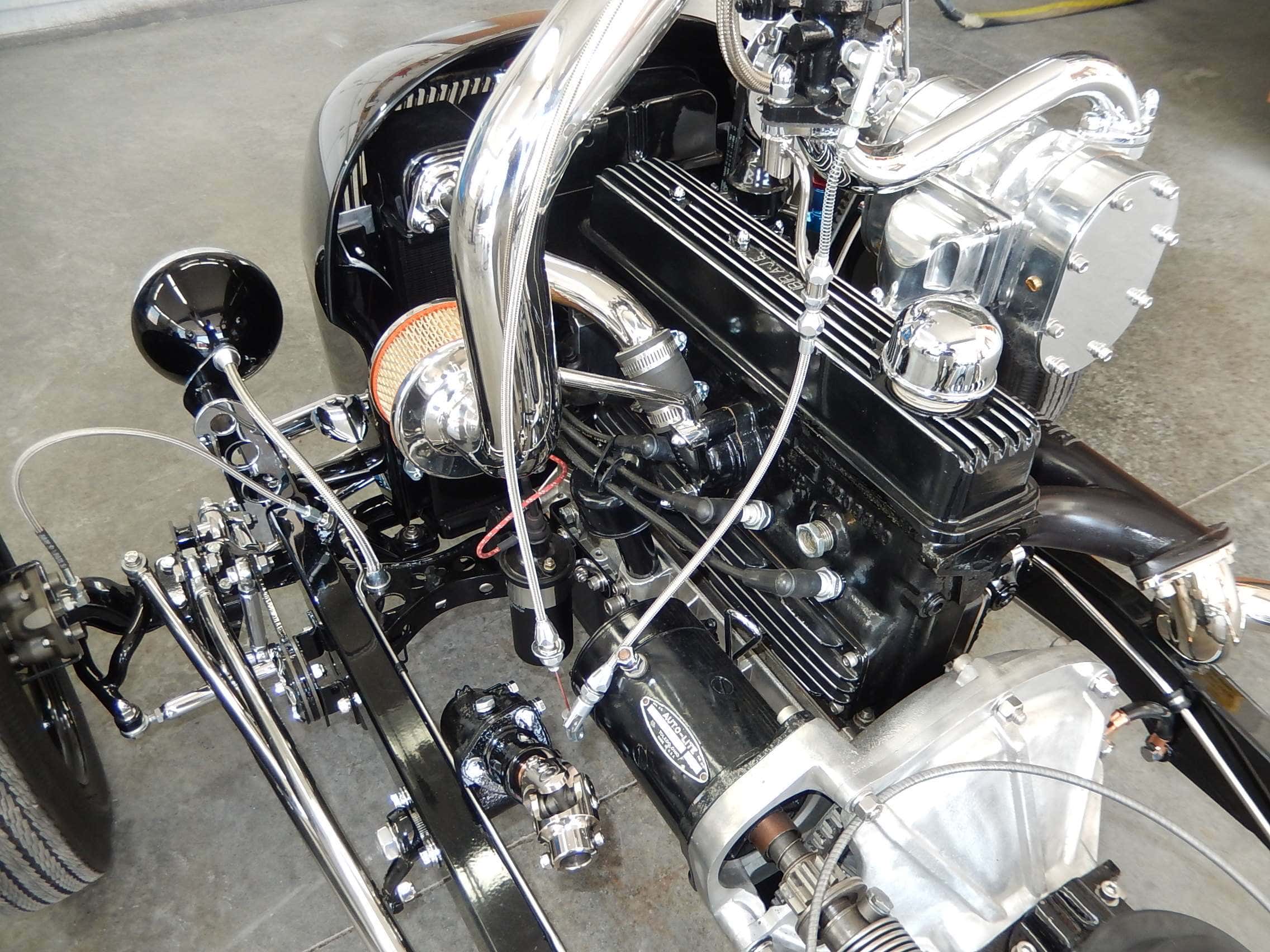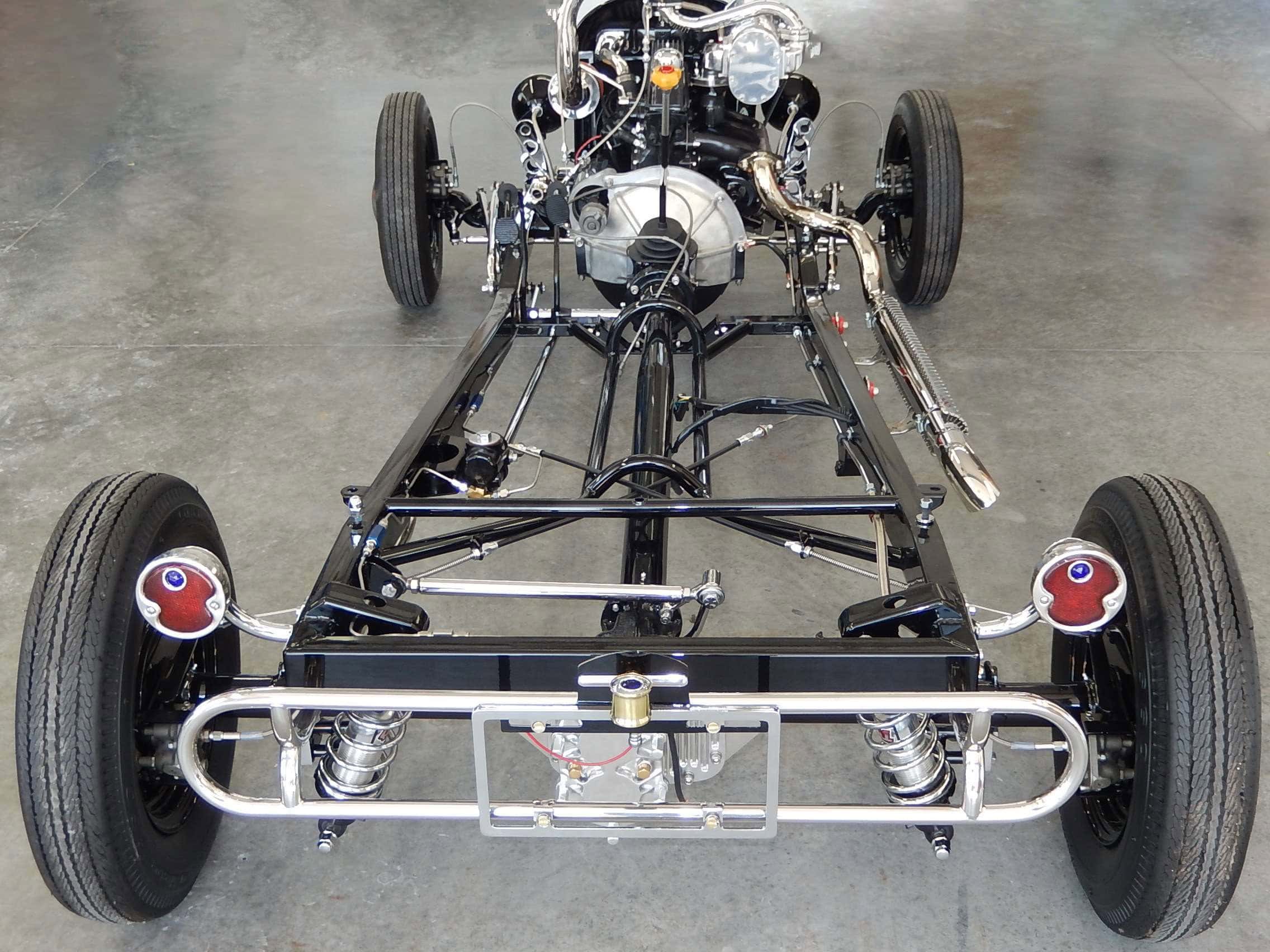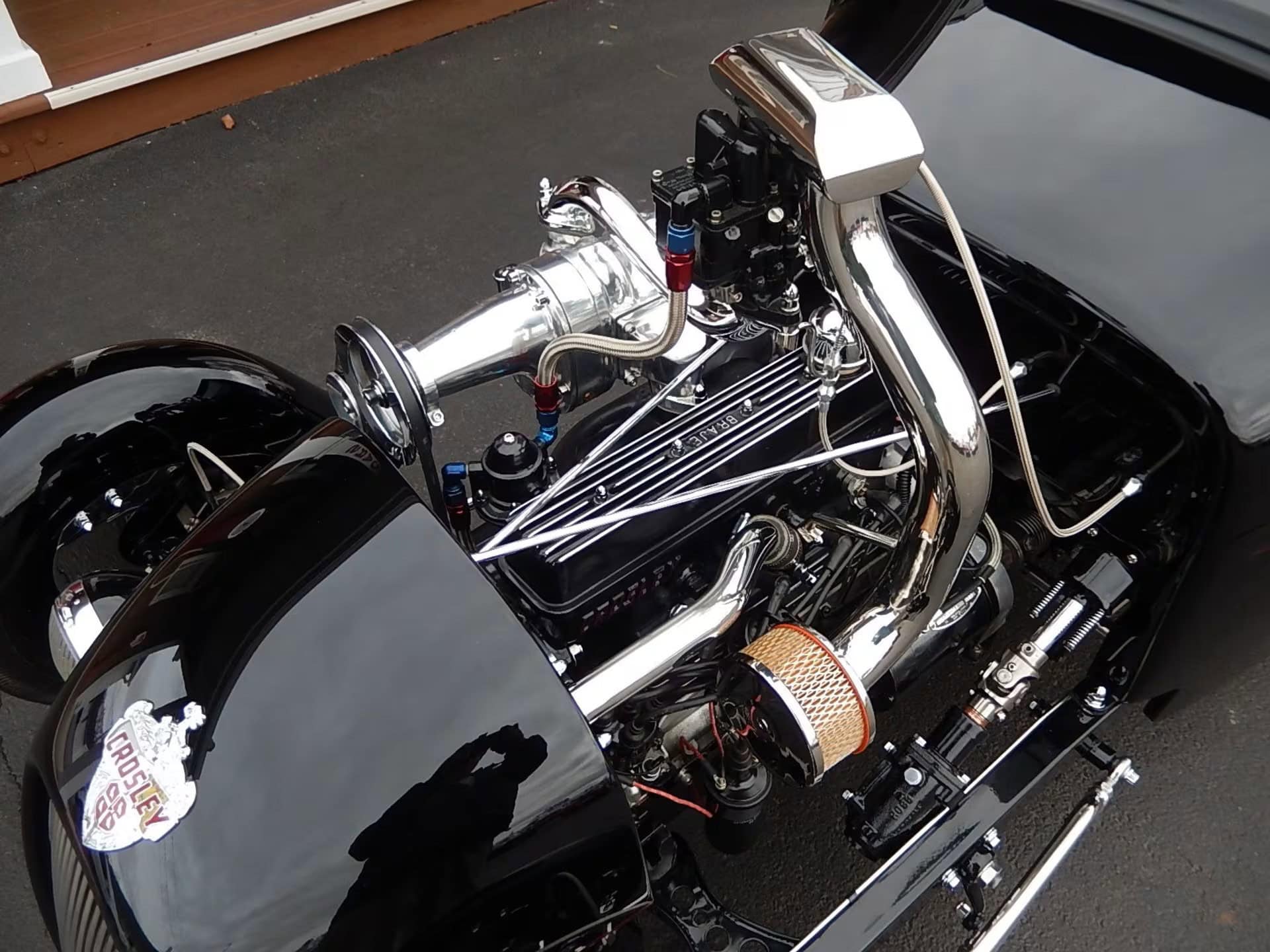 Ces mises à niveau ont permis au moteur Crosley d’avoir une plus grande longévité et de fonctionner à des régimes plus élevés. Le moteur étant couplé à une transmission NOS à 3 vitesses. Puis il a ont ajouté un compresseur Pepco. L’avant a un peu plus tard été élargi de 6 pouces et l’arrière de 6,5 pouces. Un différentiel qwick-change de pont a été installé et des freins à disque Crosley de 1949 ont été ajoutés.