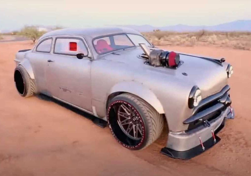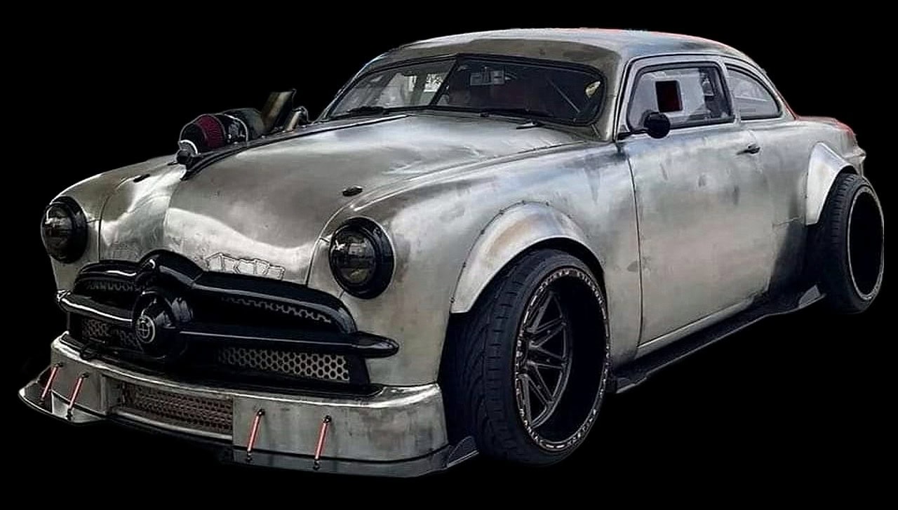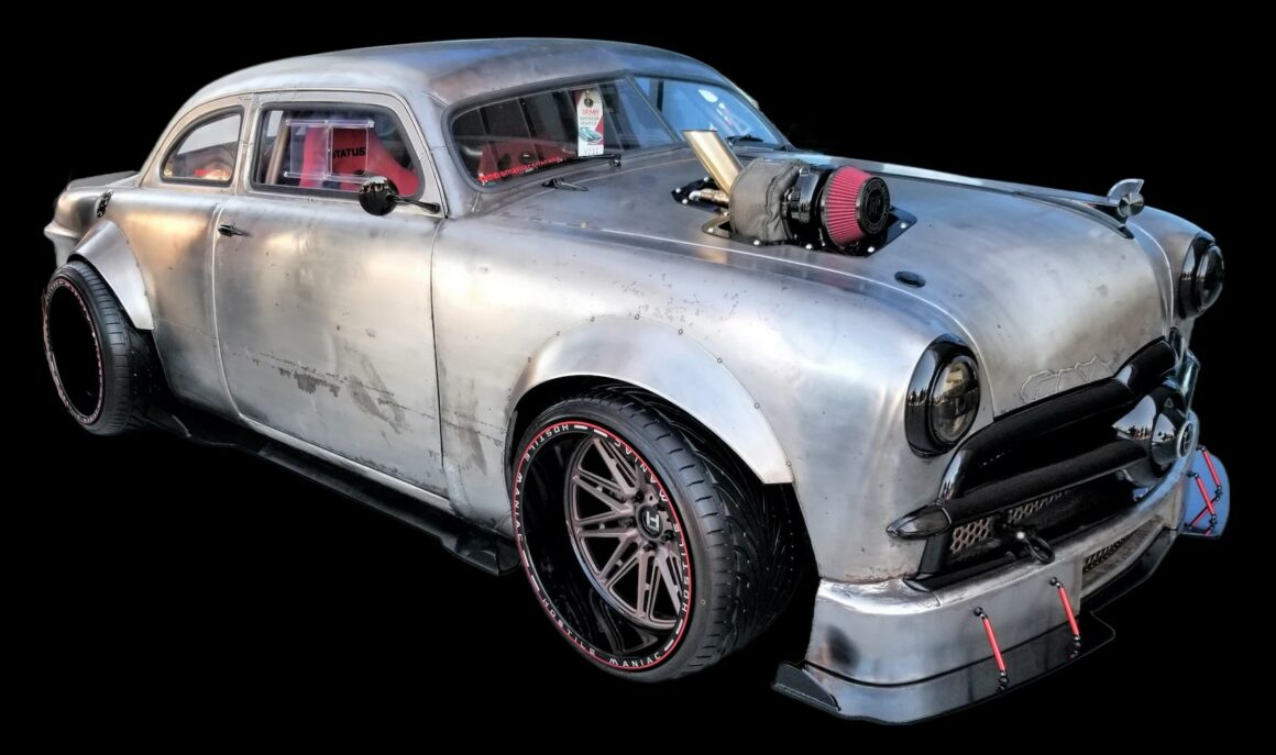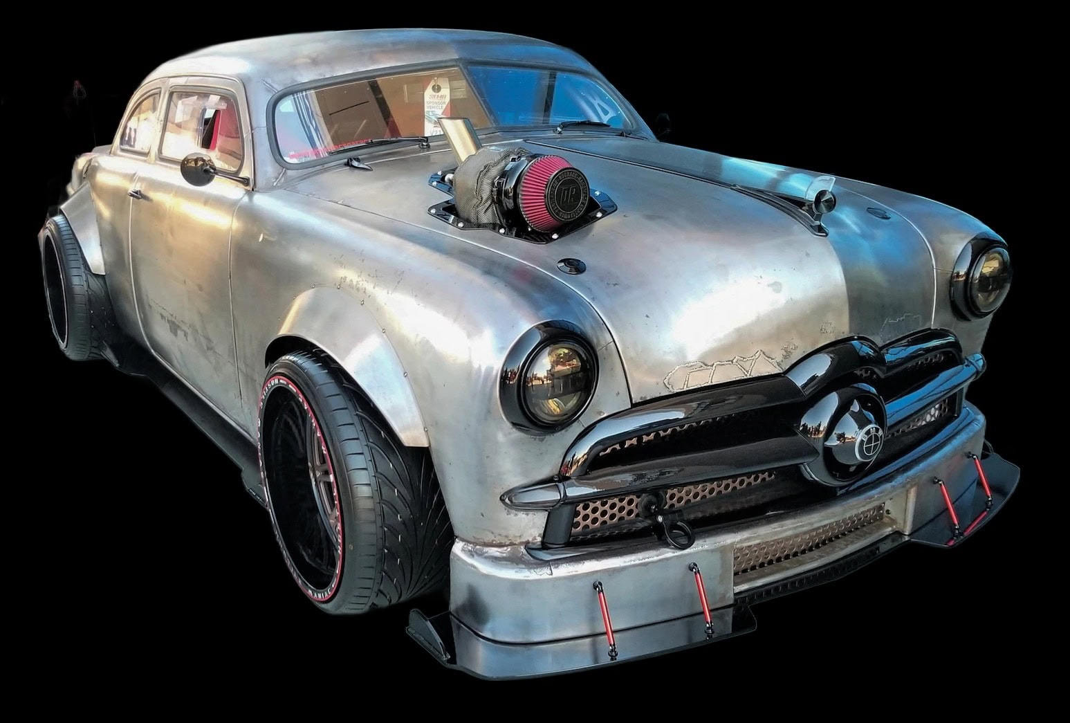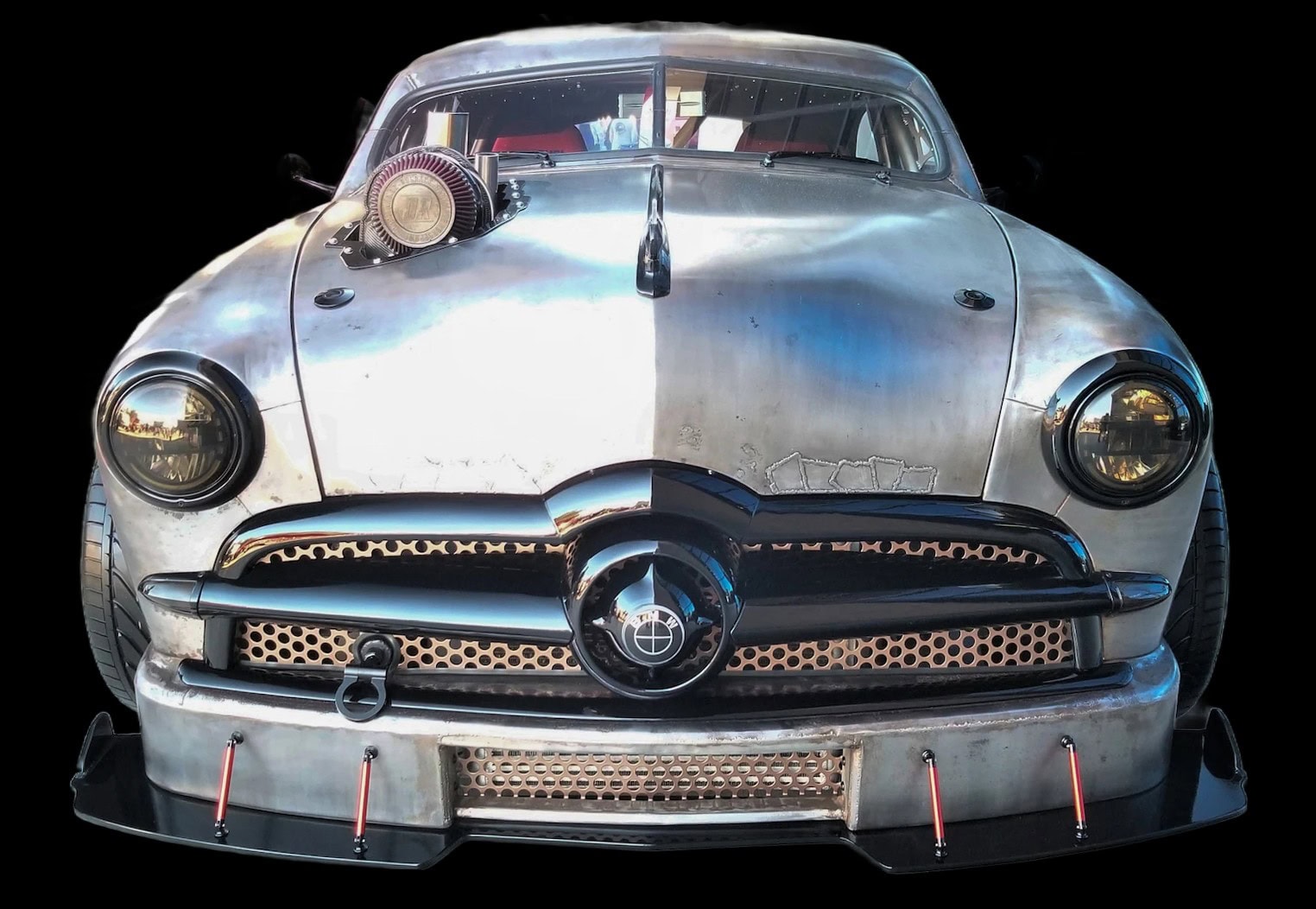 John Malozsack vit donc son heure de gloire avec l’accouplé de la carrosserie d’une Ford Tudor 1949 (connue sous le nom de boîte à chaussures “ShoeBox”) à un Coupé BMW 335i de 2008 qui en ces temps reculé apparaissait être une automobile classieuse et raffinée… C’est presque trop incroyable pour être compris, bien que c’est basique, et que les pires déviances vont s’y adapter. John admet toutefois pour se laisser une chance, que tout cela est “poubelleux”, niveau déchetterie et casse automobile, que l’épave ainsi créée est rugueuse sur les bords et aussi entre les bords et qu’il ne s’agit pas d’une voiture d’exposition, mais “une performance moderne” réalisée avec un peu du flair d’un récupérateur de ferrailles.