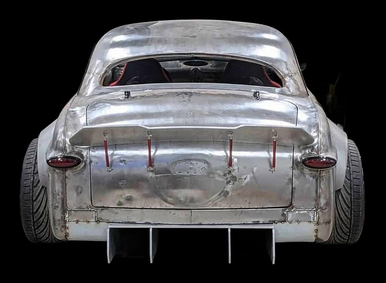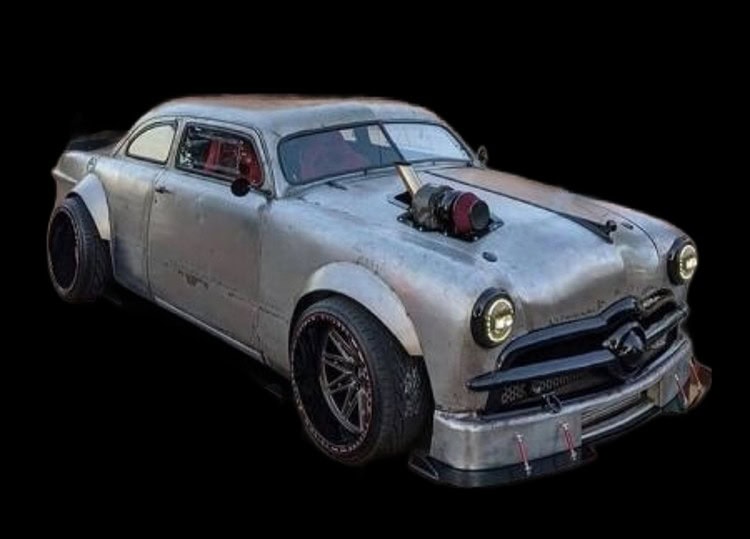 Il s’agit “officiellement” d’un cocktail polyvalent “créatif” avec une carrosserie américaine classique, une ingénierie allemande, un aérodynamisme inspiré de JDM et des finitions personnalisées “de bon goût à l’intérieur”... Voici, mesdames et messieurs, une Ford Tudor 1949 ‘Shoebox‘ basée sur une BMW 335i… Certains vont pleurer, d’autres se marrer… Pour ma part je tente d’imaginer la bête en Franchouille… J’ai réalisé un interview de John : “Il fallait que ce soit miteux, vous savez, controversé ; Il fallait tout bricoler façon artiste de génie… Mais je voulais que la voiture soit ridicule”... John m’a ainsi expliqué son idée initiale pour la construction. La Ford Tudor de 1949 était un travail en cours vieux de 20 ans achetée à Phoenix, en Arizona.