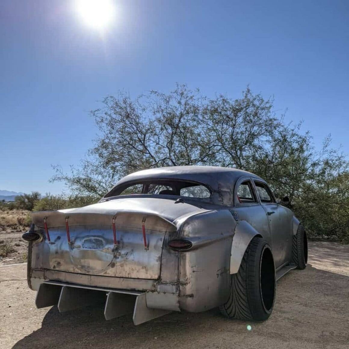 Ben oui, pour s’adapter à la carrosserie Tudor avant d’être décapée… Pour obtenir la bonne position de la BMW/Ford, un ensemble de combinés filetés E90 personnalisés et de ressorts arrière abaisse la carrosserie et ses élargisseurs d’ailes sur des pneus Toyo Tires Proxes T1R 305/30 à l’avant et 345/25R20 à l’arrière. Cela nécessitait également les bonnes jantes pour le Job, alors Malozsak a parlé aux ceusses de “Hostile Wheels” pour obtenir gratis un ensemble personnalisé de jantes 20x12AV et 20x14AR. Bien que cette Tudor ne remportera aucun concours de beauté, elle gagnera le cœur des bad-boys et des constructeurs de merdes des garages d’épaves du monde entier… Il n’y a pas beaucoup de règles à concevoir quand il s’agit du monde des Rat Rods…