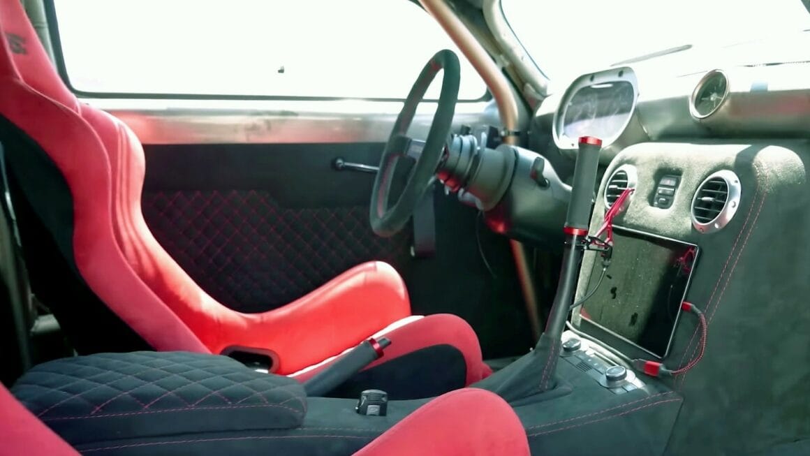 C’était la reconstruction abandonnée d’un vieux routier qui avait commencé à y travailler 20 ans auparavant, elle était coupée en 2 parts inégales lorsque John l’a achetée 250$. Son idée était de développer une construction très controversée (ce que ce projet a réalisé de manière stupéfiante) qui devait également être abordable, par conséquent, il cherchait à obtenir une “donneuse mécanique” style Nissan 350Z ou Mazda RX8. Cependant, ce qui s’est passé ensuite n’était rien de moins que divin… Un idiot a écrasé sa BMW 335i E92 2008, et ce fut le déclic. John l’a achetée pour 2.500 $ à la compagnie d’assurance, le reste appartient à l’histoire… John et son équipe ont estimé que 59 ans entre les deux voitures constituait un cocktail fantastique.