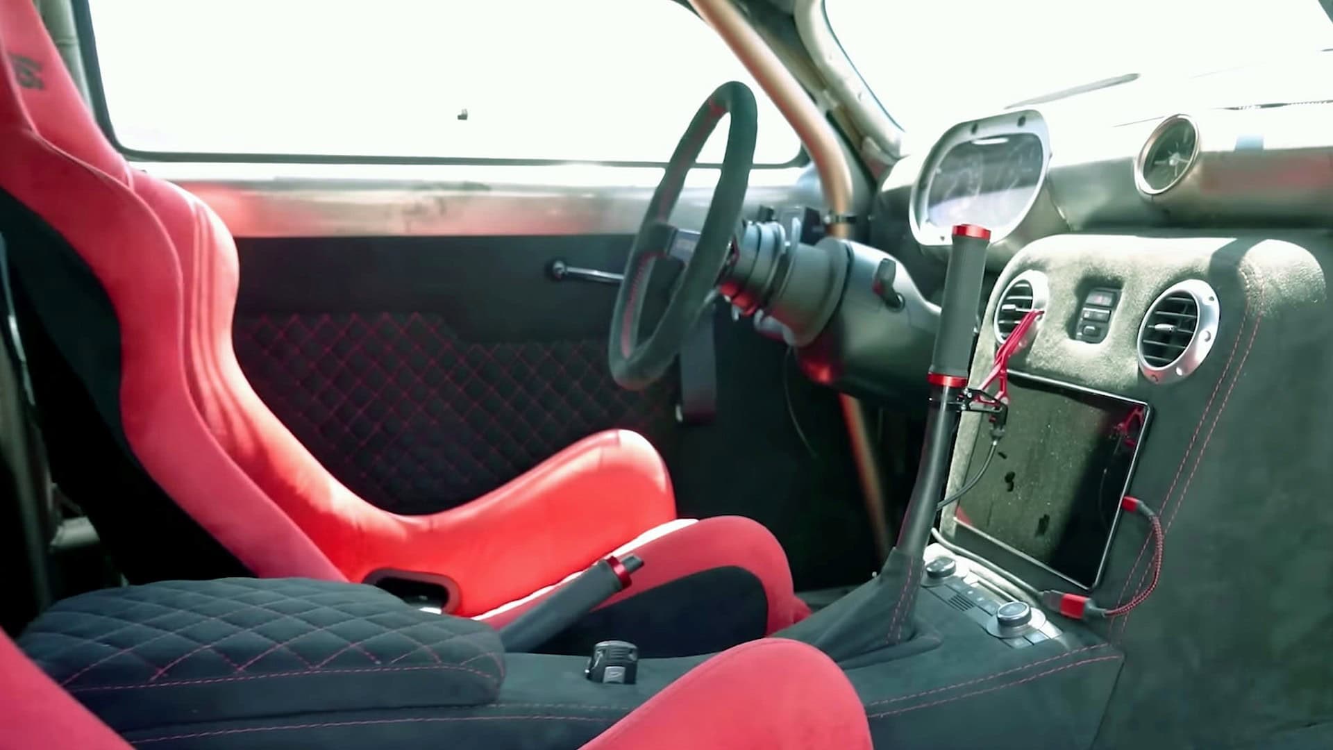 Fusionner deux épaves développées à plus d’une demi-décennie d’intervalle dans des régions différentes n’est pas la création d’une oeuvre d’art. Le moteur BMW N54B30 Turbo de 3 litres d’origine de la Série 3 délivre 624cv et dispose d’un couple de 489 lb-pi (663 Nm) avec le malheureux turbo refroidi à l’huile et à l’eau… Le résultat étant impressionnant, l’équipe est actuellement en préparation d’une version moulée (sic !), mais comme la construction Ford/BMW Frankenstein n’impressionnait personne surtout en regardant l’aspect déplorable de la construction, l’équipe a décidé de garder les soudures visibles pour créer une histoire de construction. Un travail de débiles, qui se lit comme une carte au trésor pour des “Beaufs” des personnalisations…