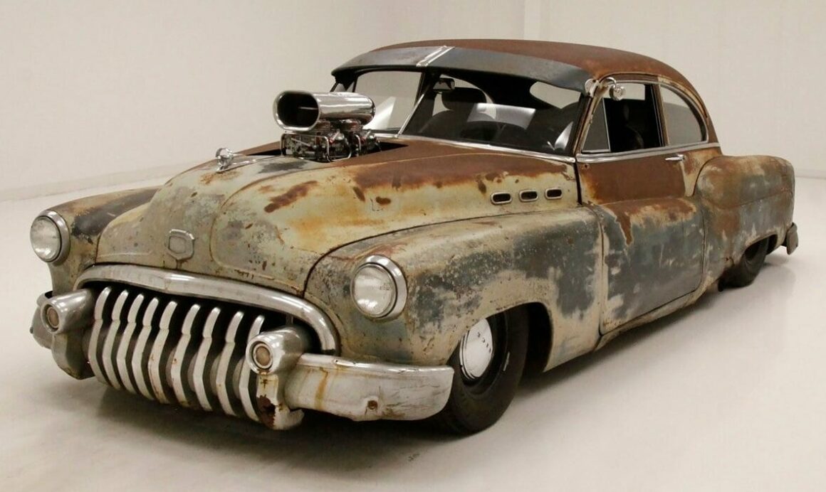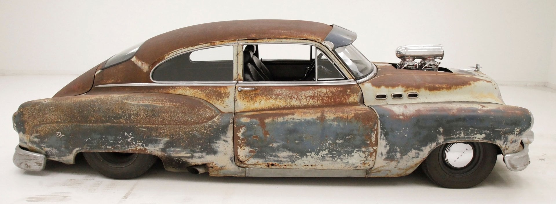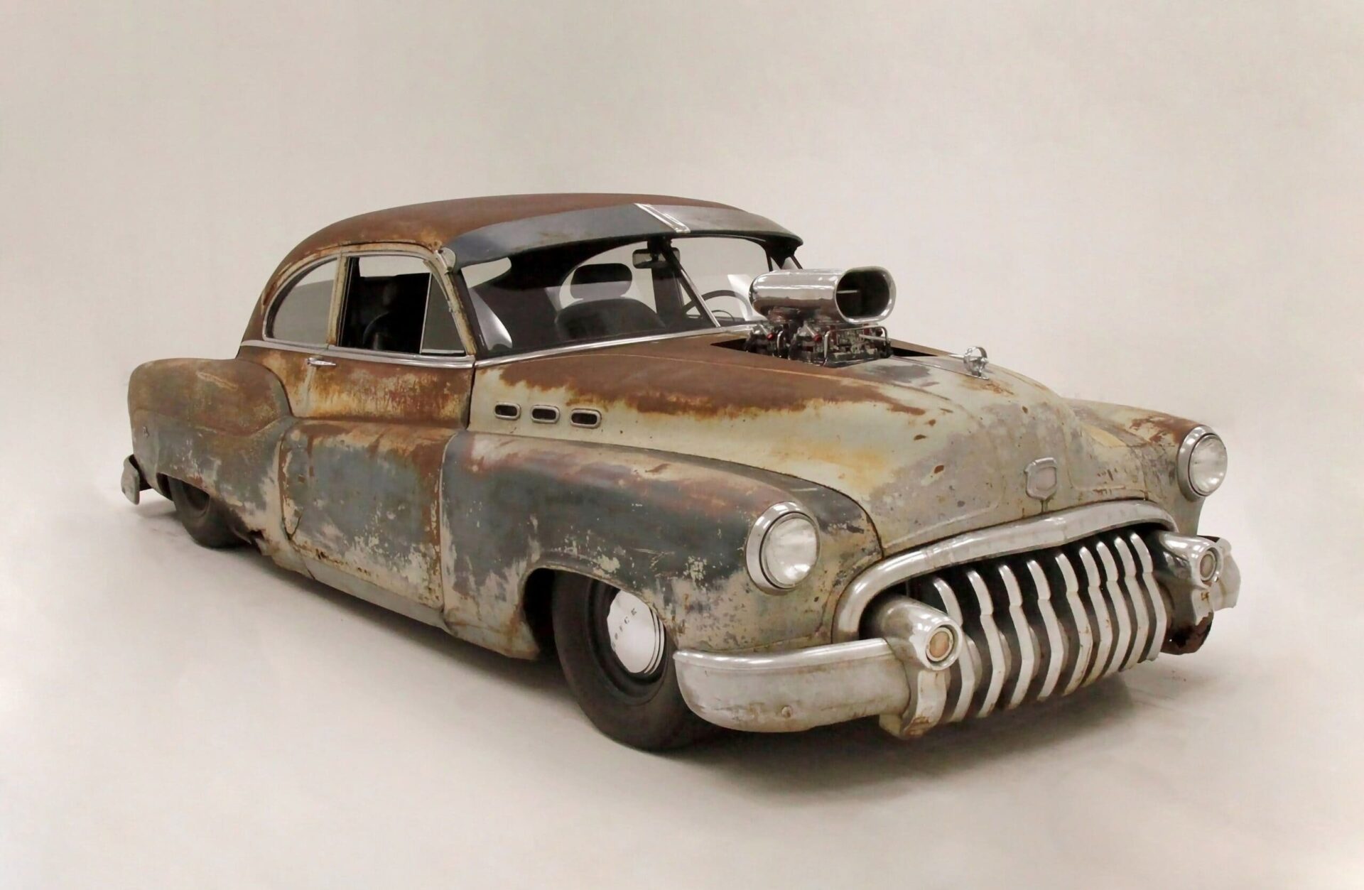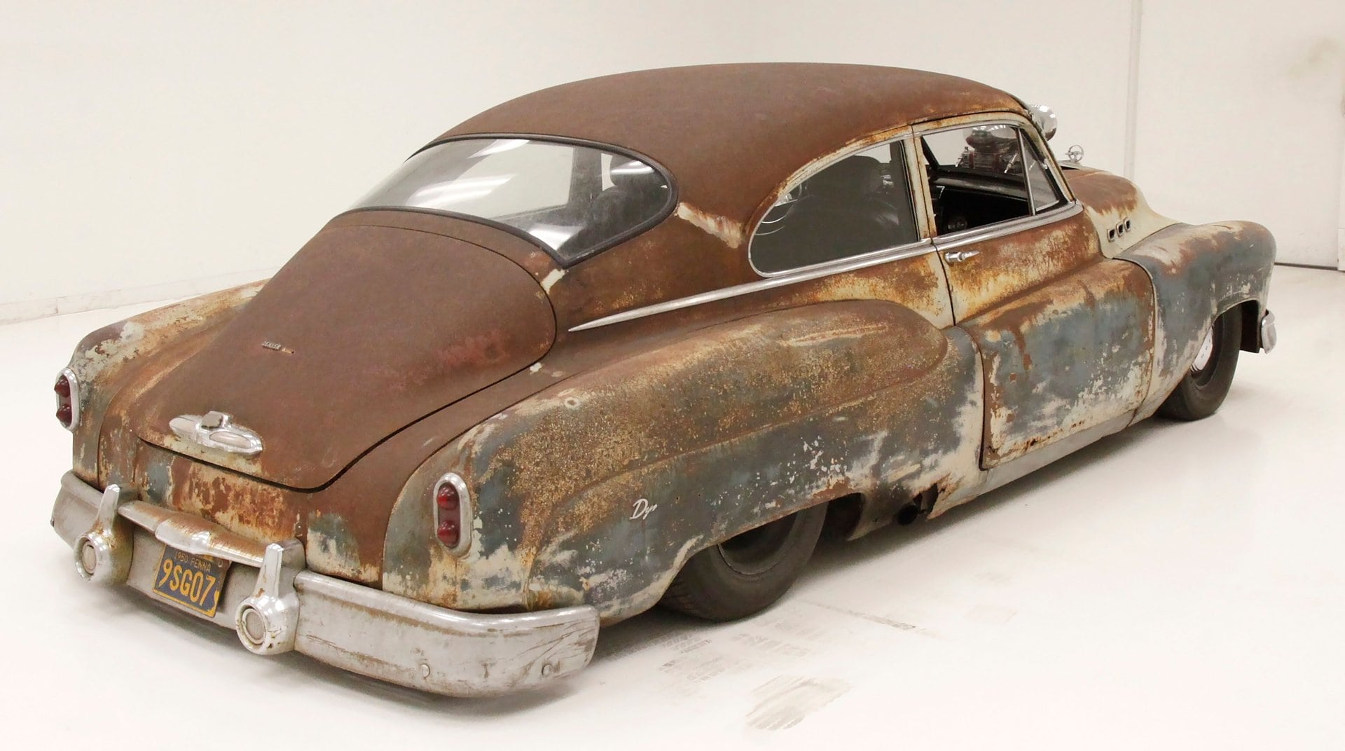 Buick dans les années cinquante ne voyait aucune raison, (à ce stade), de suivre Oldsmobile et Cadillac dans l’ère du V8 à course courte. Son huit en ligne “Fireball” à longue course et à “valve dans la tête” avait encore beaucoup d’attrait pour les foules hébétées aimant Buick comme la Vierge Marie… De plus, au moment des débuts de la Special, seuls les “Fastbacks” ou “Jet-backs”, comme Buick les appelait en 1950, étaient disponibles. Pour marquer la “révolution” naissante et la lutte des classes, une voiture Sedanette “jet back” pré-pourrie avec des ailes pontons, et une calandre qui vallant son pesant d’or, a été transformée pour “marquer le coup”... A vrai dire vrai, tout le monde s’en f…, s’en branle et s’en tape les couilles… C’est réellement le “Bazar-Machin” délirant qui ne marquera les imaginaires bien moins qu’un chien qui pisse sur votre lit… Sur le plan de la performance (de l’auto, pas du chien) c’est un Big-Bloc suralimenté. Le châssis est “maison” en tubes avec les trains roulants d’une Buick Roadmaster 1996. Il y a aussi une suspension pneumatique Ridetech pour garder les choses plaquées au sol.