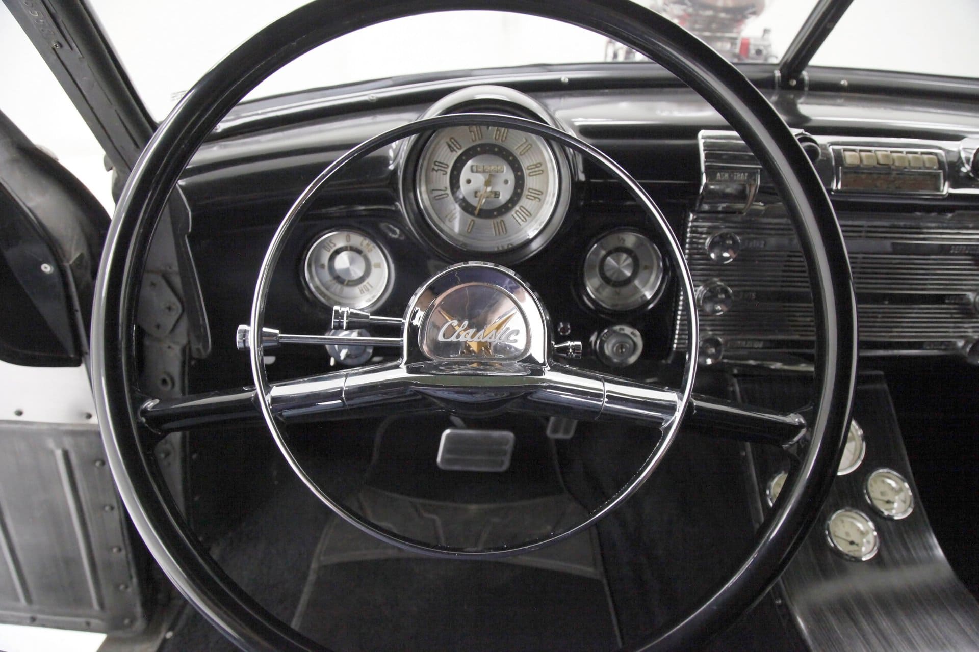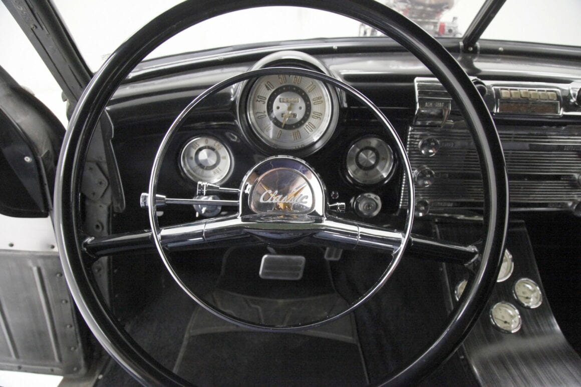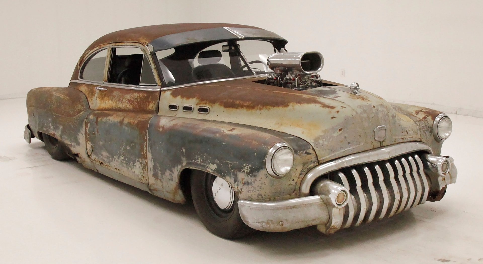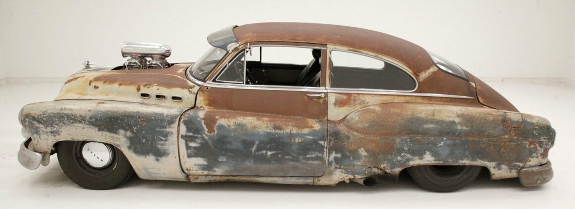 Buick dans les années cinquante ne voyait aucune raison, (à ce stade), de suivre Oldsmobile et Cadillac dans l’ère du V8 à course courte. Son huit en ligne “Fireball” à longue course et à “valve dans la tête” avait encore beaucoup d’attrait pour les foules hébétées aimant Buick comme la Vierge Marie… De plus, au moment des débuts de la Special, seuls les “Fastbacks” ou “Jet-backs”, comme Buick les appelait en 1950, étaient disponibles. Pour marquer la “révolution” naissante et la lutte des classes, une voiture Sedanette “jet back” pré-pourrie avec des ailes pontons, et une calandre qui vallant son pesant d’or, a été transformée pour “marquer le coup”... A vrai dire vrai, tout le monde s’en f…, s’en branle et s’en tape les couilles… C’est réellement le “Bazar-Machin” délirant qui ne marquera les imaginaires bien moins qu’un chien qui pisse sur votre lit… Sur le plan de la performance (de l’auto, pas du chien) c’est un Big-Bloc suralimenté. Le châssis est “maison” en tubes avec les trains roulants d’une Buick Roadmaster 1996. Il y a aussi une suspension pneumatique Ridetech pour garder les choses plaquées au sol.
