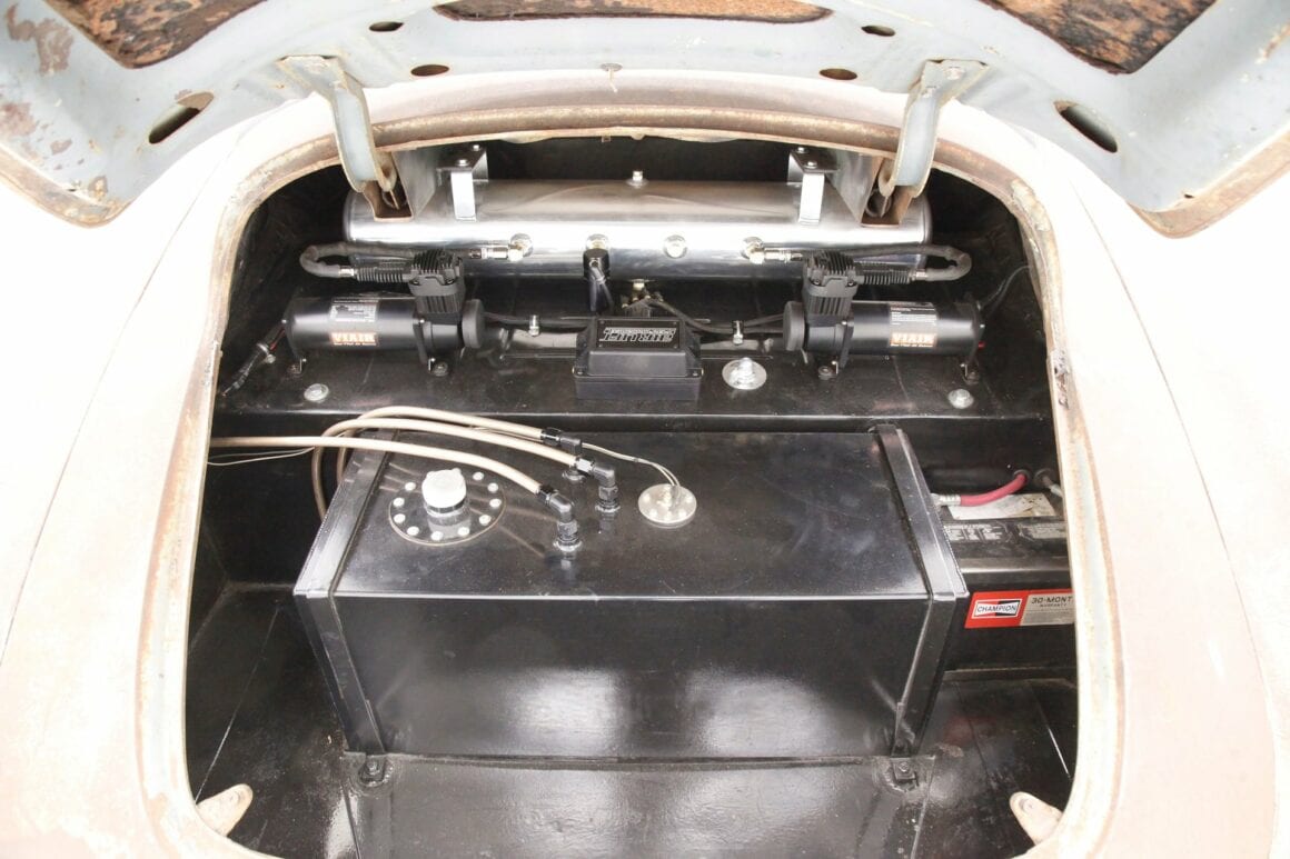 En regardant divers aspects sous le ventre de cette Special, nous notons un solide châssis périmétrique et un système de conduite pneumatique Ridetech Shockwave, avec commandes d’application, un arbre de transmission chromoly de 3po relie la transmission à l’essieu arrière et deux compresseurs Viair 444 sont à bord pour le système de conduite pneumatique. Au cours de la dernière décennie, les Rat-Rods pullulent alors qu’émergent des Rat’s’Kustom’s construits de cette même manière particulière, généralement connue pour être des versions très exagérées des Hot-Rods Jalopy de style 1950. Par jalopy’s très exagérés, nous entendons les voitures qui sont construites pour avoir l’air mal faites exprèssement, généralement assemblées à partir de vieilles pièces de ferraille, et sont donc généralement mal construites avec peu de considération pour la sécurité. Cependant, les Rat’s-Rod’s n’étaient pas toujours ces dépotoirs mal construits sur roues, ont en fait évolué au fil des ans et traversé plusieurs changements et phases différentes, beaucoup d’exemples d’aujourd’hui sont à la fois parmi les meilleurs des pires.