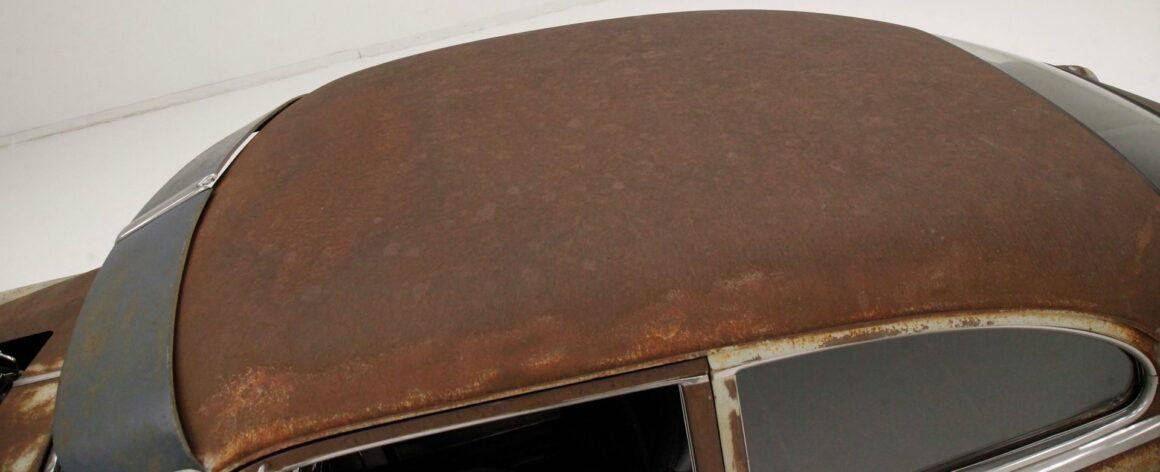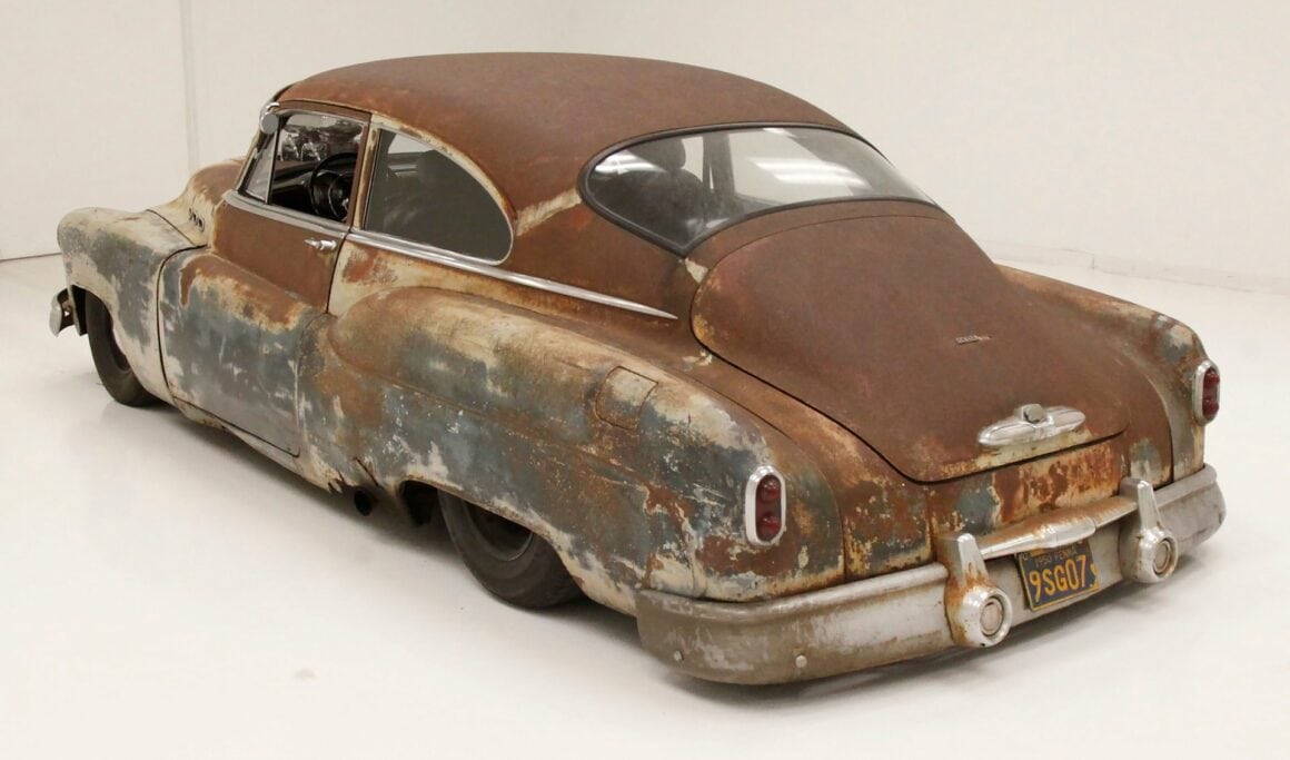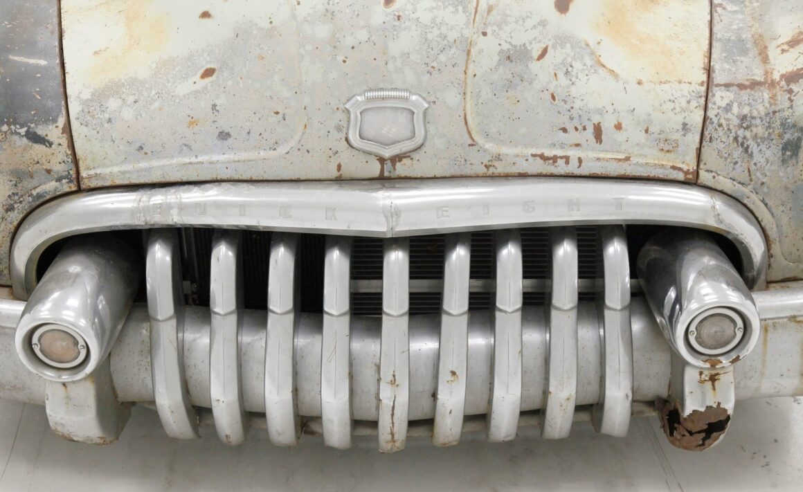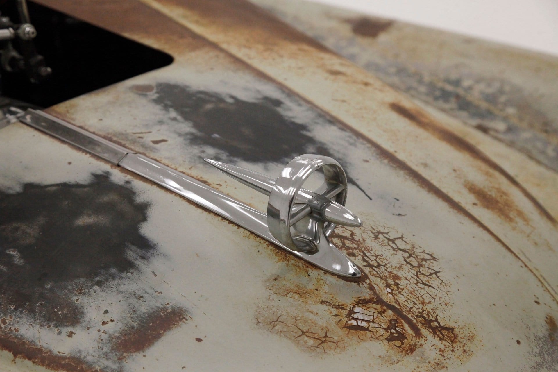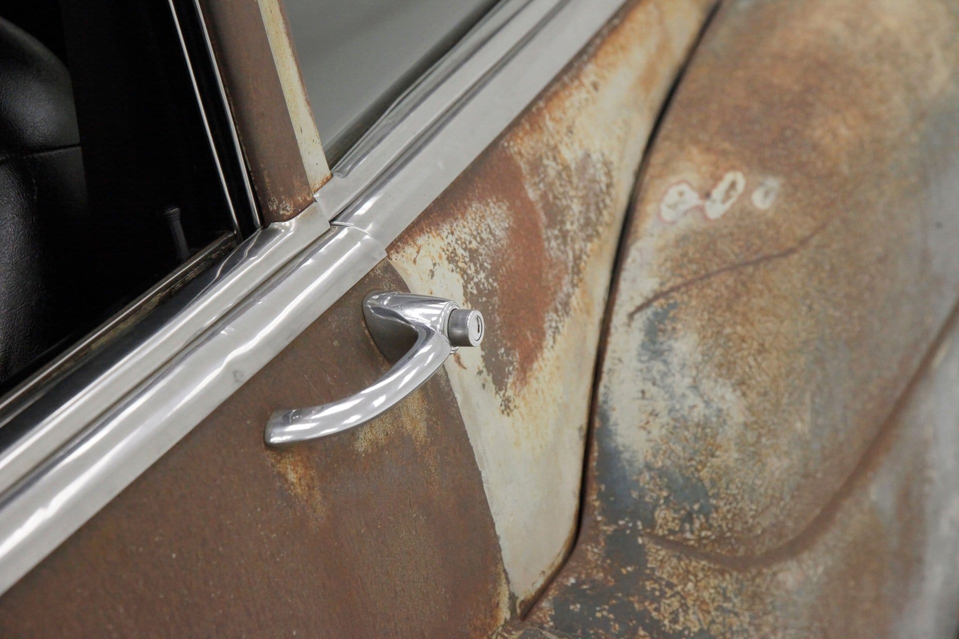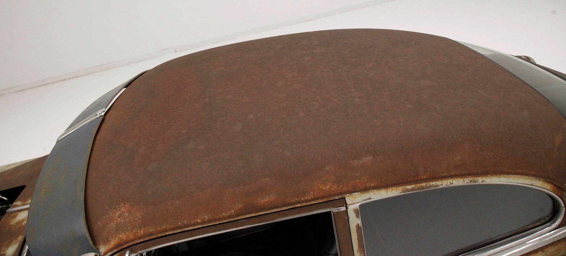 Tout cela, bien sur, tout en conservant le look de 1950 pour lequel Buick était si célèbre, avec “Oh mon dieu, cette ligne de toit Jetback sexy”... De quoi se retrouver au paradis de l’après-guerre ! Bien évidement, la carrosserie pré-pourrie est ici devenue une œuvre d’art… La rouille de surface et la peinture d’origine intouchée autrefois brillante abondent sur la carrosserie Celle-ci est sensée représenter l’état de l’Amérique avec quelques zones de rouille envahissante sur les bas de caisse et de portes, symbolisant la Russie qui s’attaque à cette nation… Bien que normalement la rouille est un chancre, en ce cas une désintégration naturelle, l’image colle si bien à cette fin d’un règne sur l’ensemble, que la carrosserie ne serait pas complète (et aussi géniale) sans elle. Ce mélange de brillance, de rouille, à la fois superficielle et envahissante, orne également les chromes de cette voiture, y compris la calandre qui est composée de 9 pièces individuelles pour les “dents” verticales, chacune étant différente des autres…