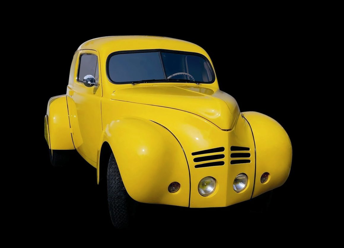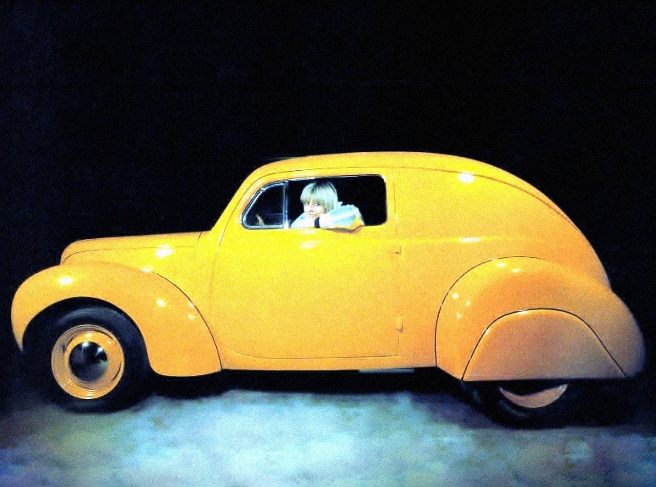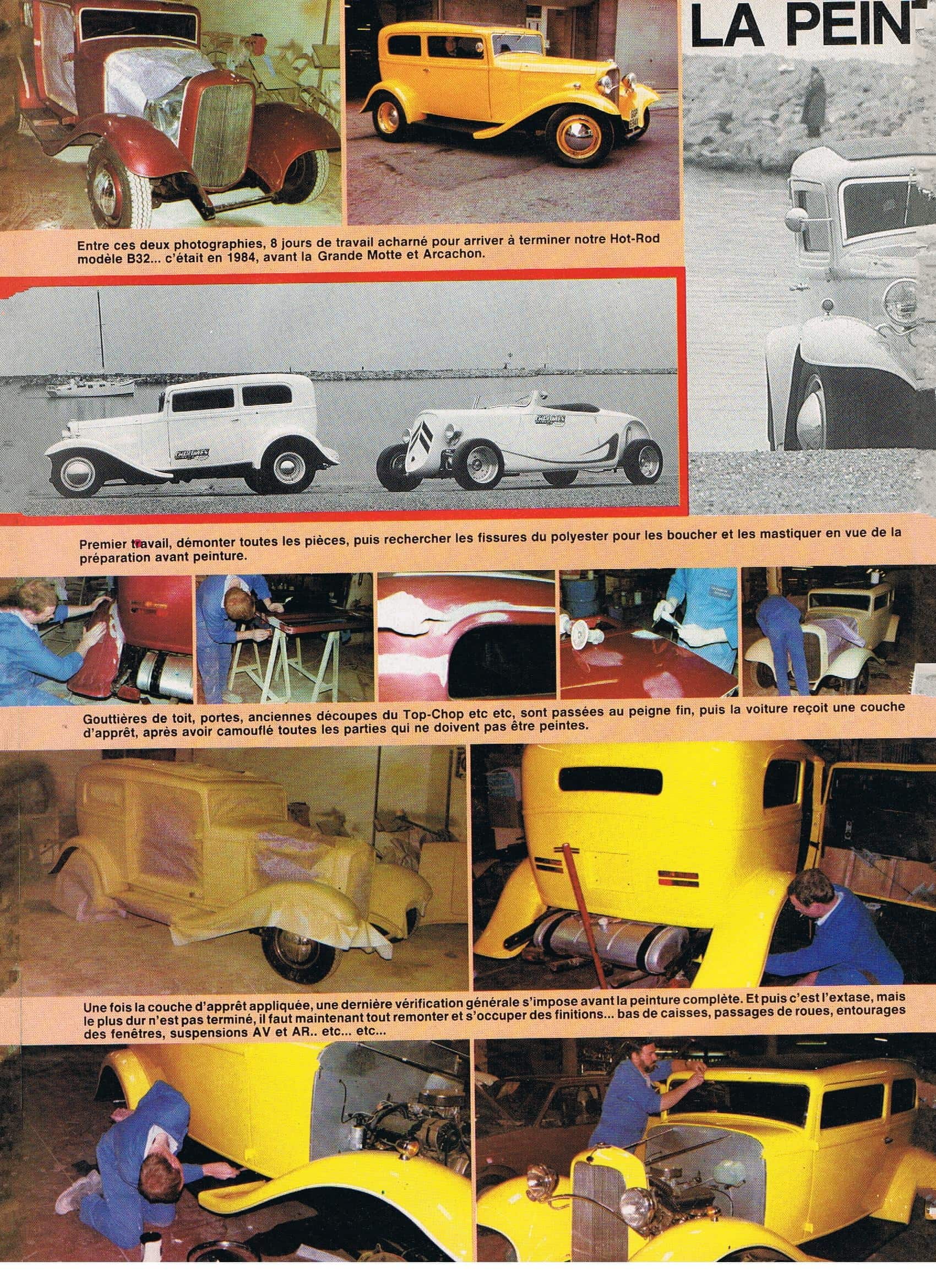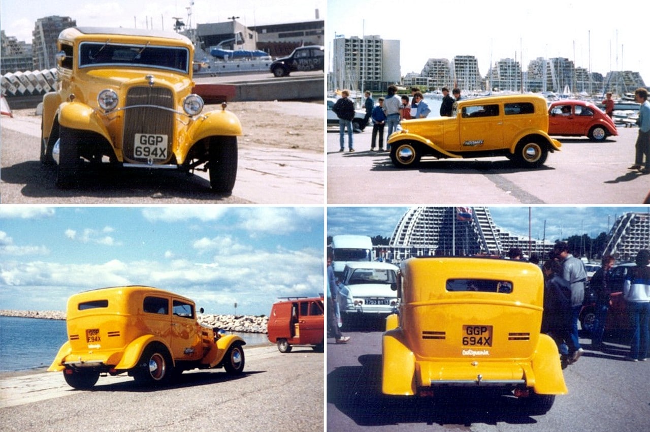 Pourtant pour pousser le bouchon le plus loin possible, les trois engins avaient été peints dans le même jaune, histoire de capter l’attention, et de donner une touche d’uniformité de Façon à ce que les 3 engins symbolisent parfaitement le magazine Chromes&Flammes…, j’étais même occupé a préparer la remise en peinture jaune de l’Oldsmobile ’48, du Tricycle V-12 et du Hot-Rod C-Cab “Novel-T”, lorsque je me suis rendu compte du peu d’intérêt de ces transformations auprès du public français, qui continuait dans la voie des rnural’s et des Peugeot 203 avec feux de toit !
