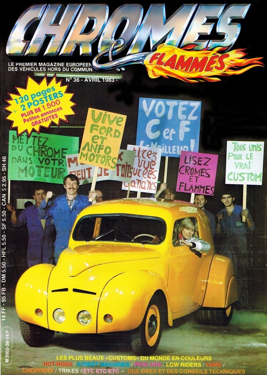 Mais il y avait un parfum d’audace dans l’air, des combinaisons presque impossibles et des mariages farfelus. Les années 80 vont pourtant permettre de défricher le terrain des idées, la tendance était contradictoire. Les gens oscillaient entre devoir de mémoire et envie de changement. Je me suis fait fabriquer des folies pour “asseoir” mon magazine : la Taunus “Killer’s Banana’s”, l’Old’s 48 “Dragon vert”, le Trike V12, le Hot Rod Sedan’32 “Customania”, le ‘Cab “Novel’T”... J’ai créé un show porte de Versailles et une course de Dragsters au Mans… En 1980, je courais en tous sens et dès 1981 Chromes&Flammes “faisait” 5 éditions/langues à 500.000 exemplaires mensuels… Pas une seule manifestation ne se déroulait sans que je sois présent.