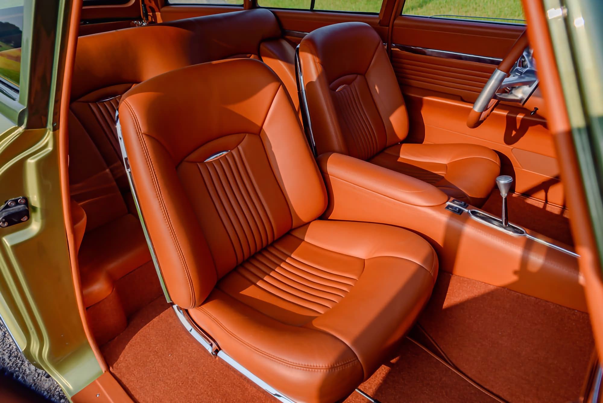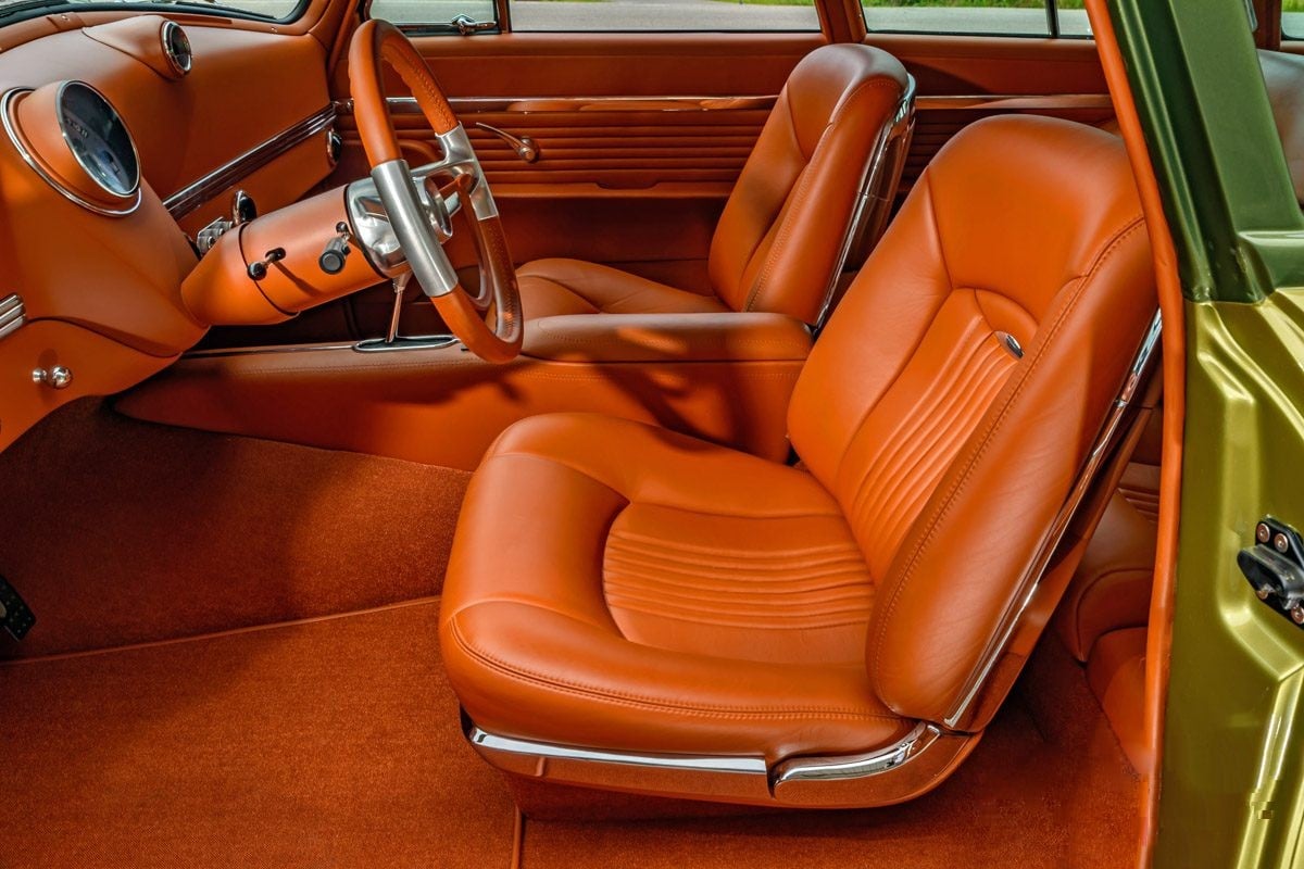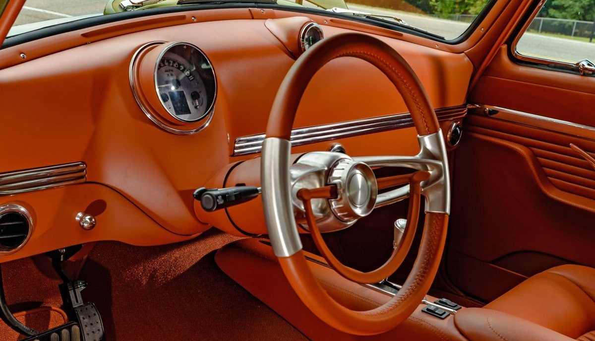 Atkins Interiors est connu dans le monde entier, et l’équipe a fait un numéro sur cette petite baignoire roulante avec un tapis bronze Daytona et une sellerie en cuir de couleur rouille… Un résultat “propre, simple” et réalisé sans un point déplacé. Le tableau de bord d’origine modifié arbore des éléments “Dakota Digital HDX” personnalisés…