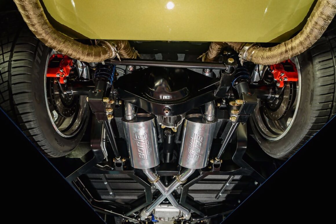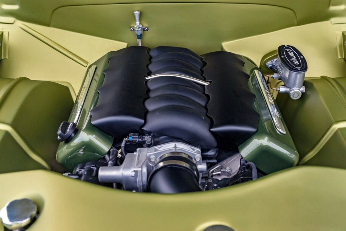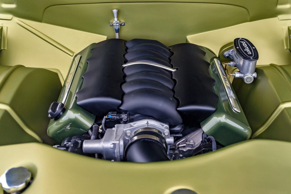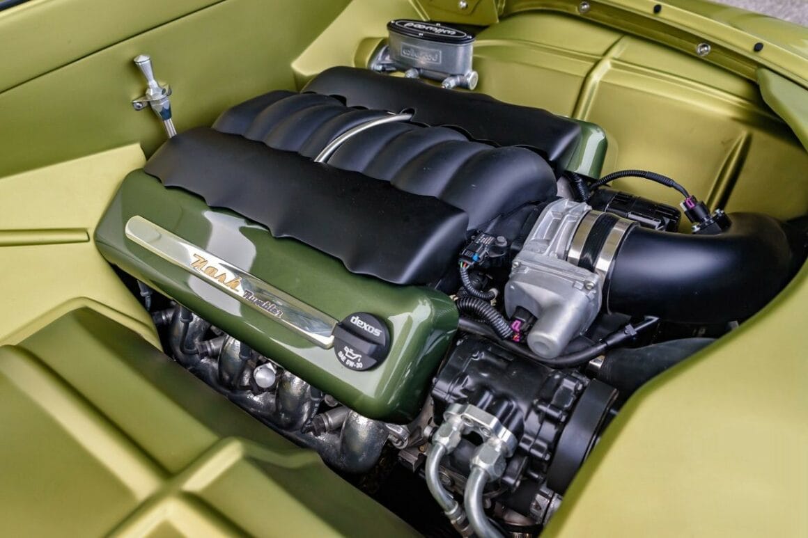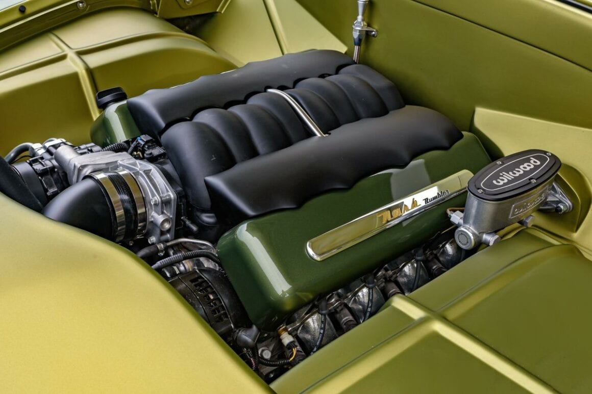 Fred s’est payé un V8 495ci extrapolé d’un LS3 de chez Chevrolet Performance couplé à une boite automatique 4L70E envoyant “la purée” à un pont de 9-inch d’une C6 Corvette. Ne voulant pas trop changer les caractéristiques de la carrosserie, l’équipe Atkins a incorporé quelques modifications subtiles qui ressemblent à celles de série.