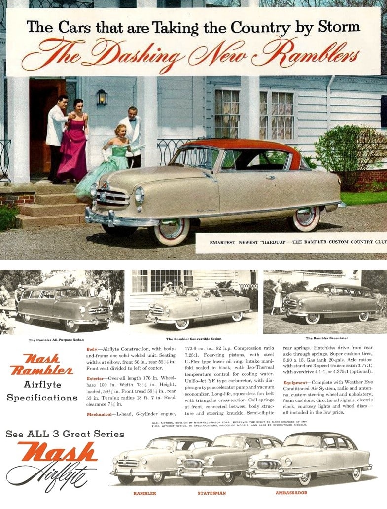 Pour cette raison 1, la Nash a relancé une marque historique , la “Rambler” qui avait déjà été utilisé en 1897 pour un prototype et en 1902 pour une voiture de production. La Nash Rambler a été introduite en 1950 et positionnée dans un segment de marché qui était dominé par les modèles Chevrolet et Plymouth. Par rapport à cette dernière, la Rambler était cependant plus petite et plus légère.